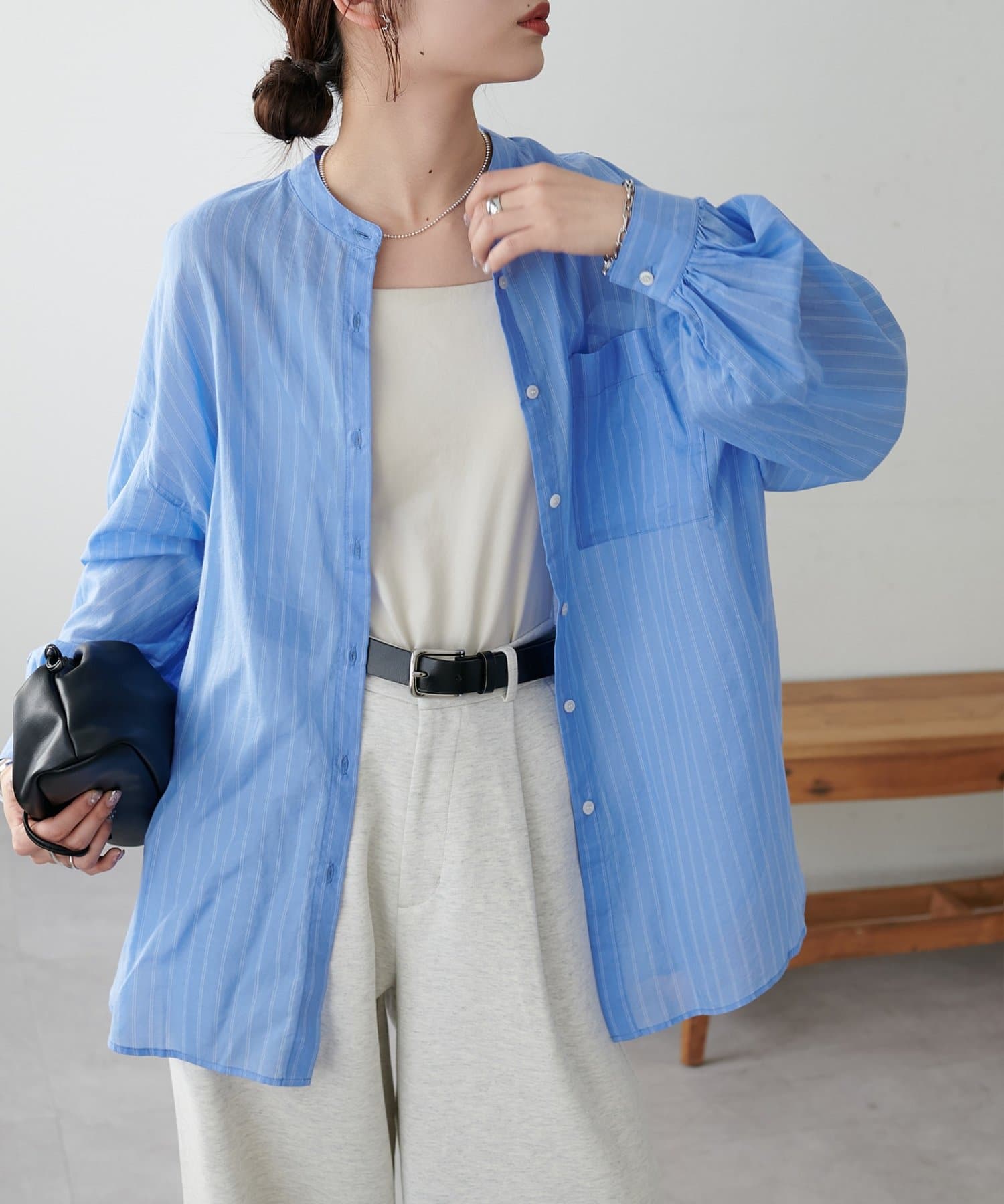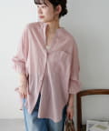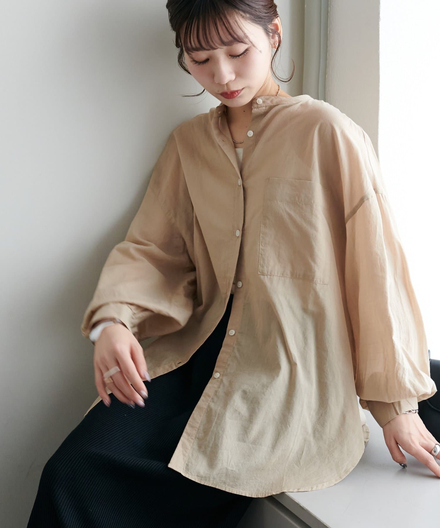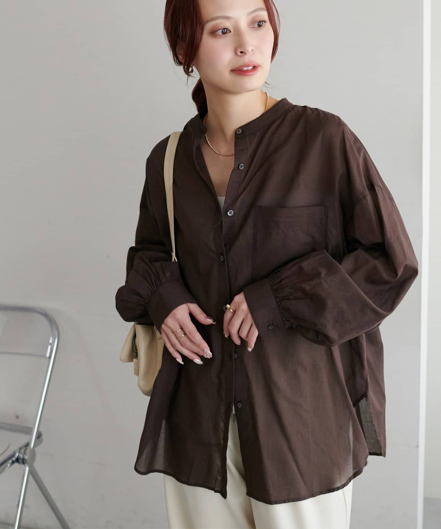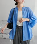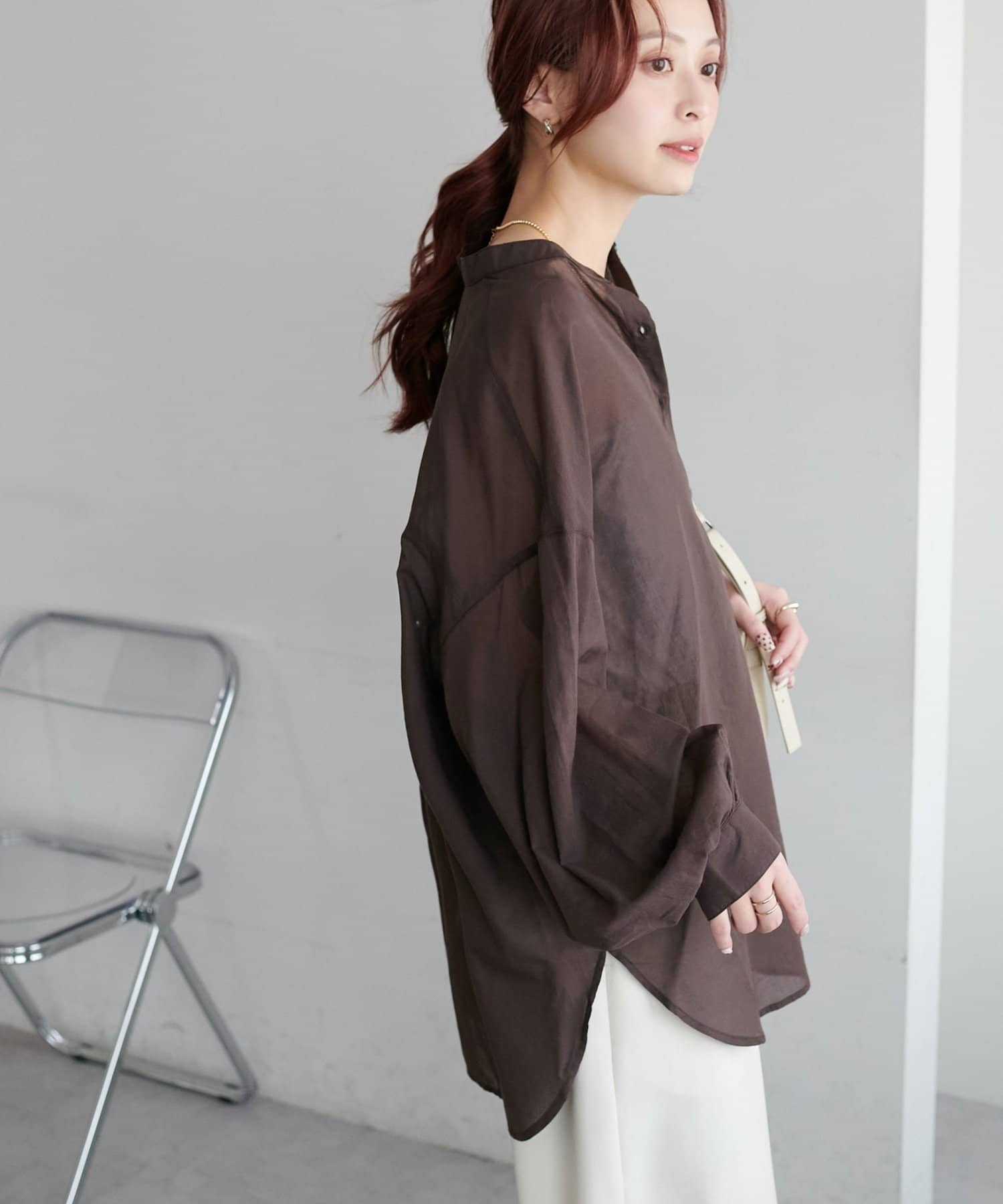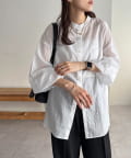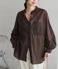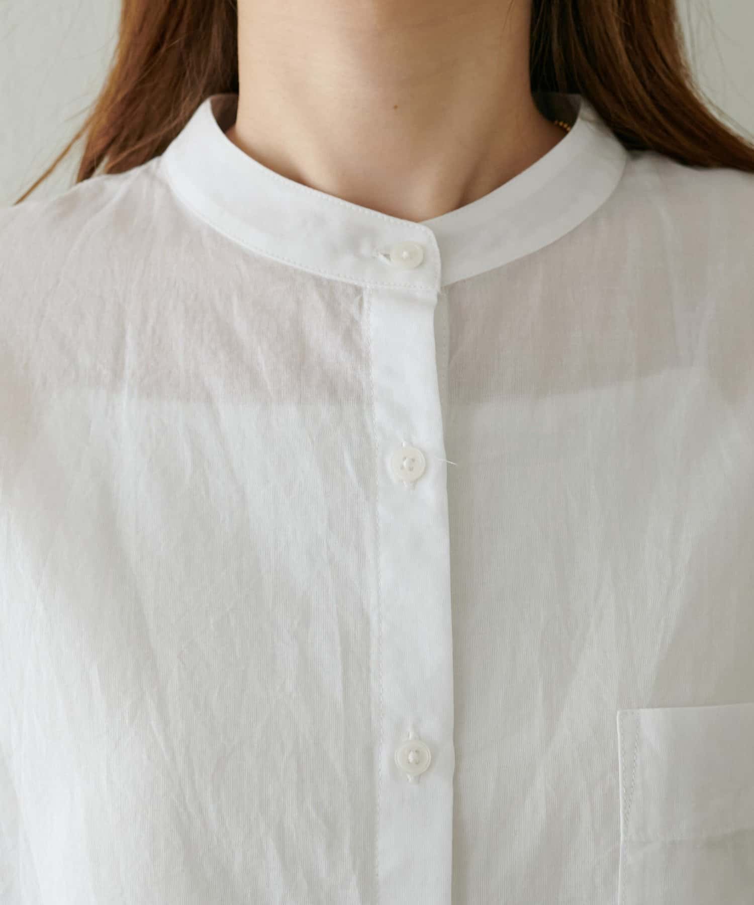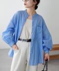 きれいめカジュアルなシアーバンドカラーシャツ
