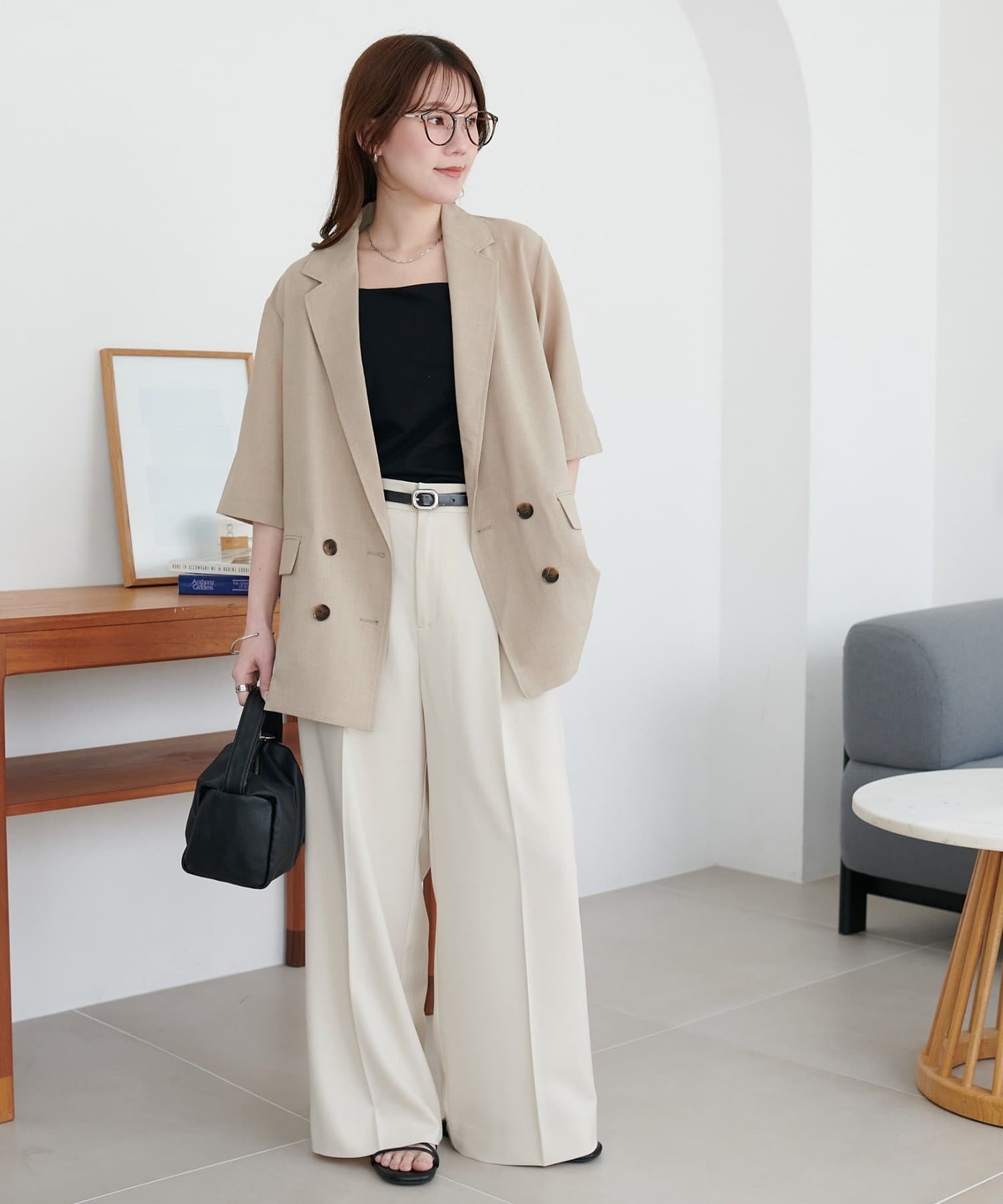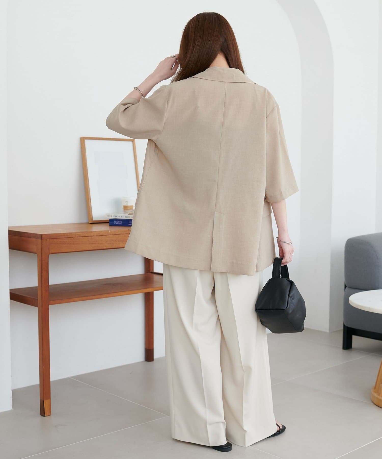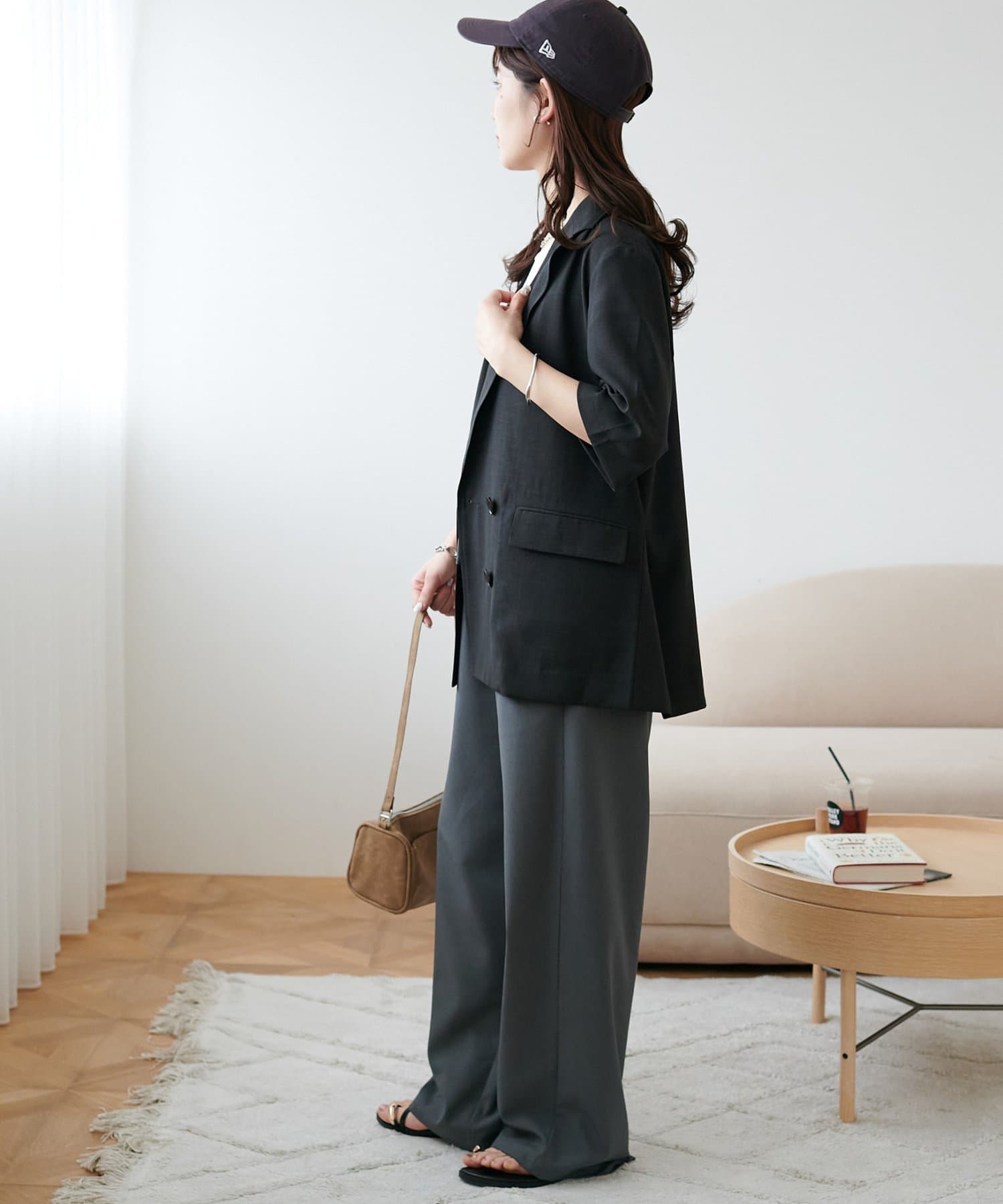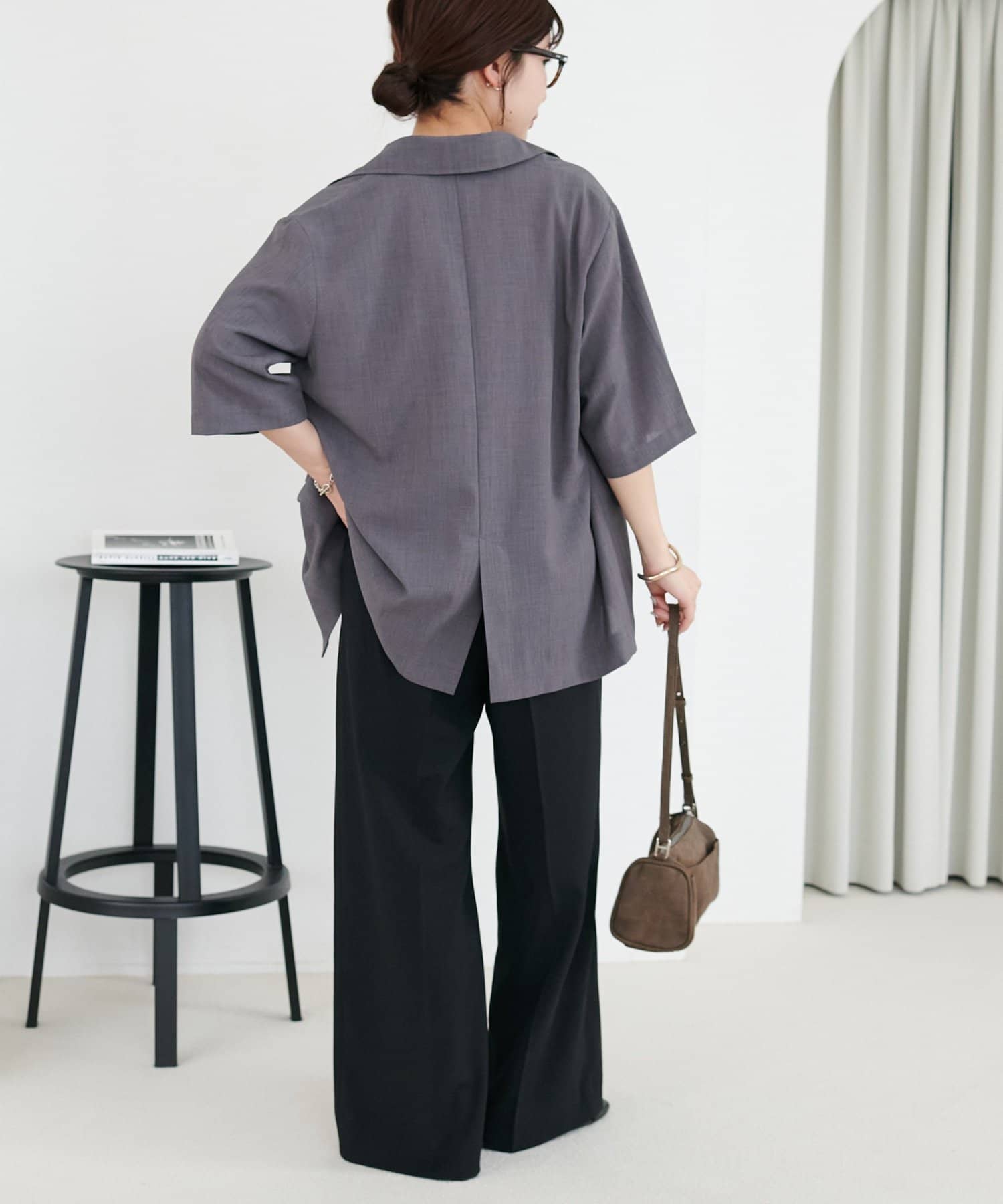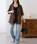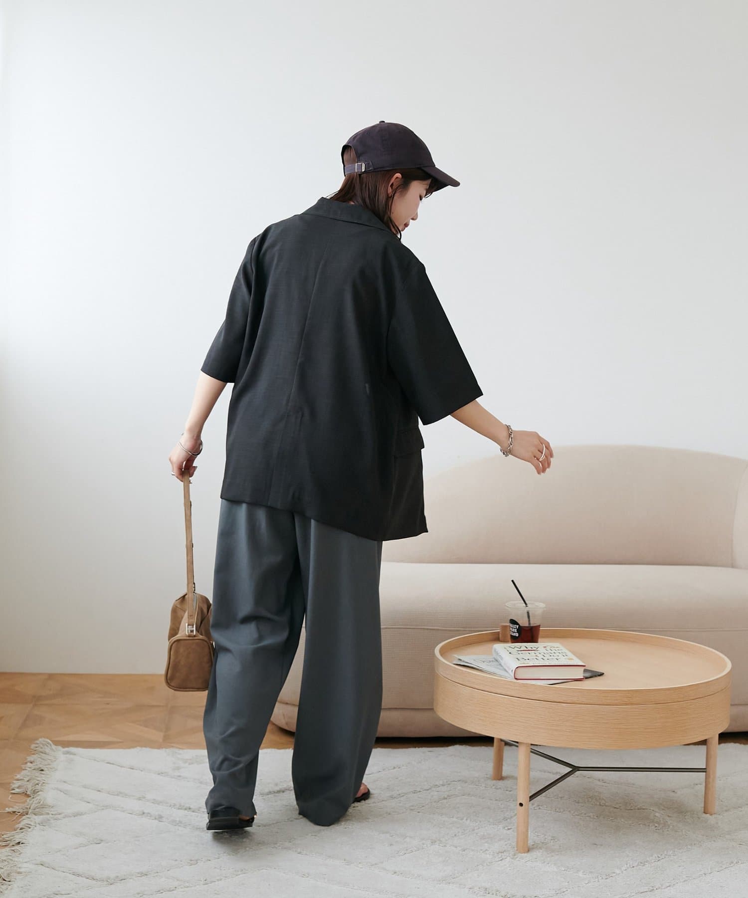 ・同系色のボトムスと合わせてセットアップのように着こなすと、より洗練された印象に