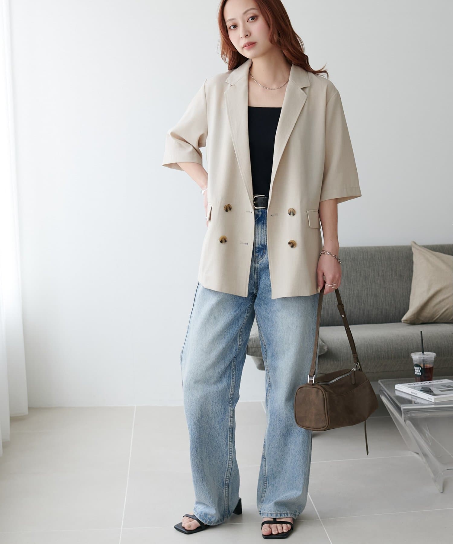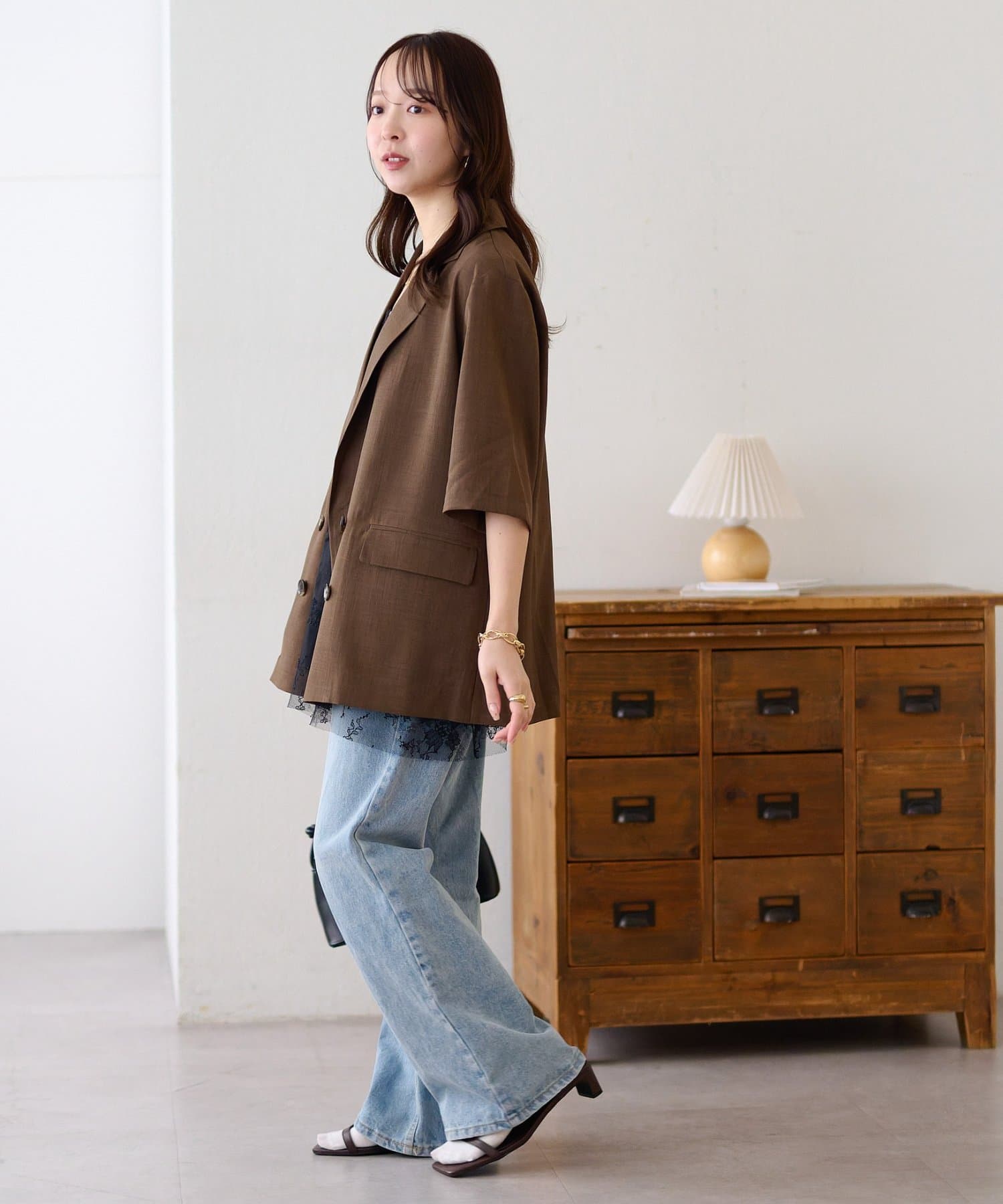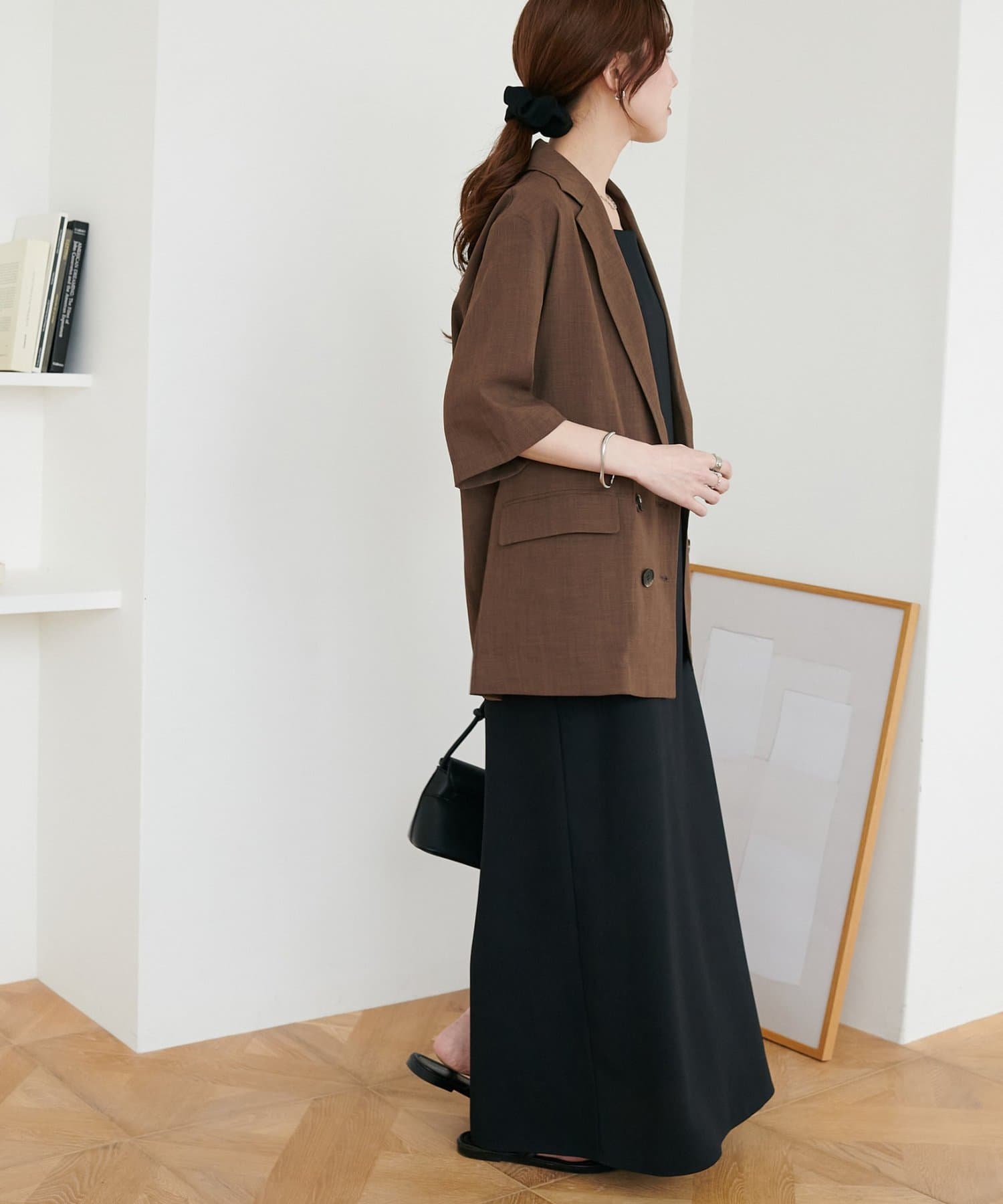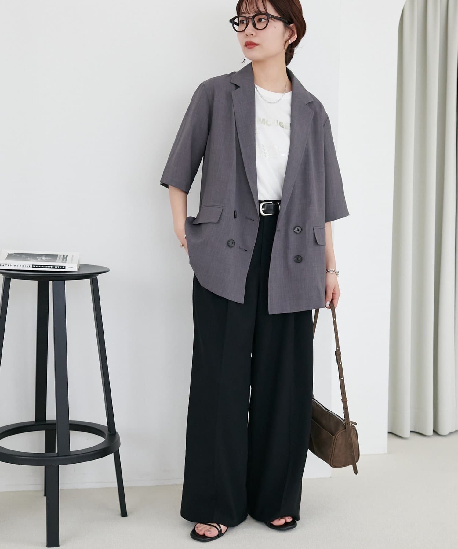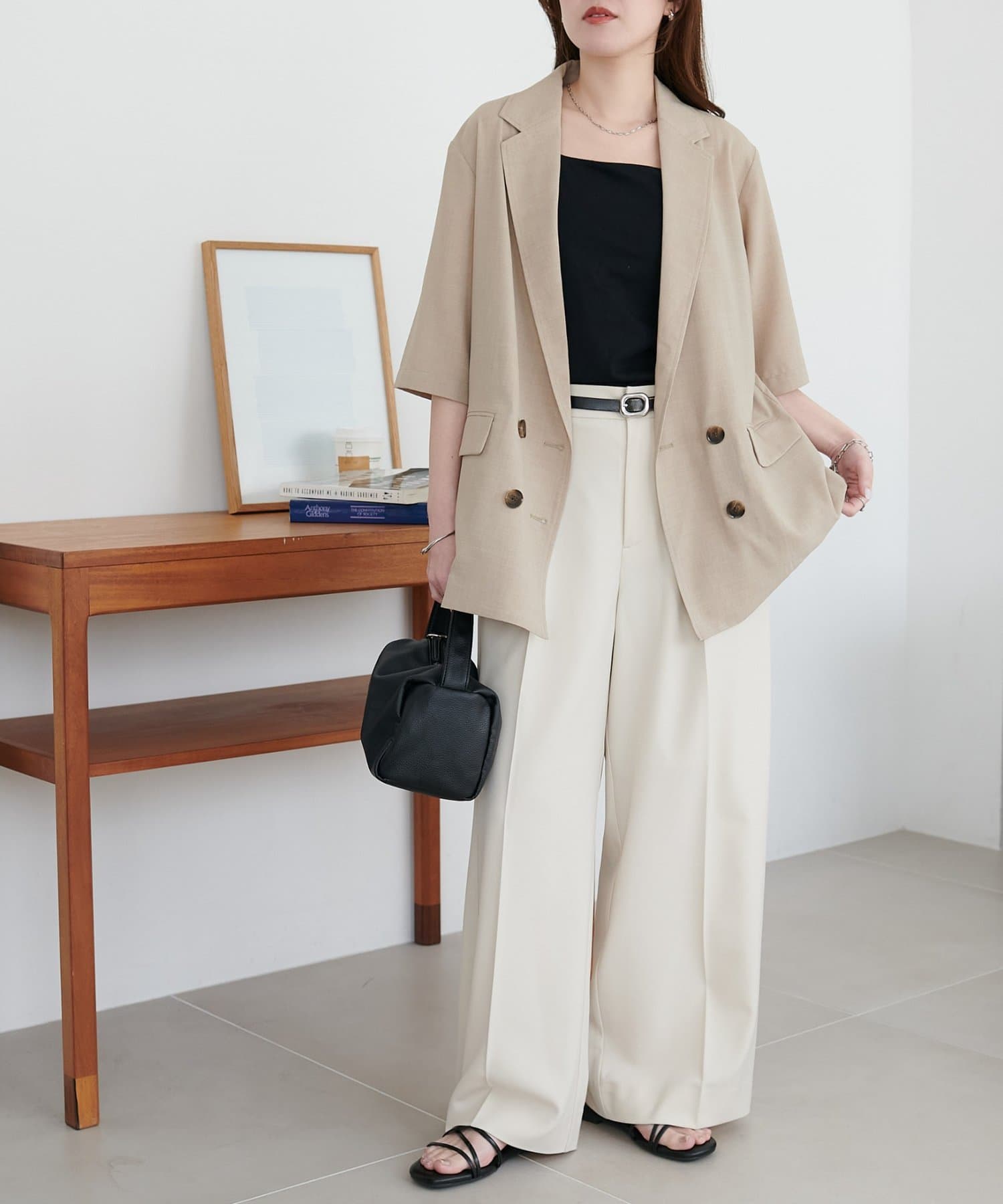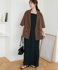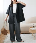 ・同系色のボトムスと合わせてセットアップのように着こなすと、より洗練された印象に