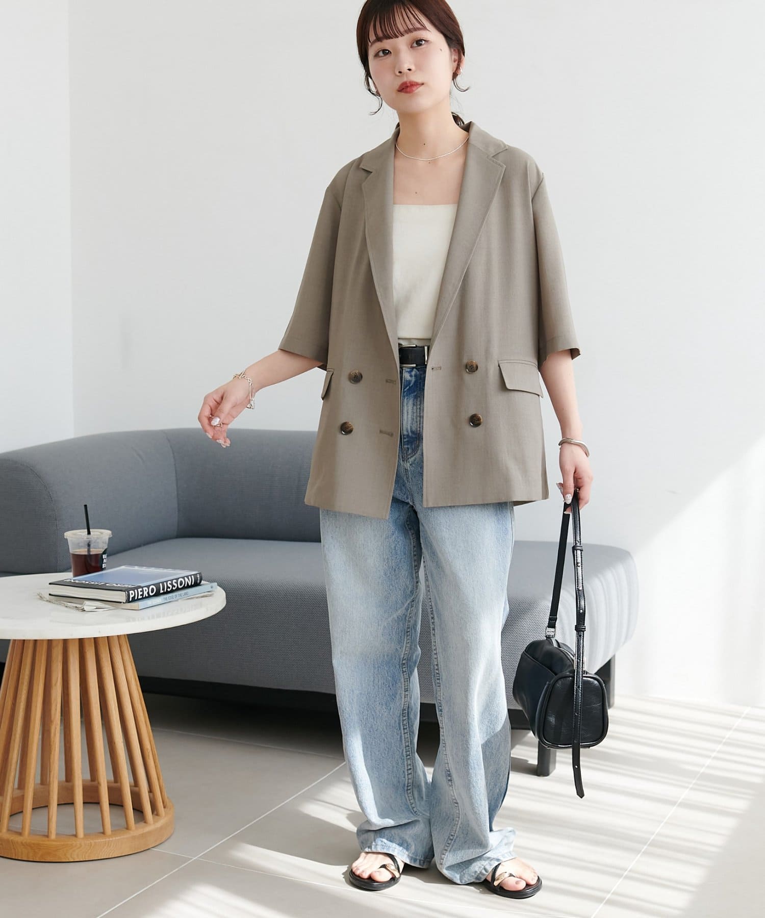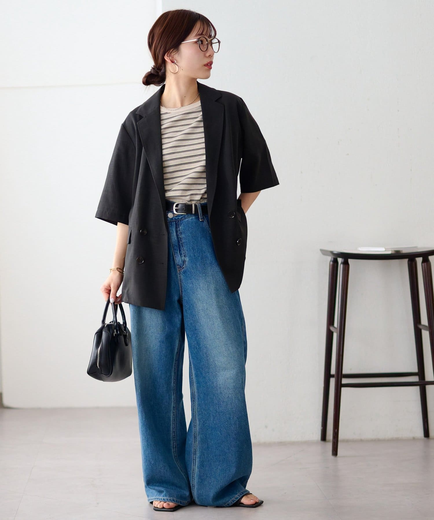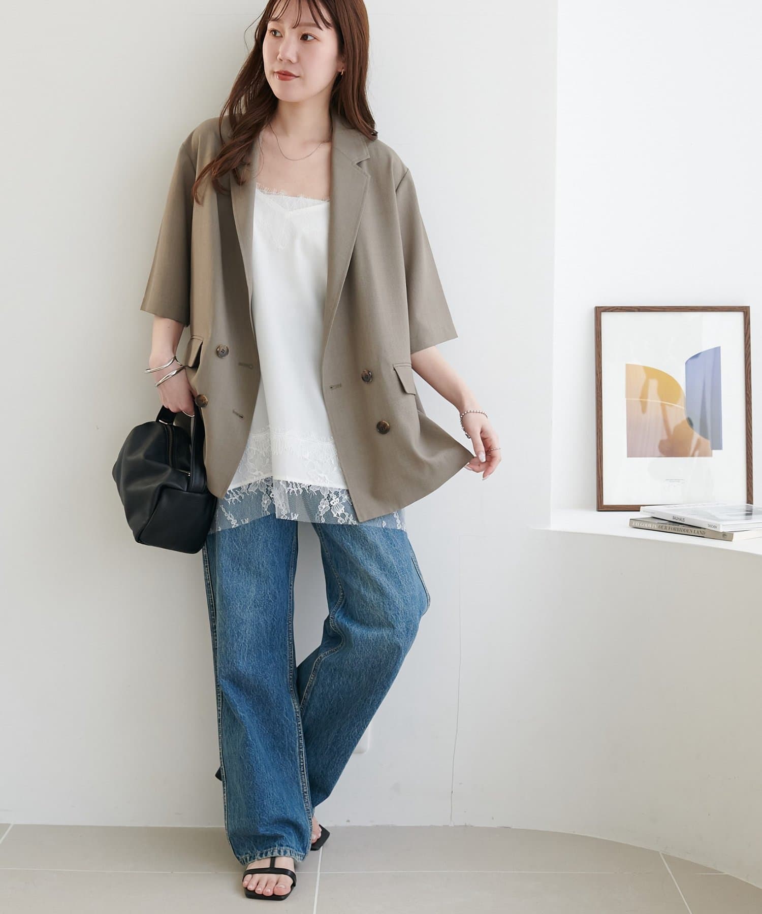 ・インナーをタンクトップにして、デニムパンツと合わせたラフなスタイルも◎
