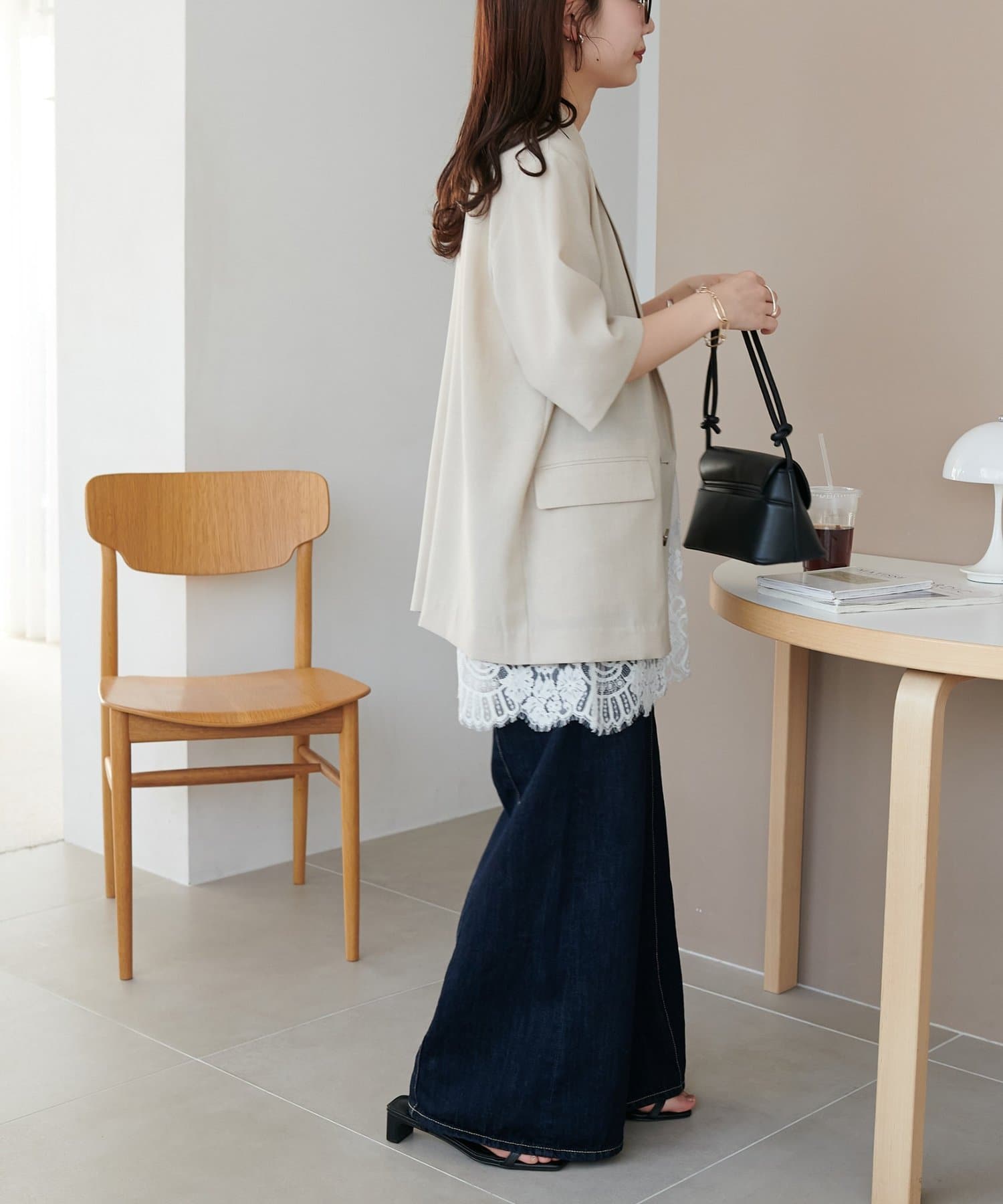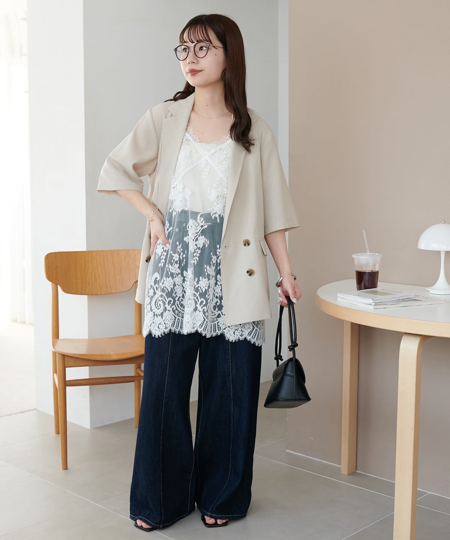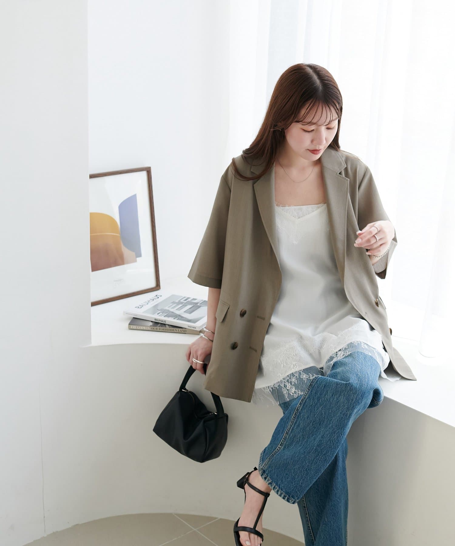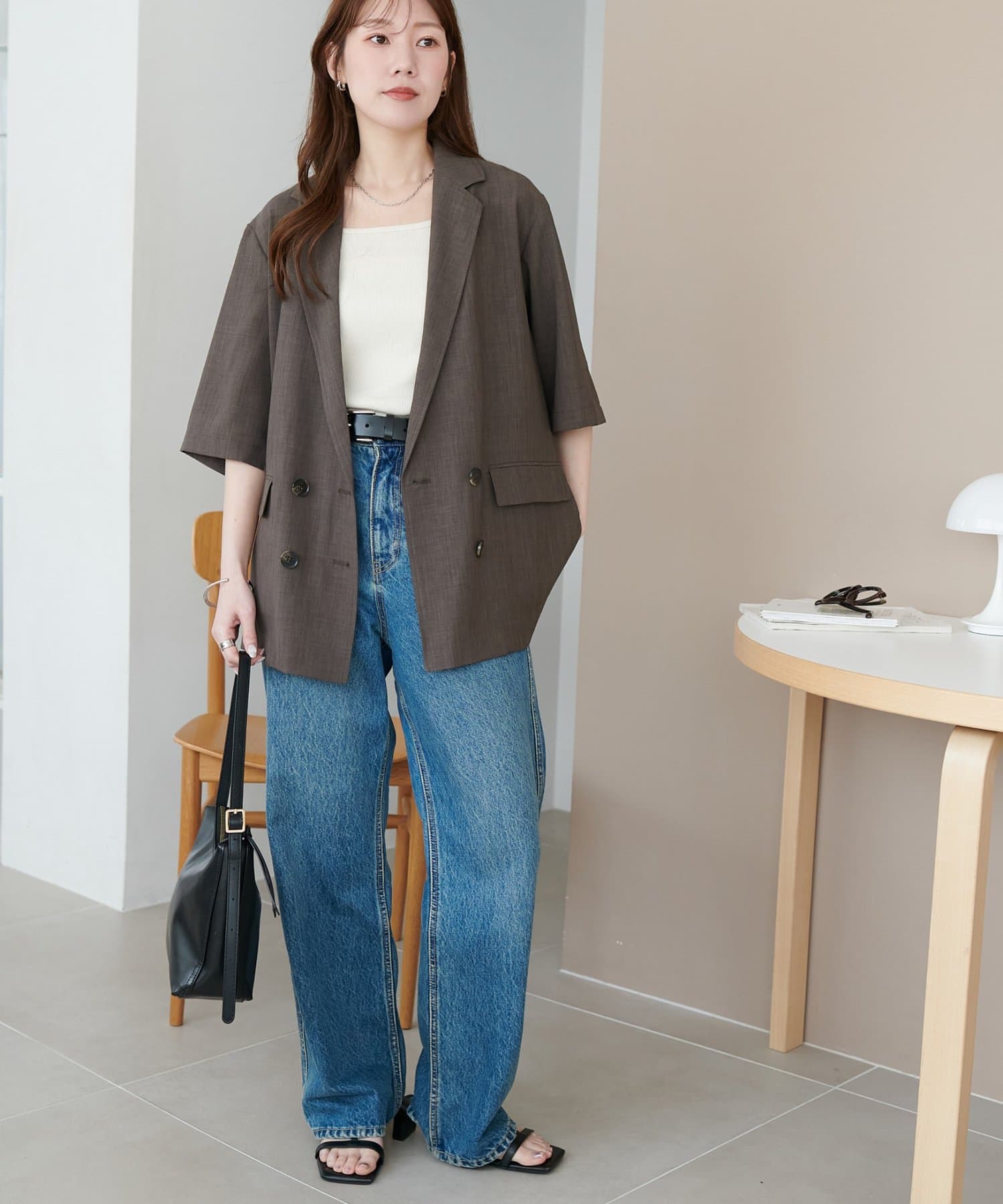 ・インナーをタンクトップにして、デニムパンツと合わせたラフなスタイルも◎