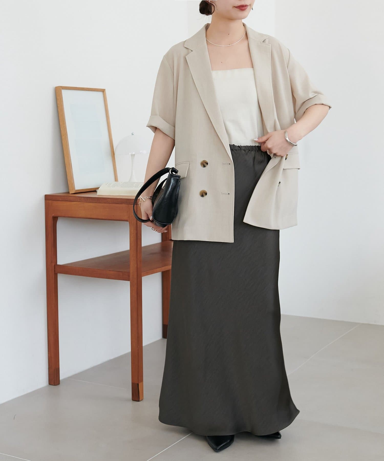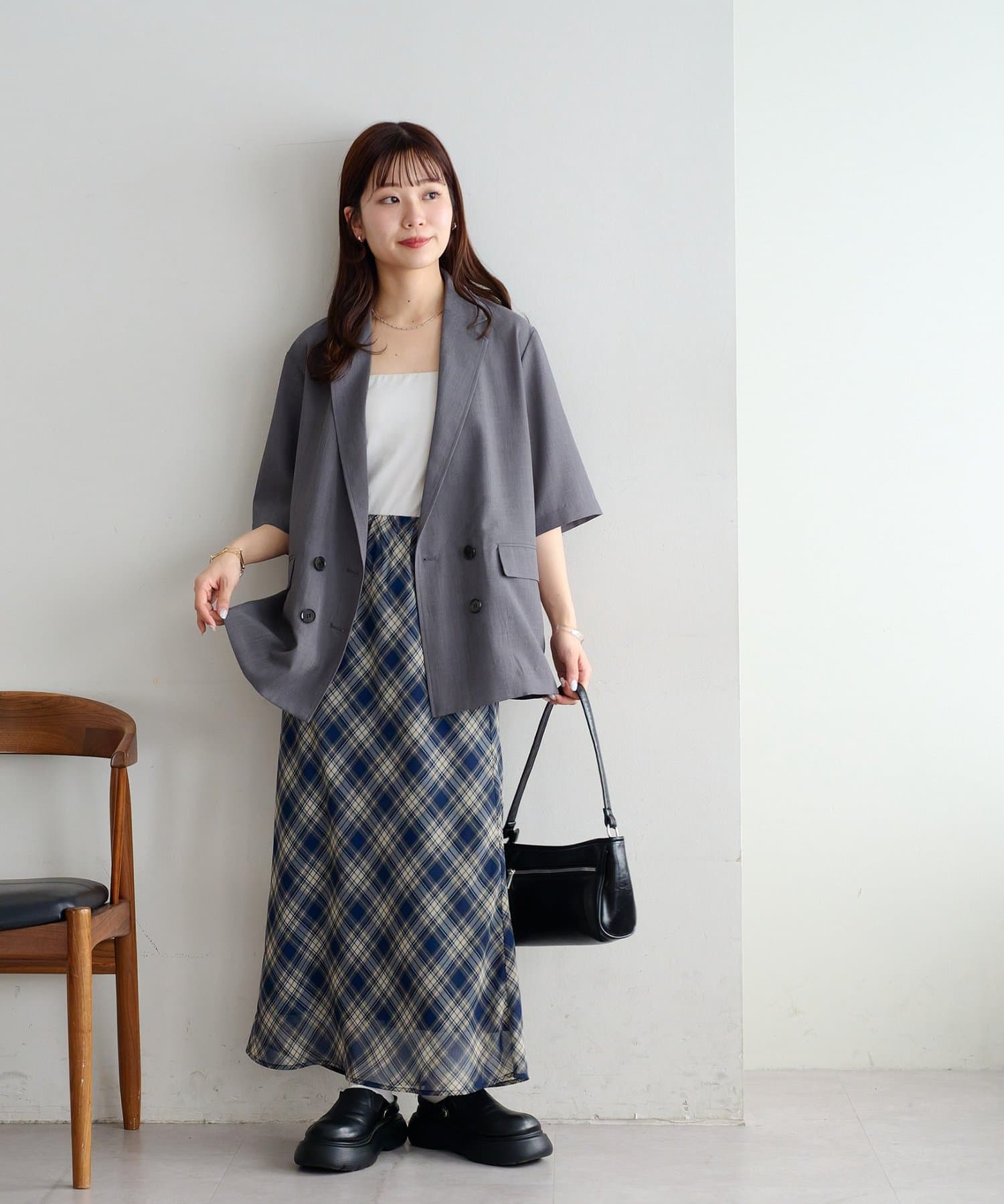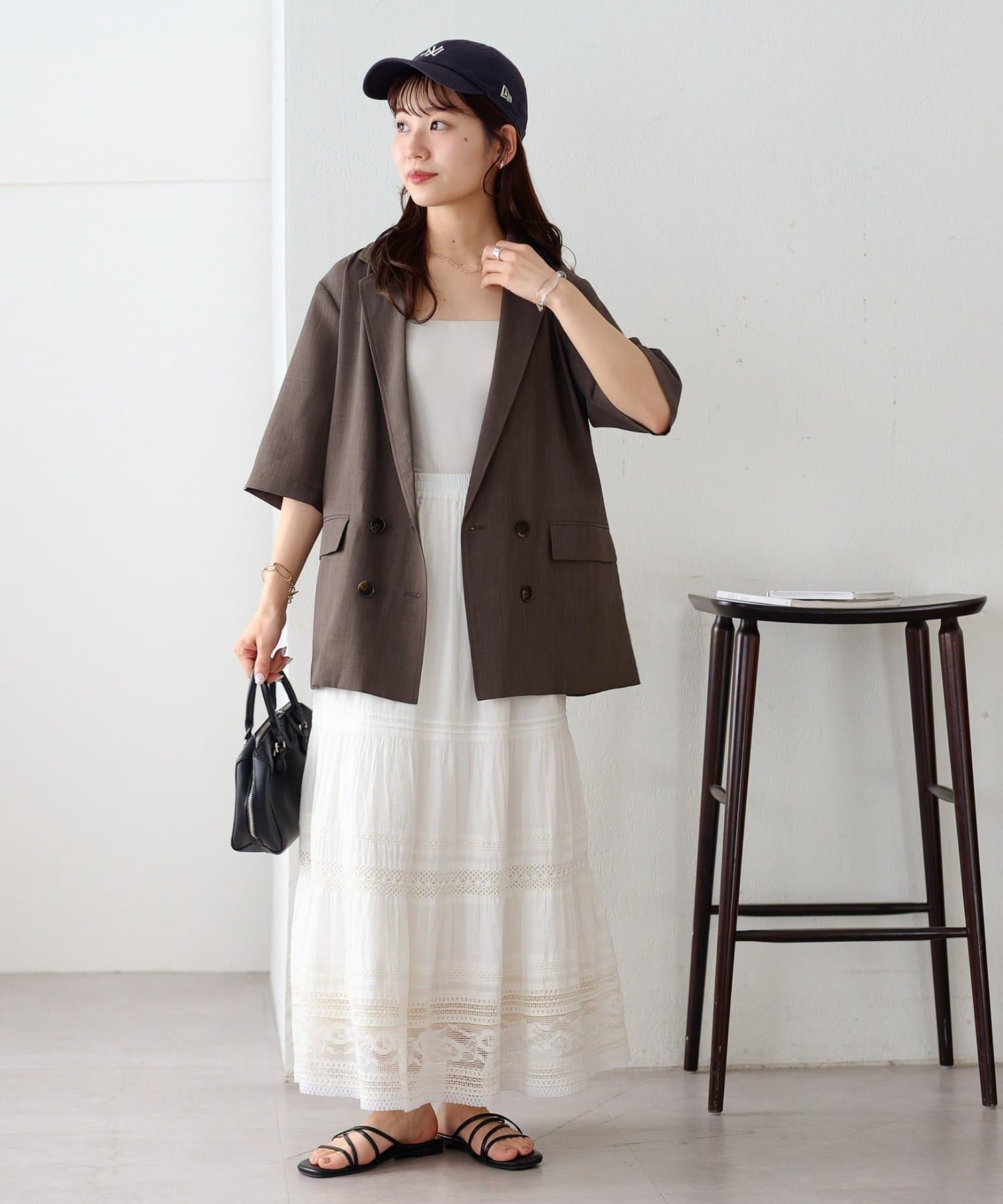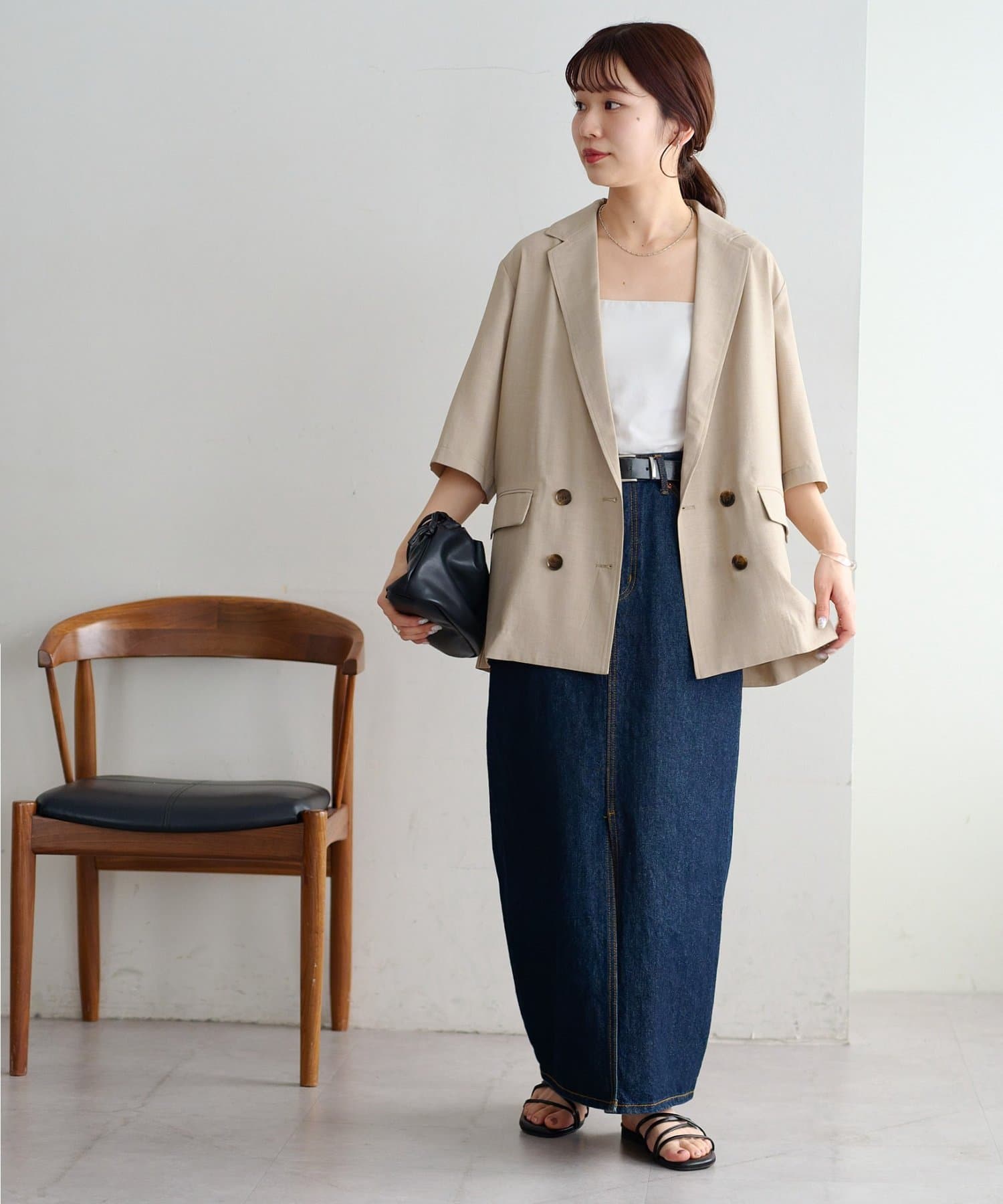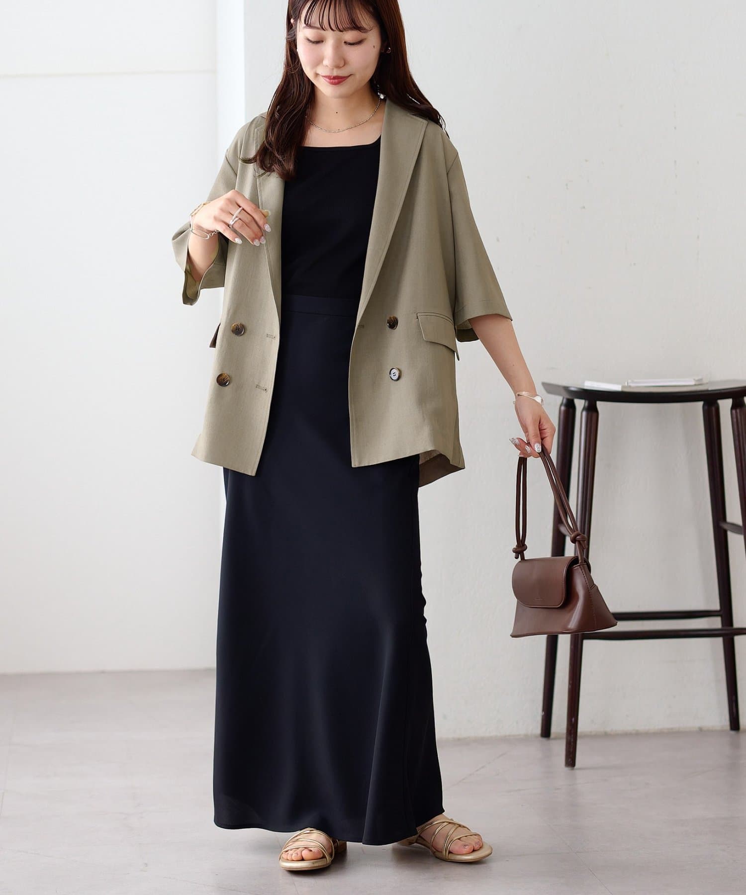 162cmスタッフ:ロングスカートやワンピースともバランスがとりやすいデザイン。素肌にさらりと心地よく汗ばむ日も快適な着心地で過ごせそう!