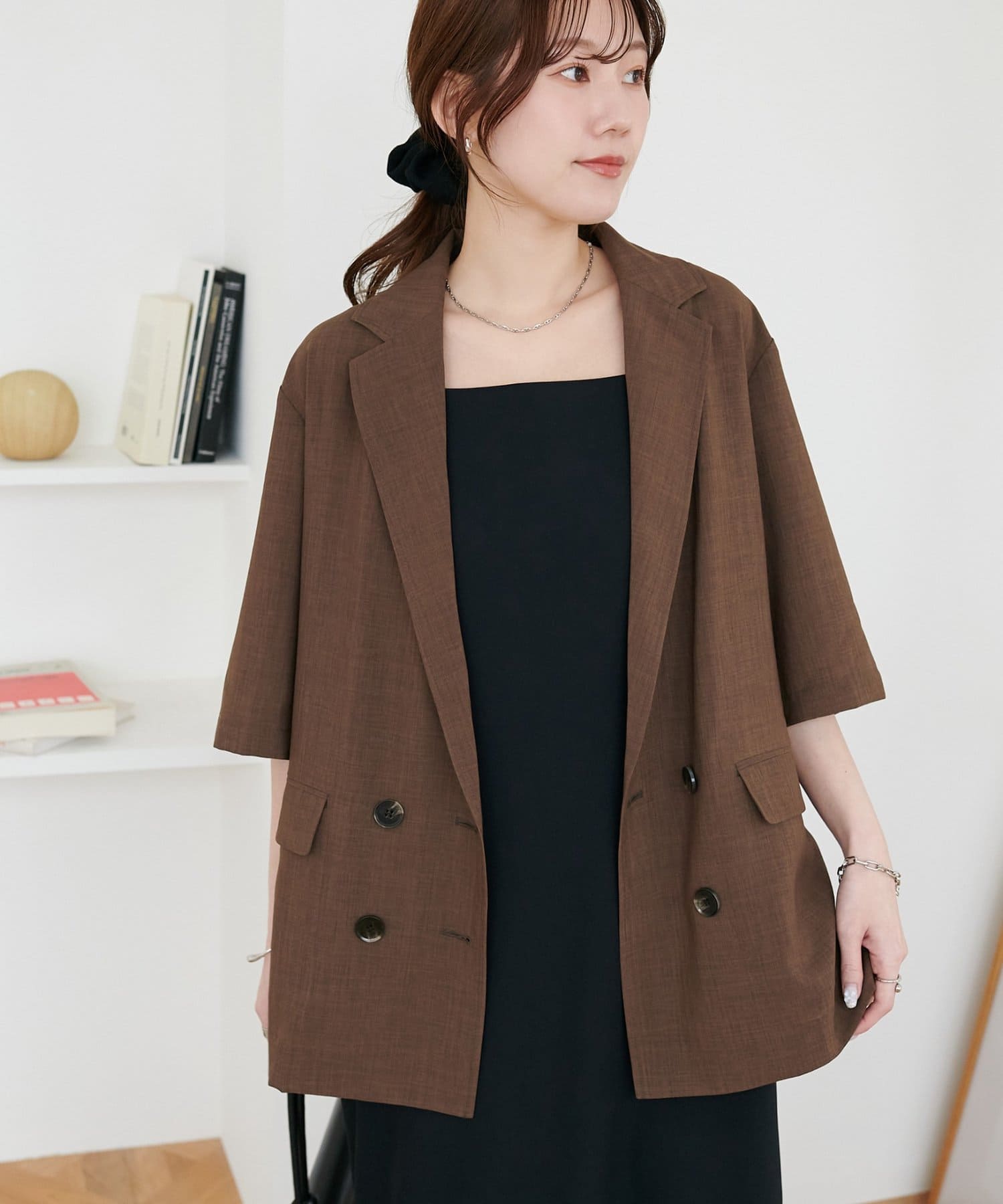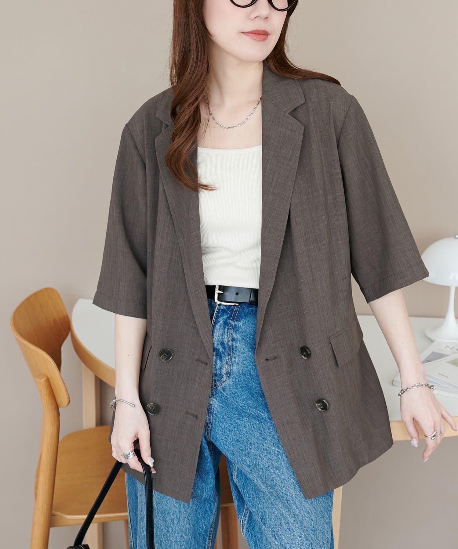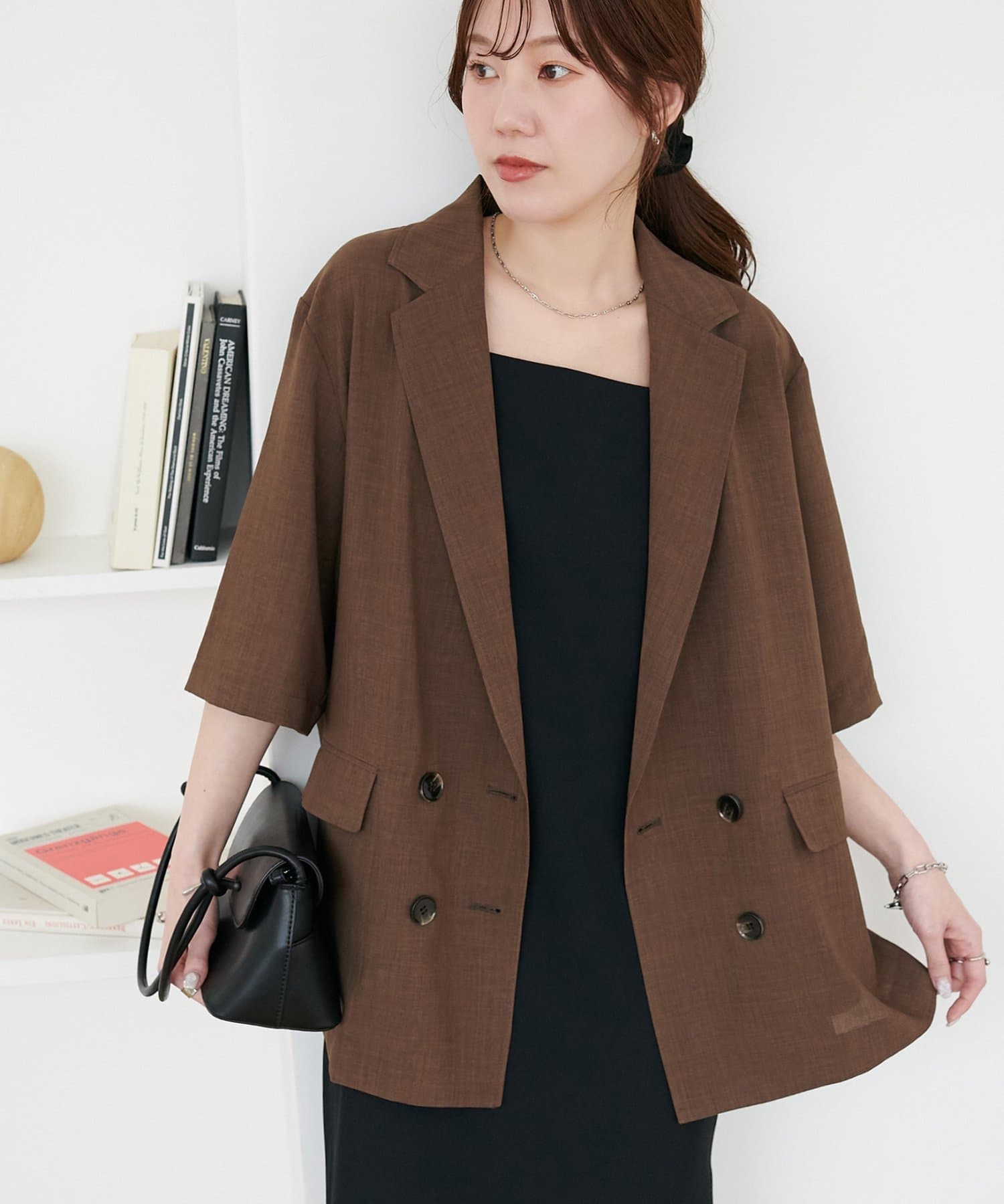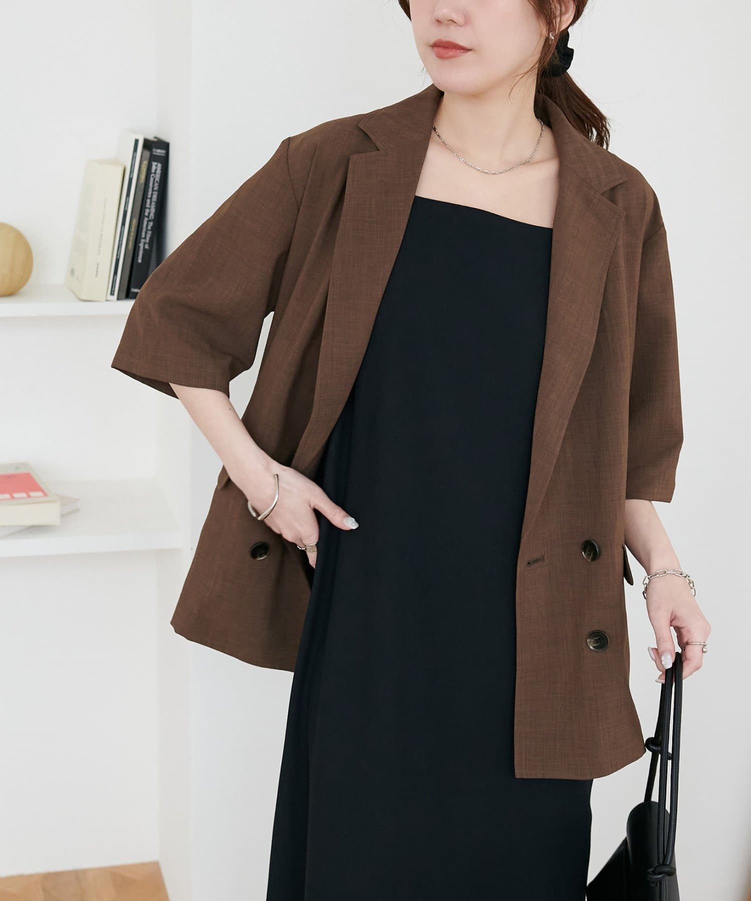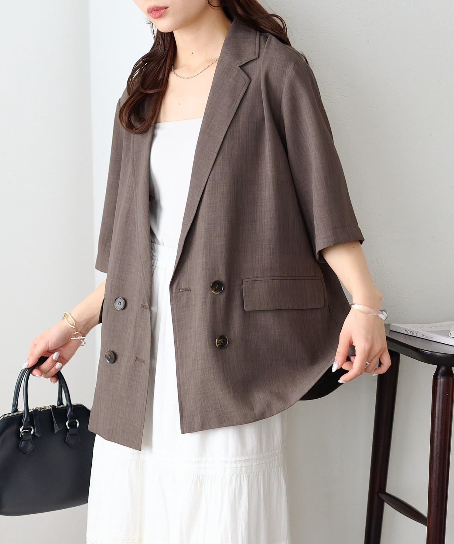 リネンのような涼し気な風合いで、夏に嬉しい高機能半袖ジャケット