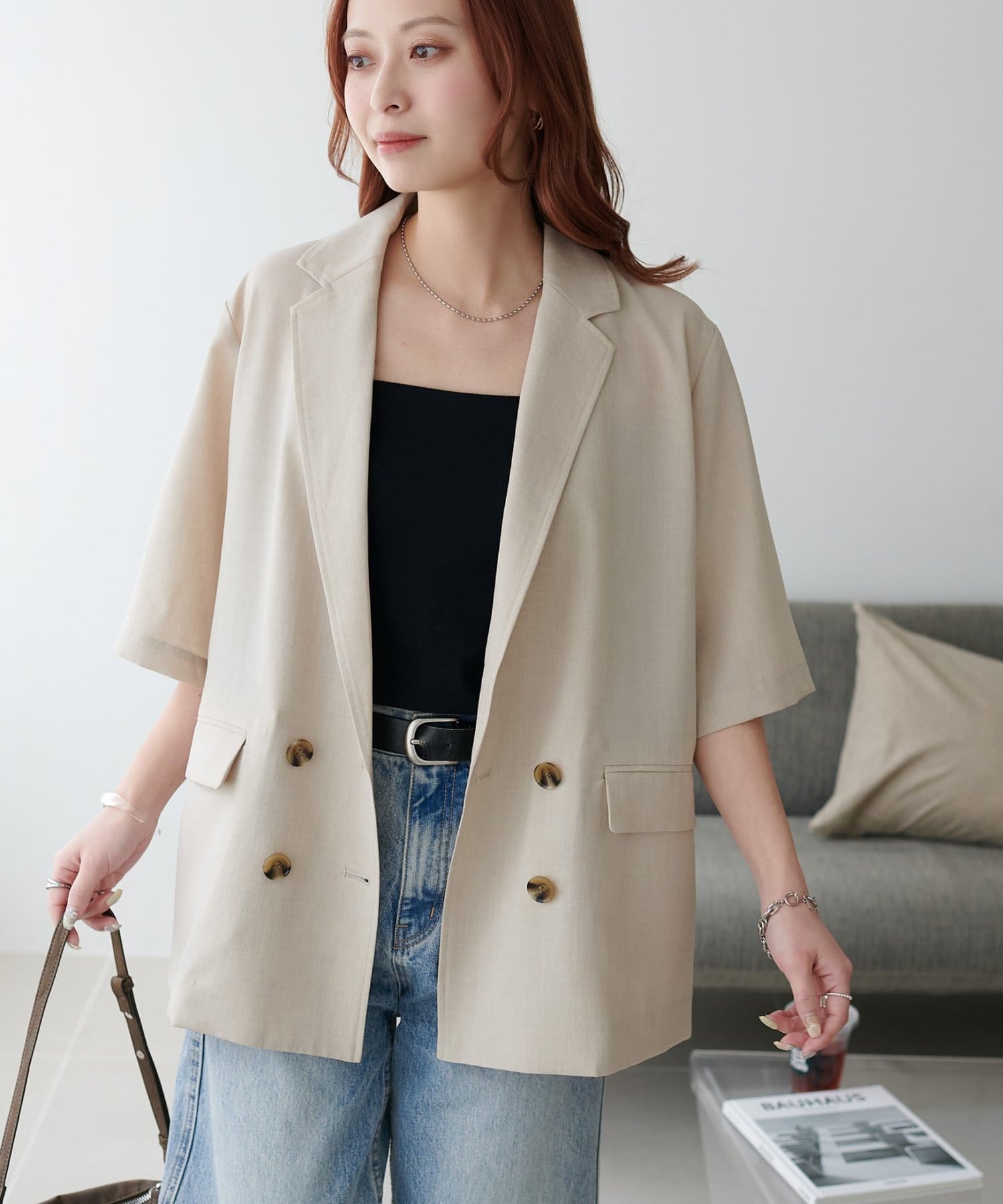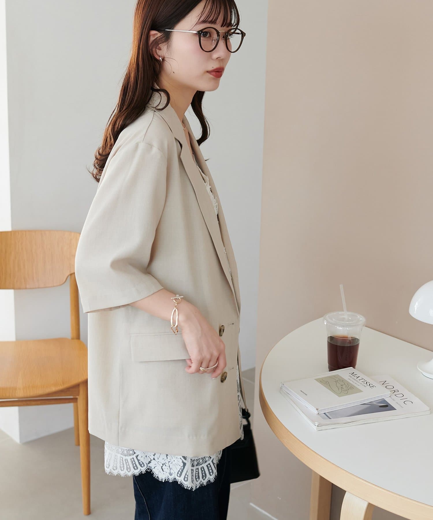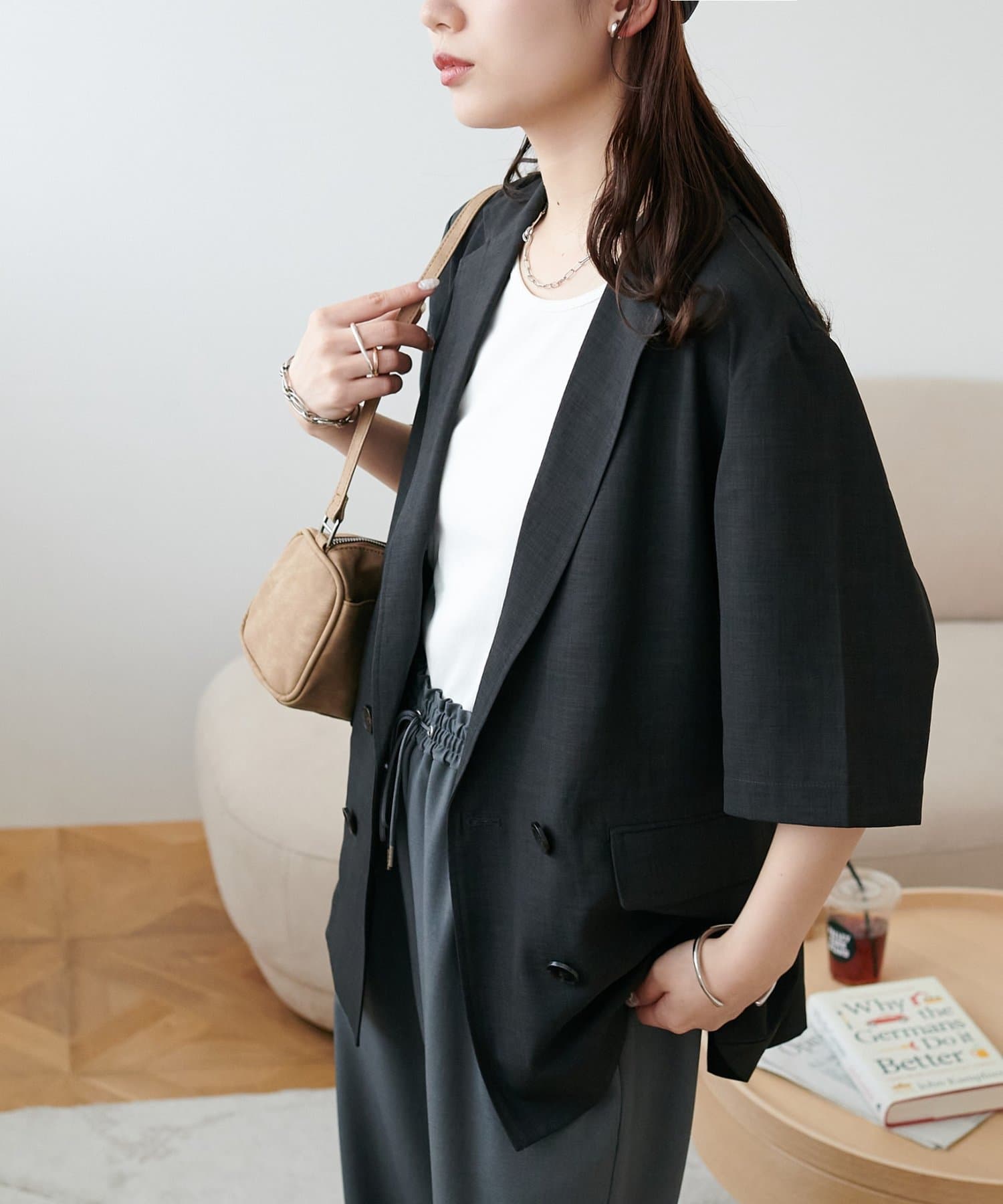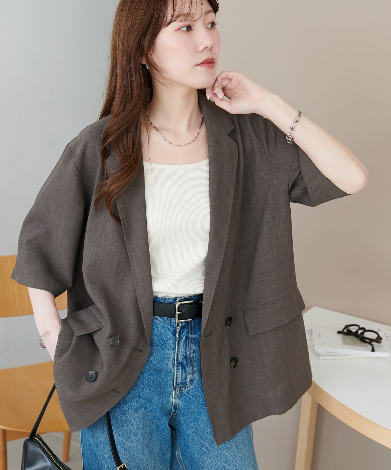 リネンのような涼し気な風合いで、夏に嬉しい高機能半袖ジャケット