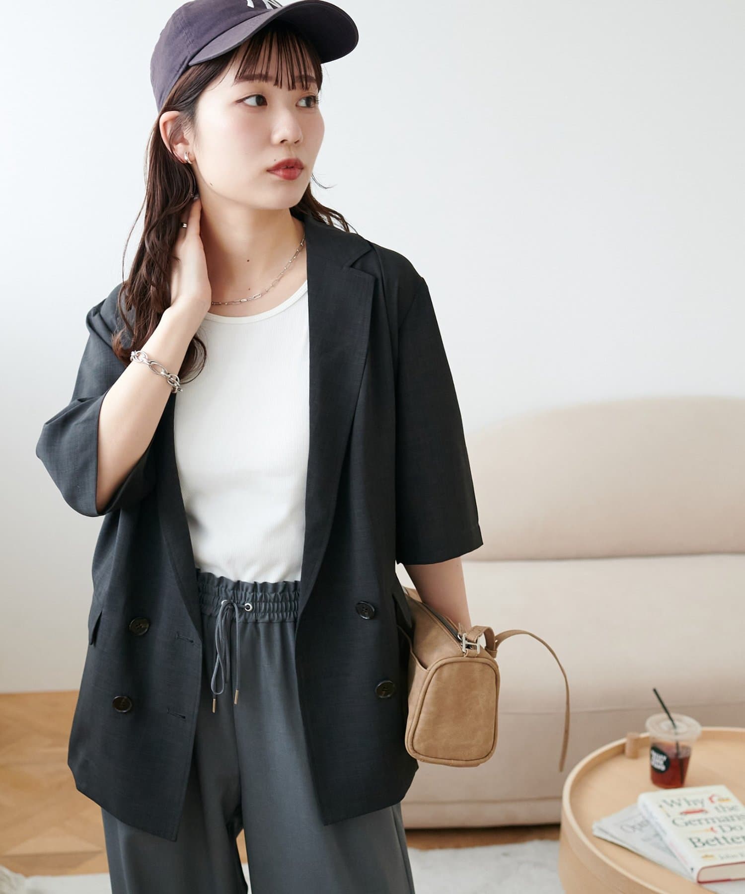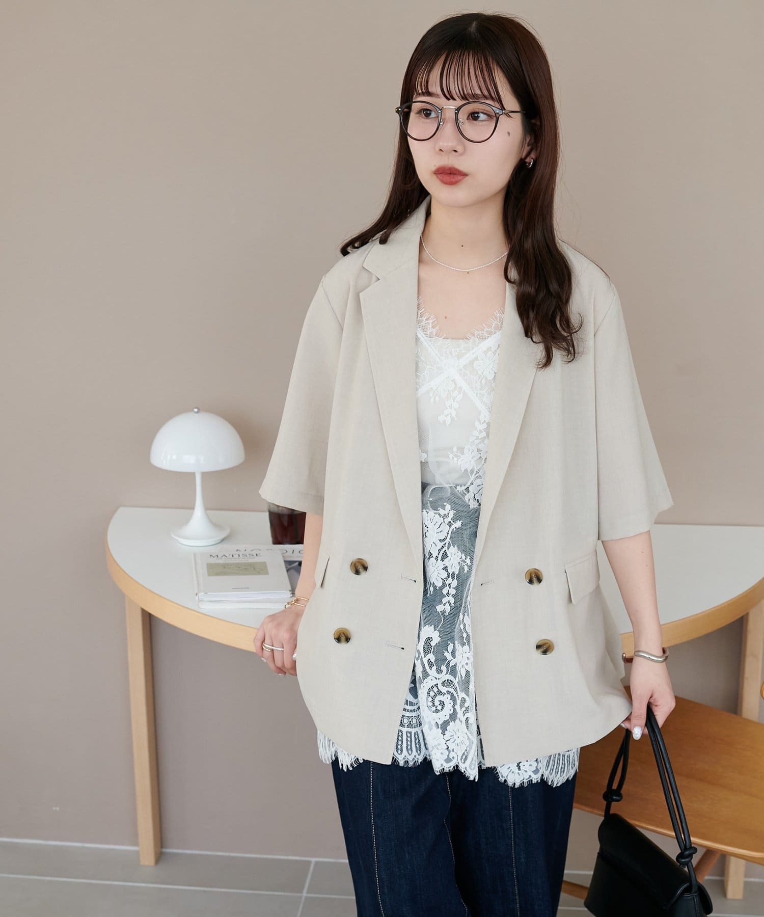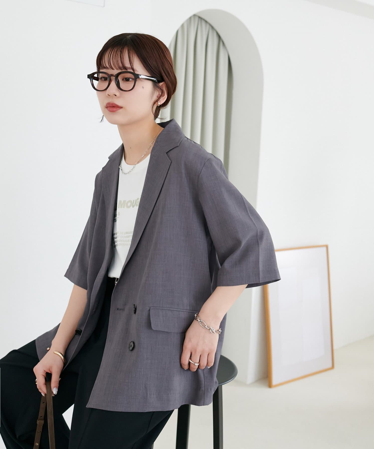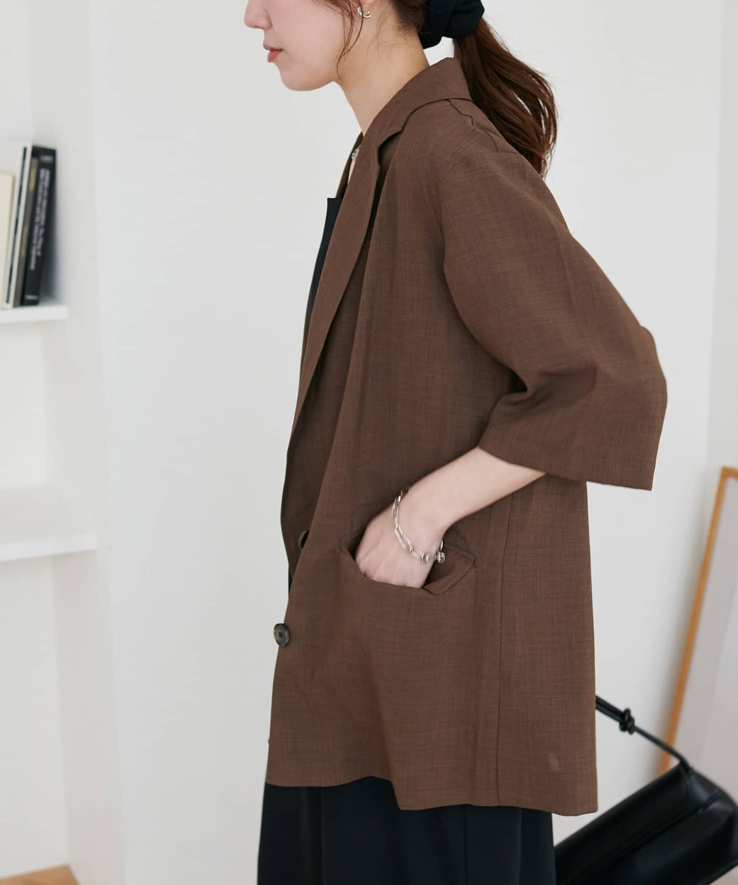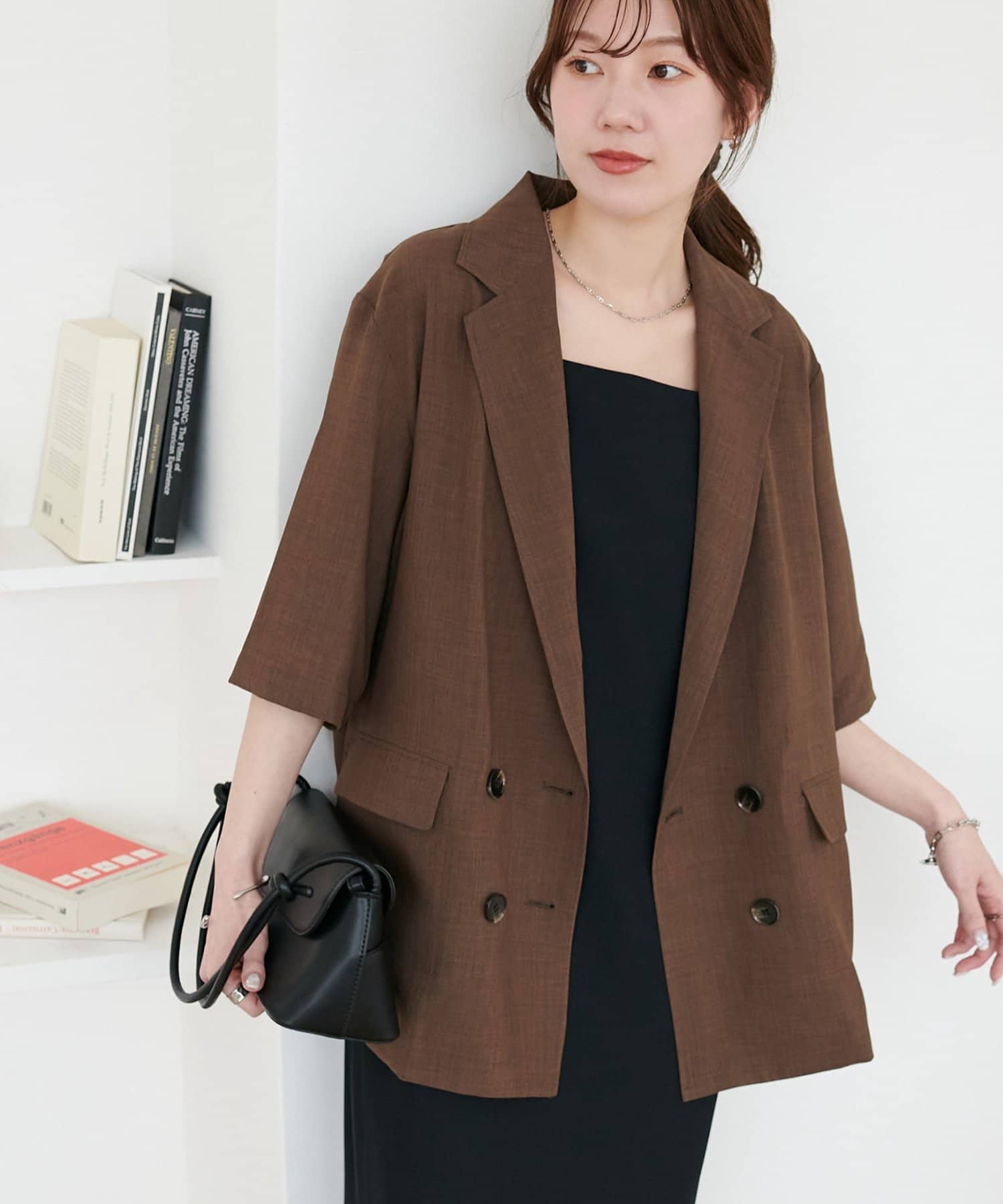 リネンのような涼し気な風合いで、夏に嬉しい高機能半袖ジャケット