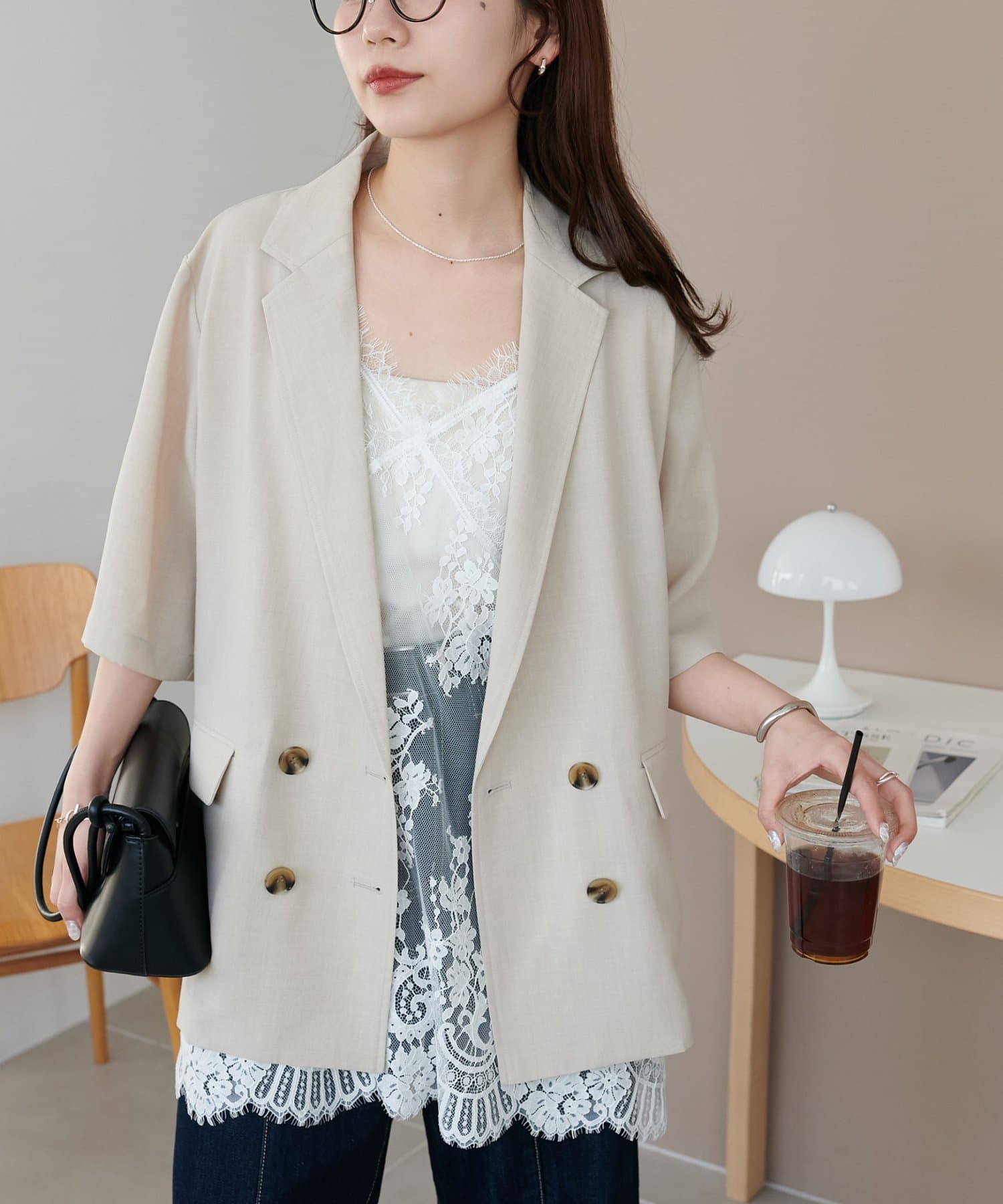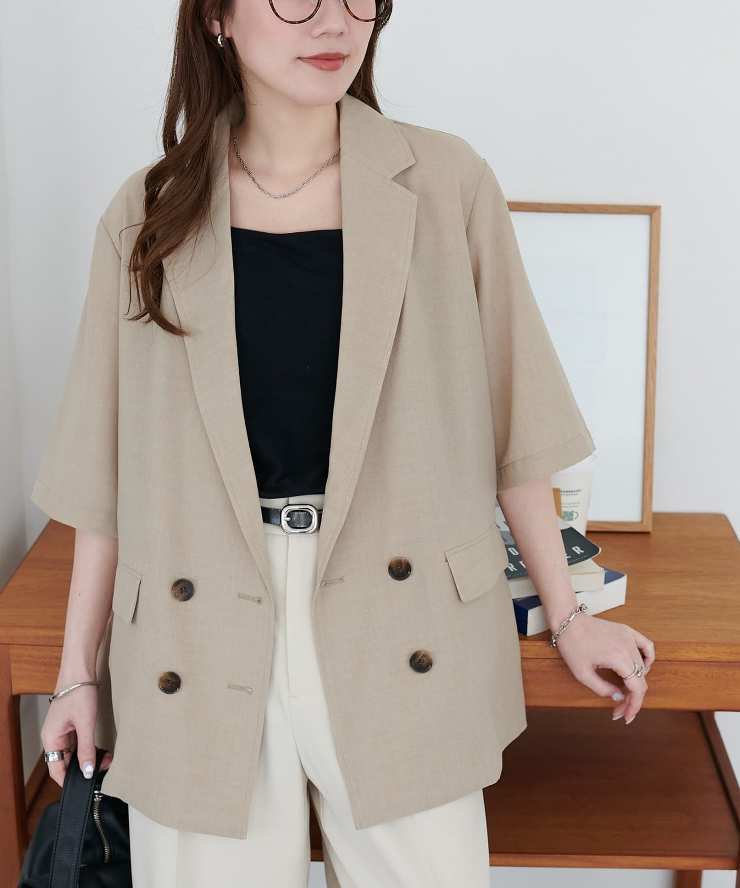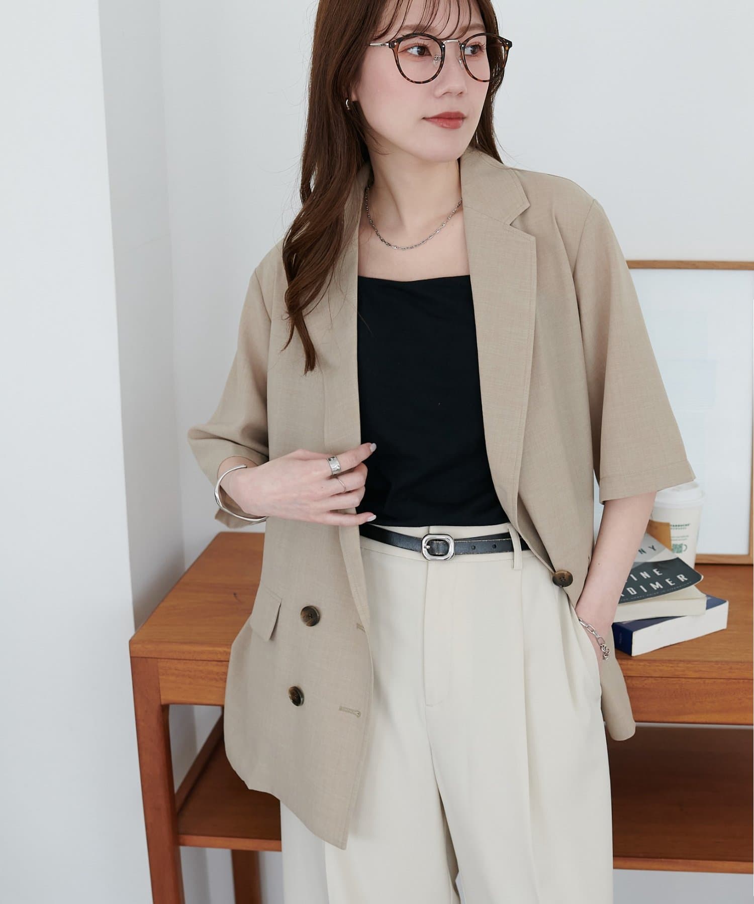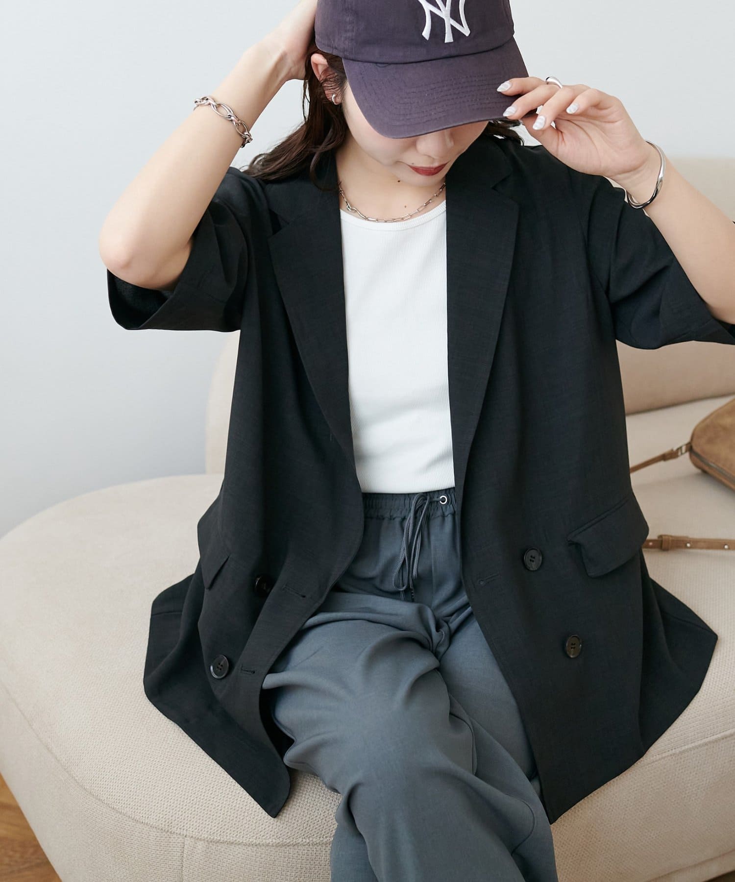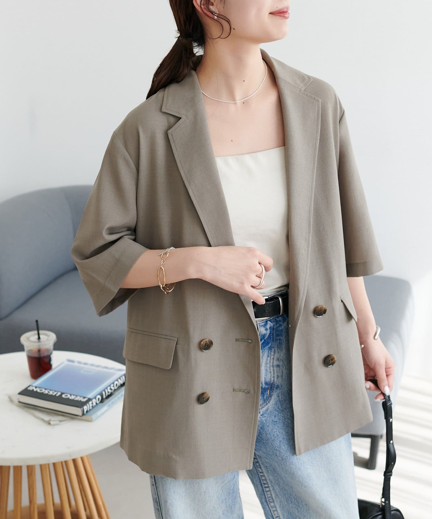 リネンのような涼し気な風合いで、夏に嬉しい高機能半袖ジャケット