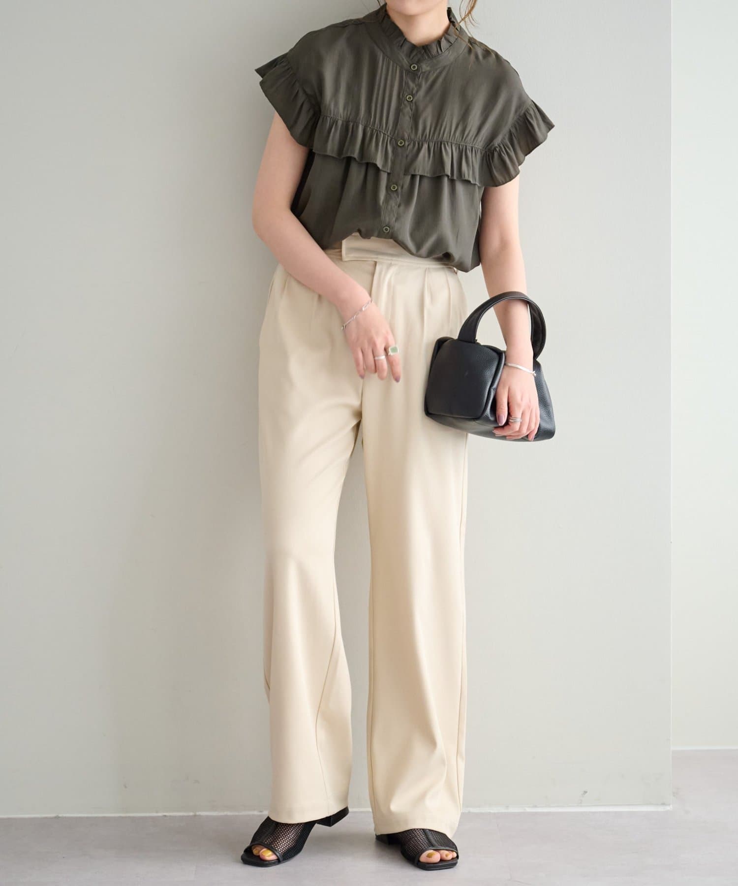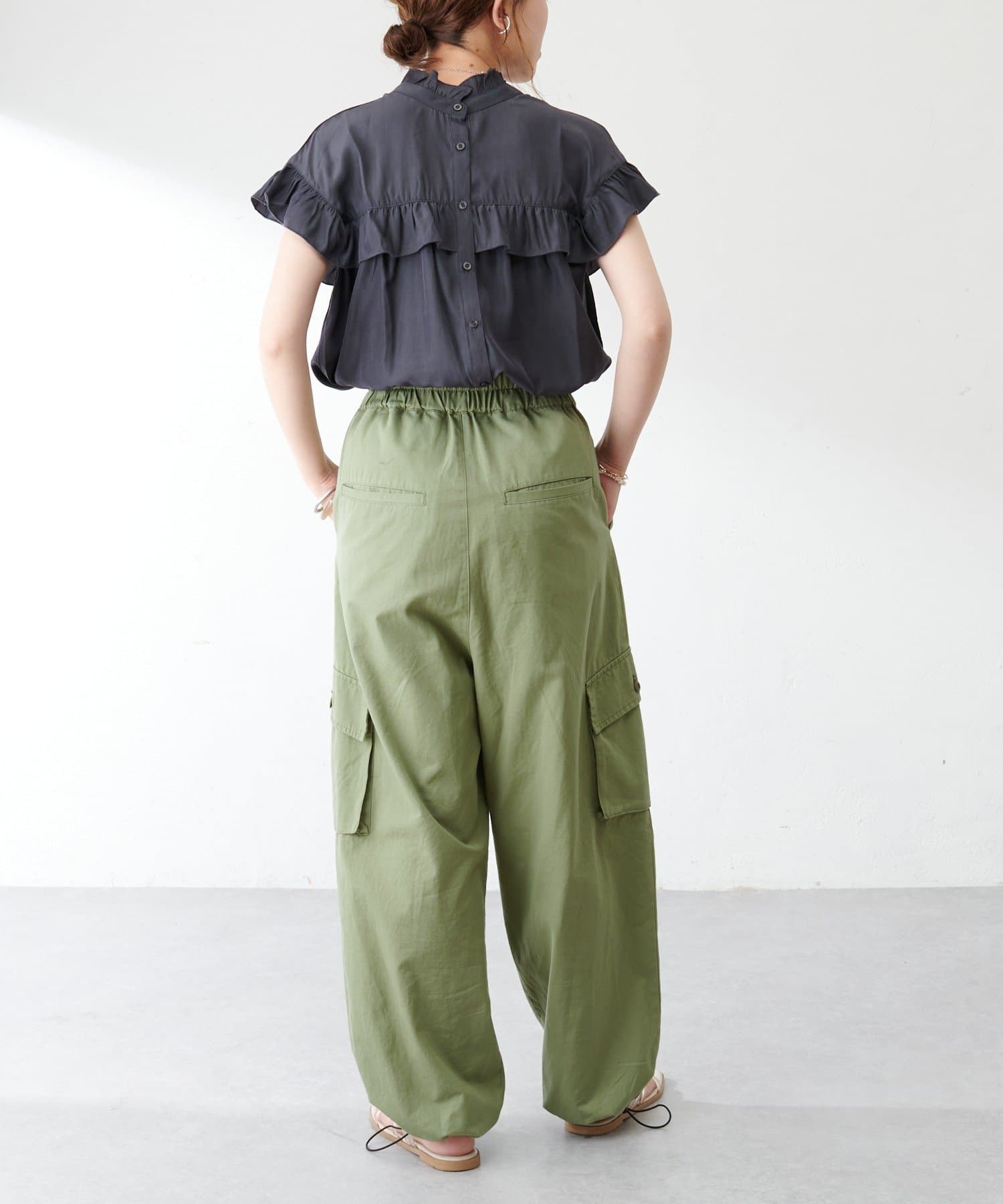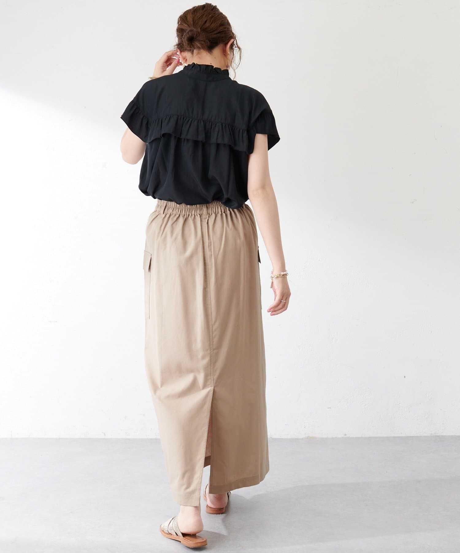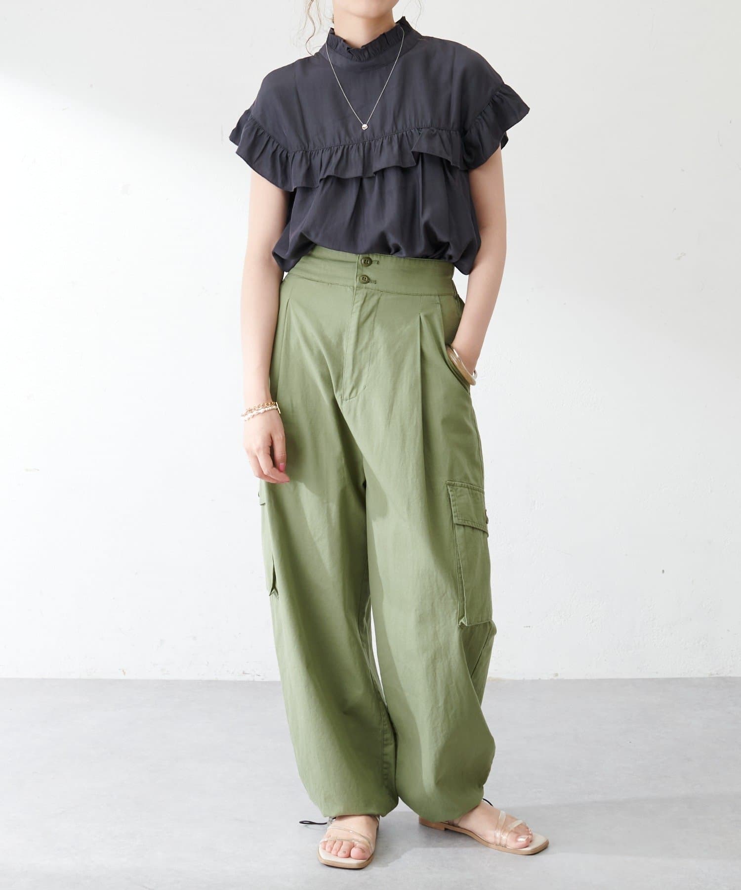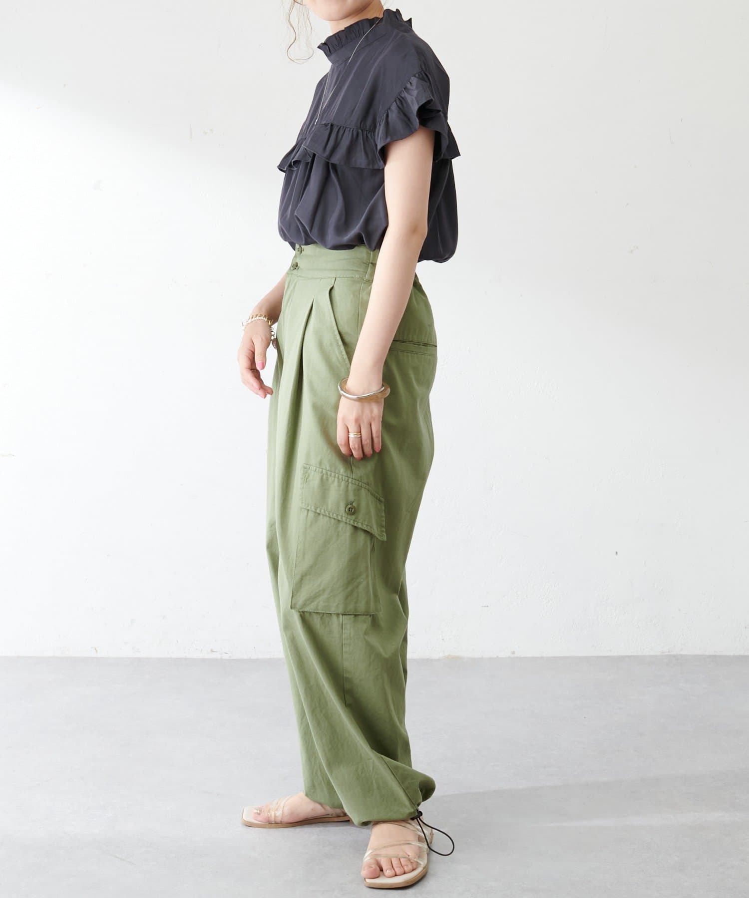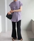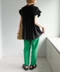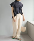 ・さらっと肌当たりが良くシワも気になりにくい落ち感がある生地で、大人フェミニンなサマースタイルにぴったり♪