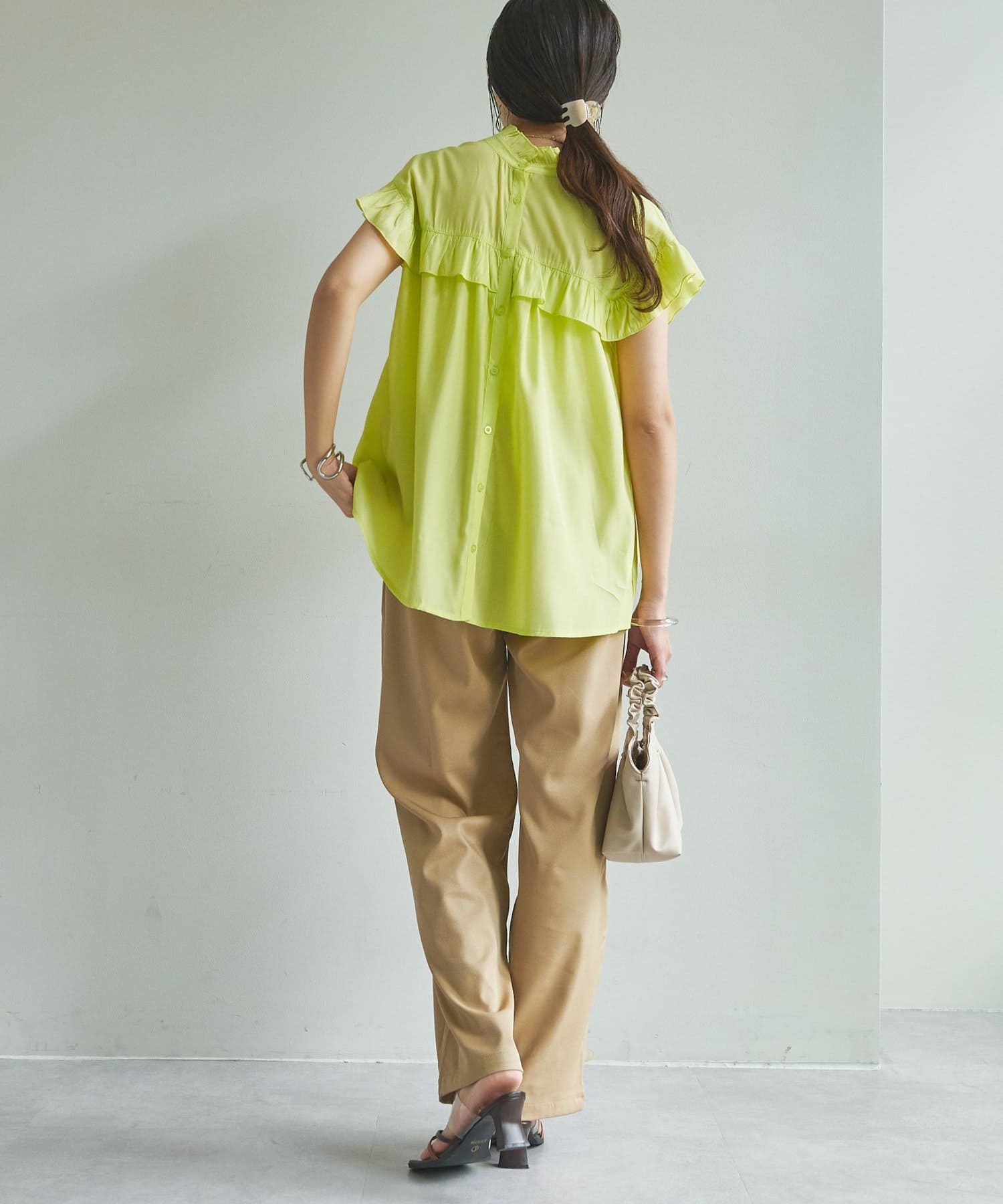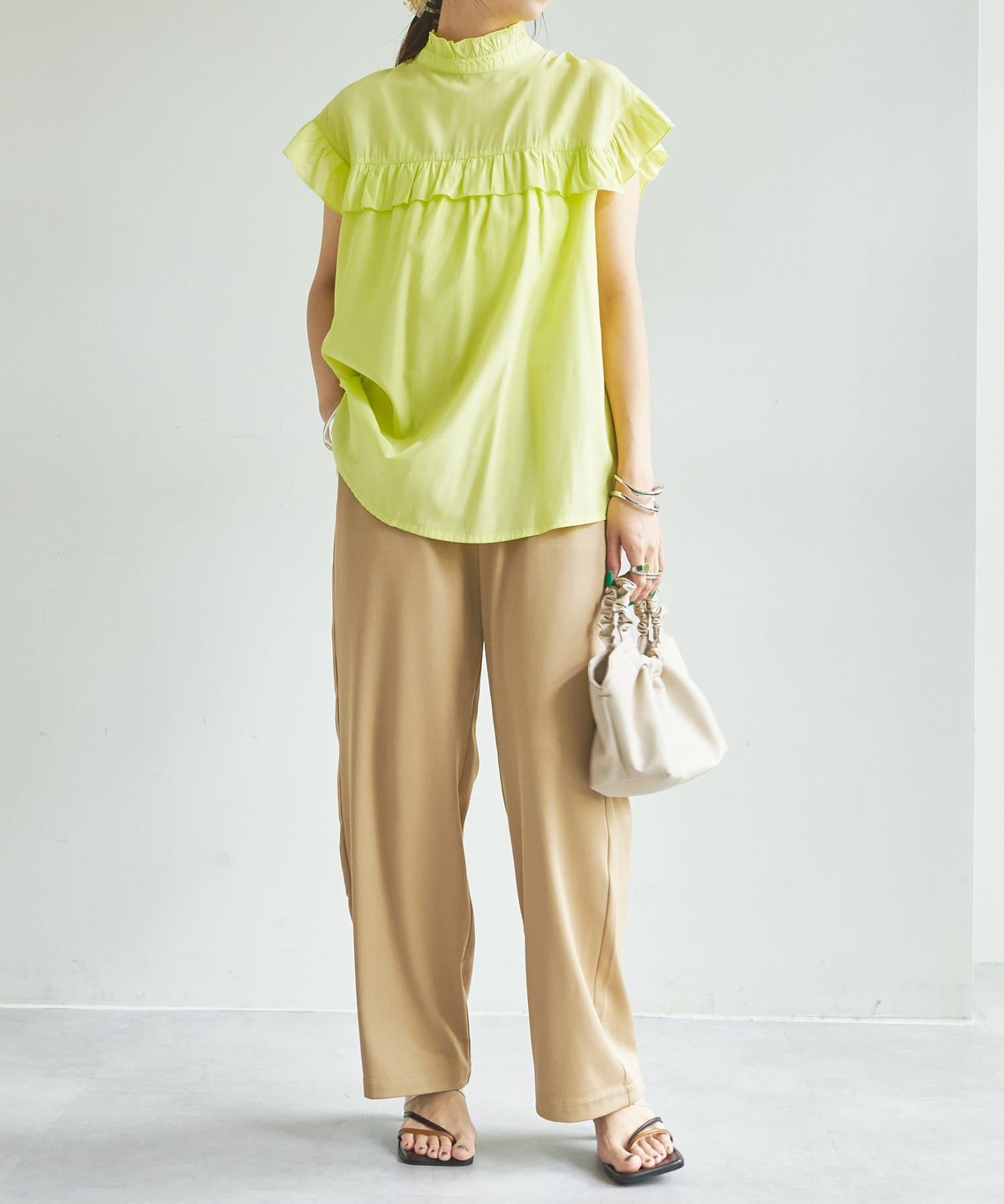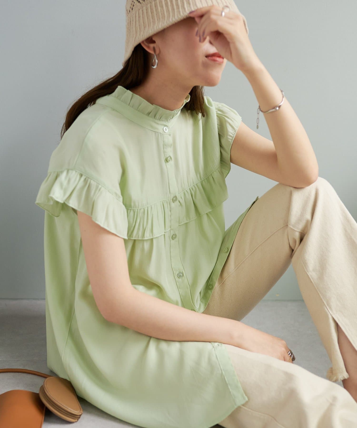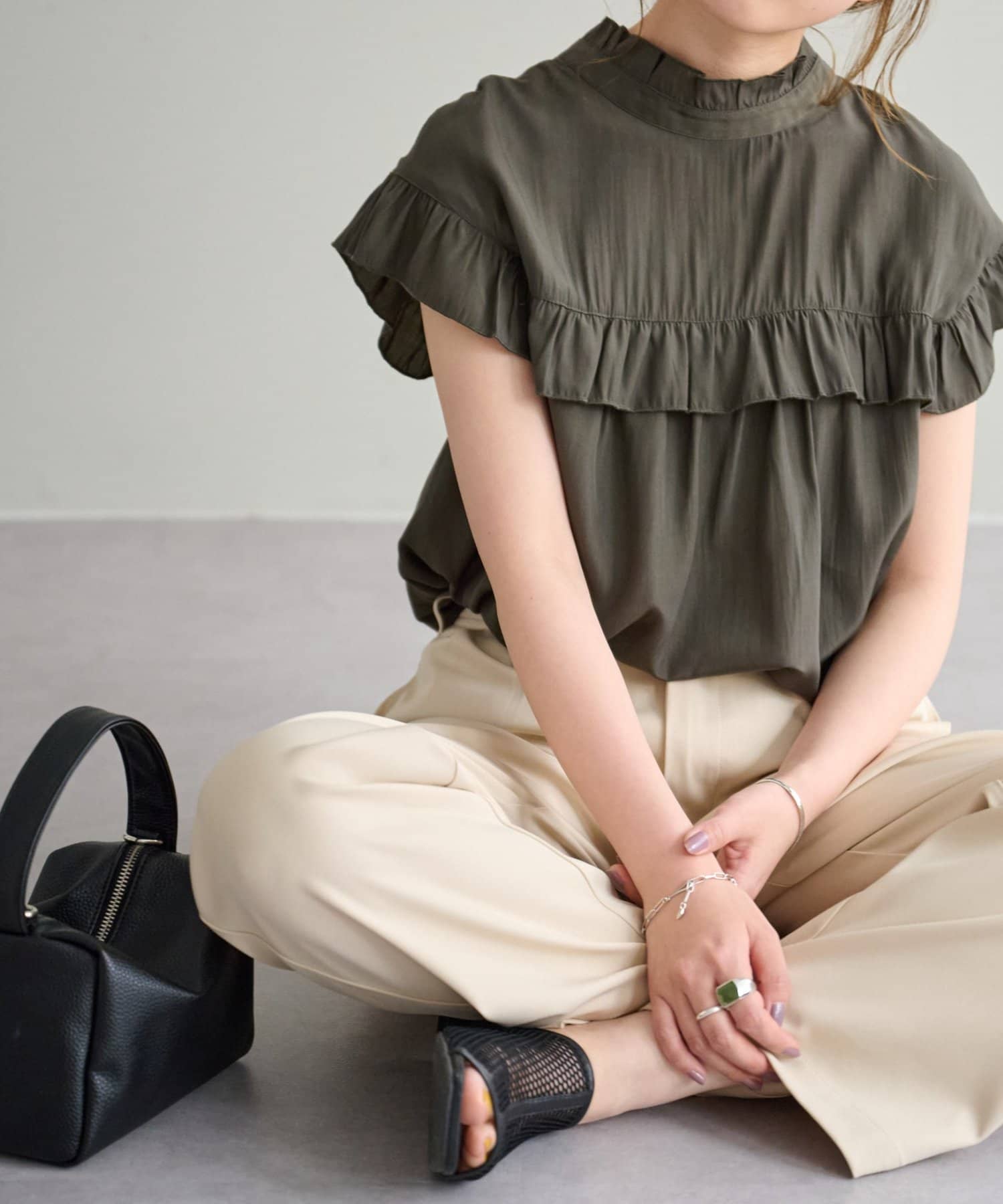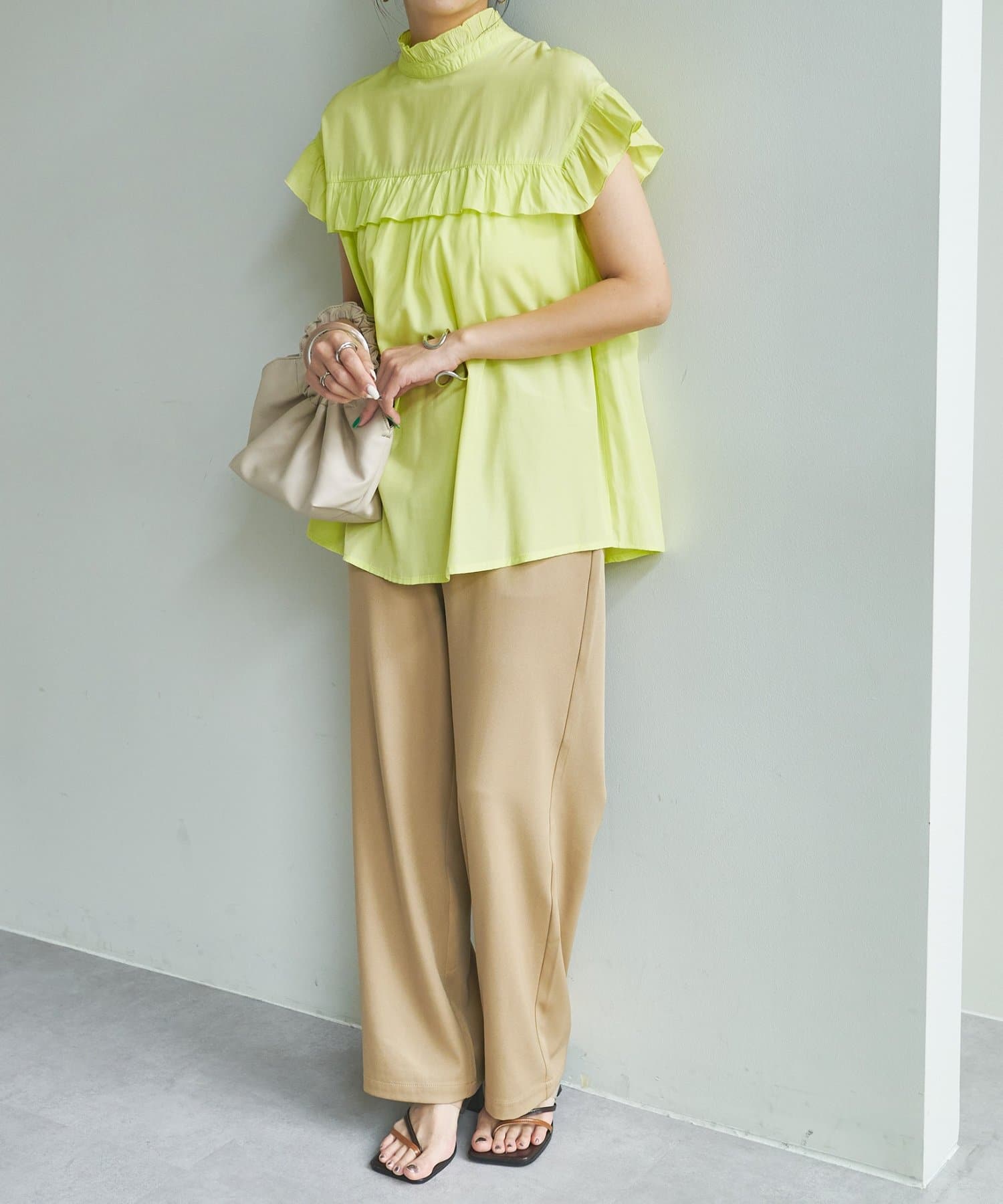 ・さらっと肌当たりが良くシワも気になりにくい落ち感がある生地で、大人フェミニンなサマースタイルにぴったり♪