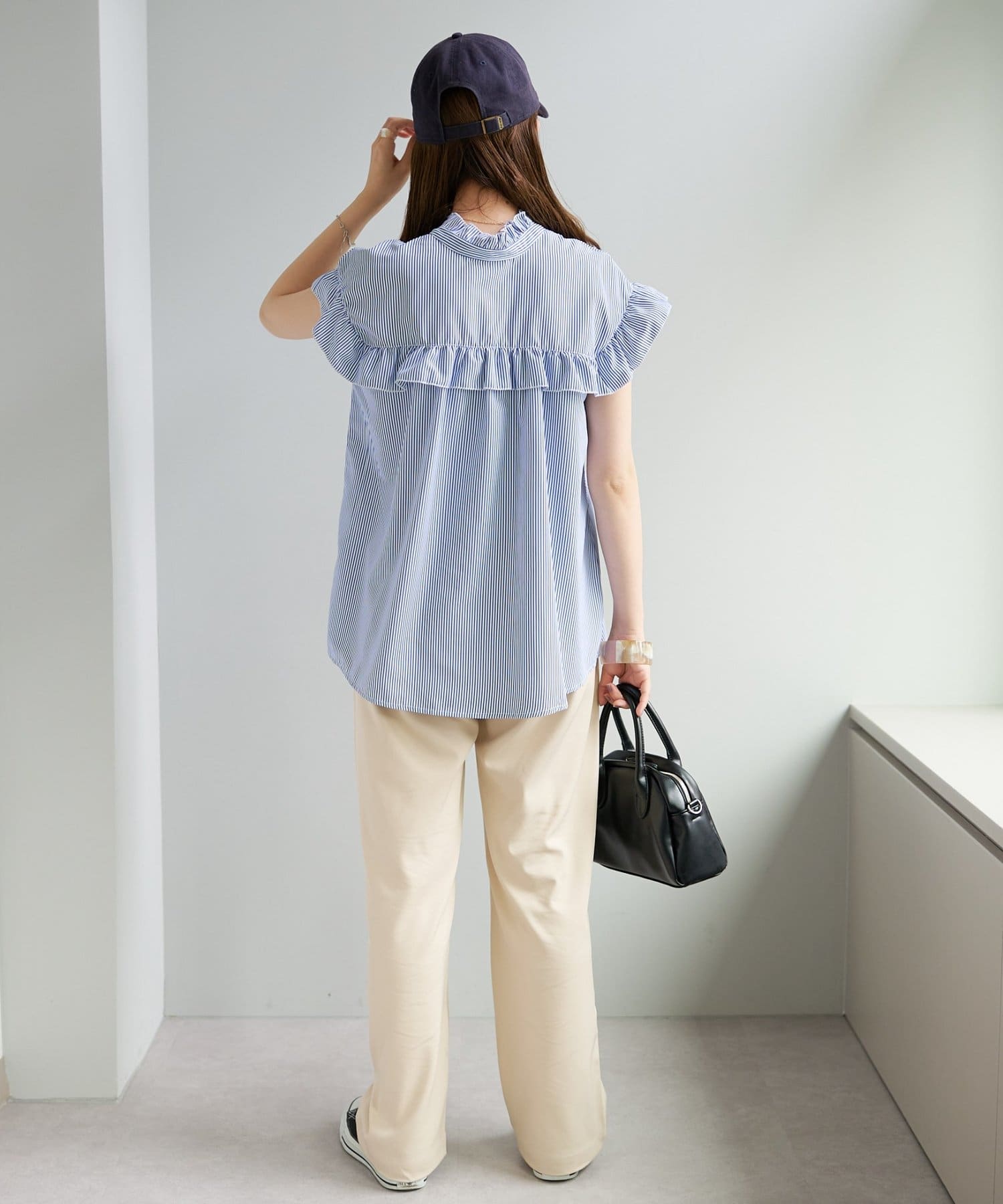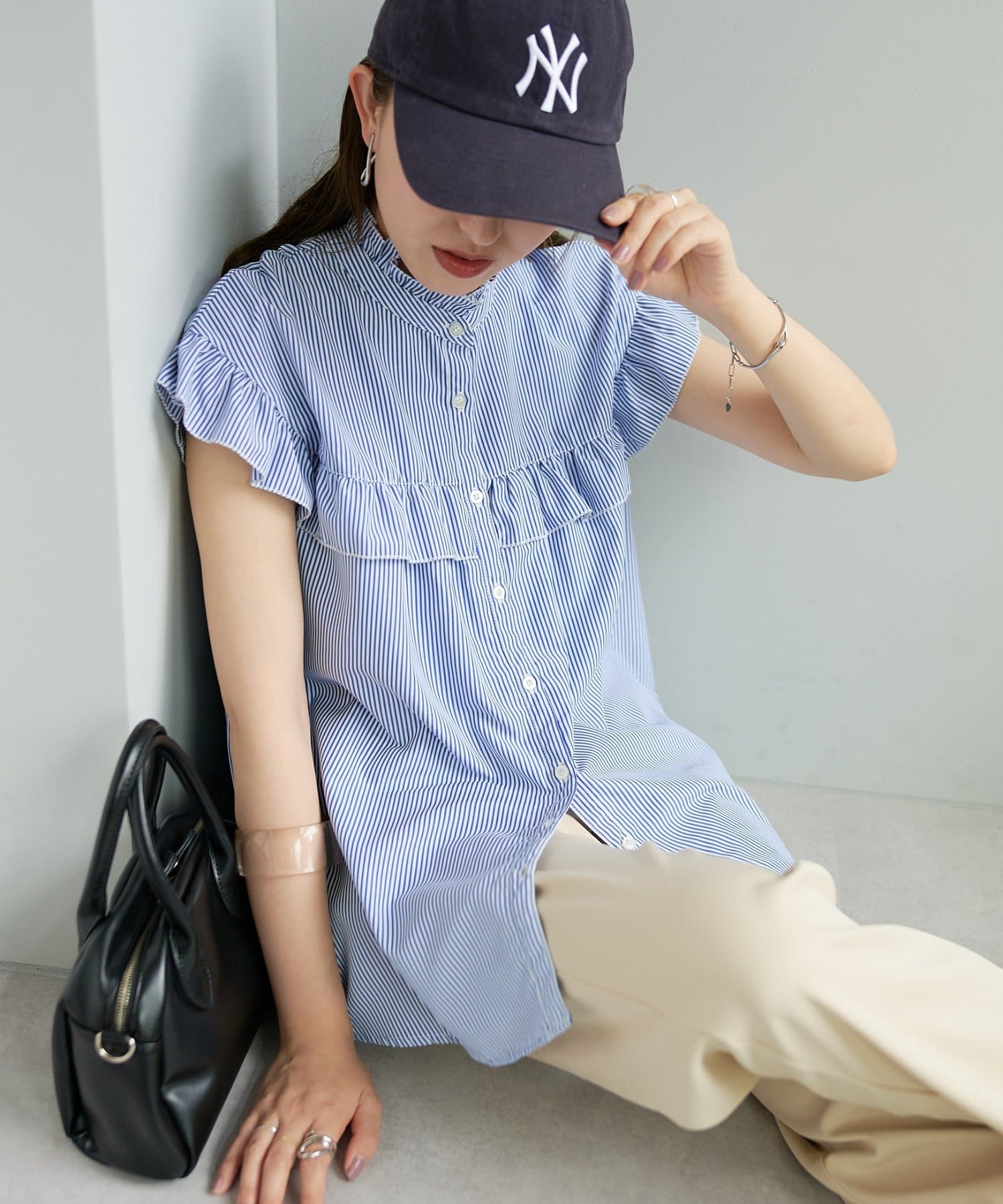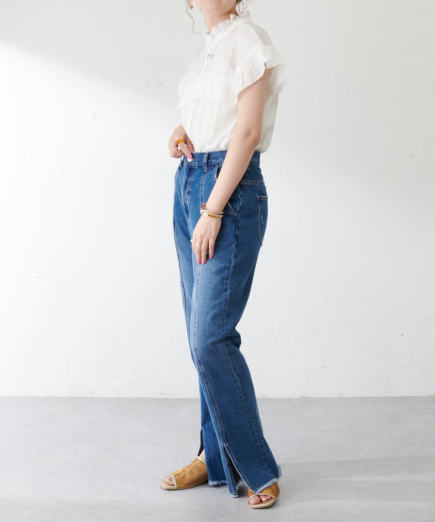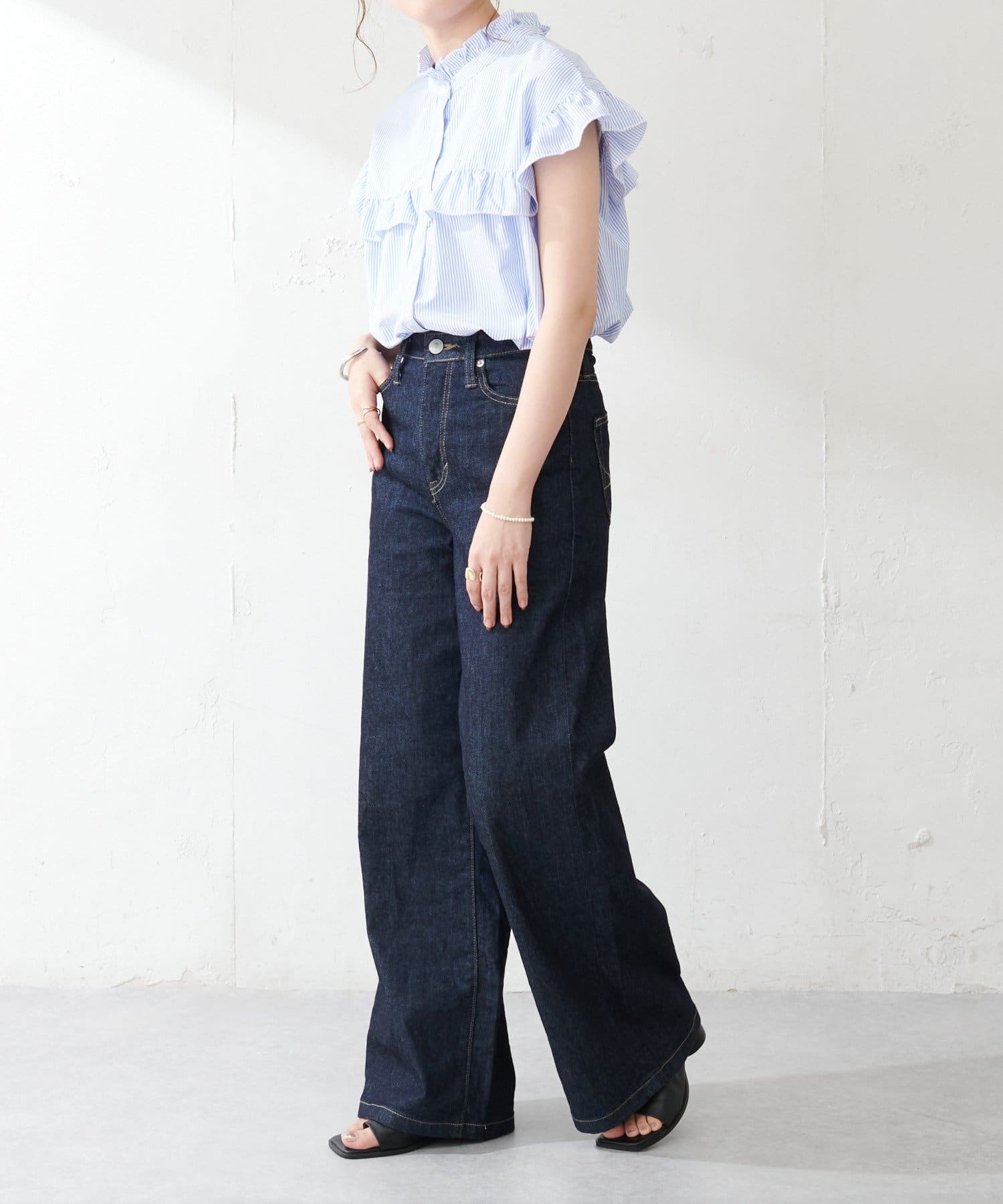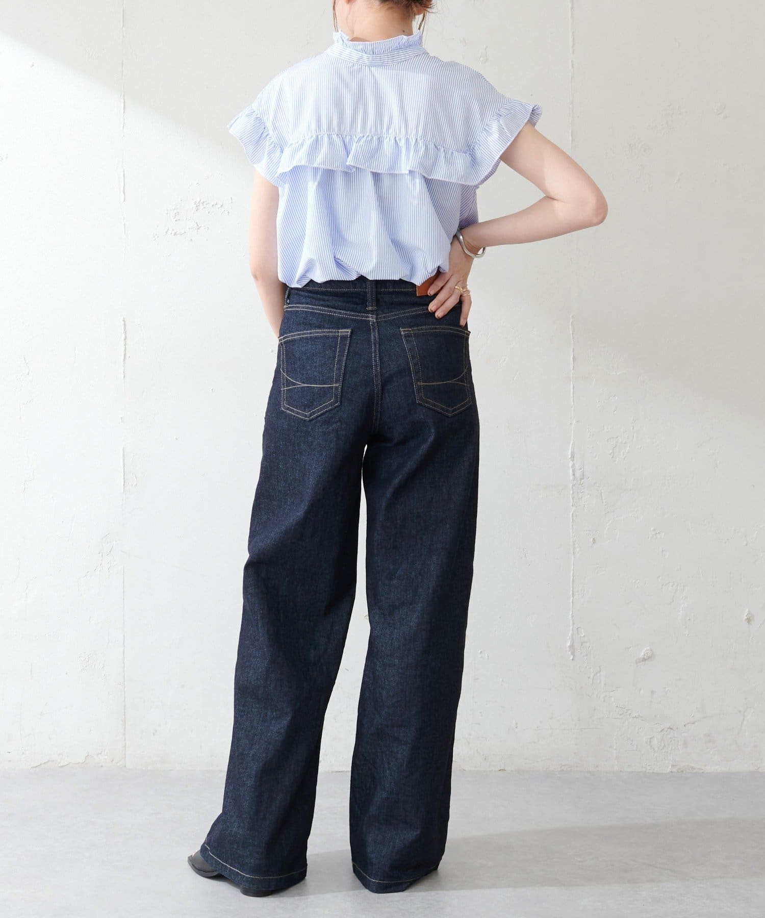 ・ハイウエストボトムスを合わせた定番のタックインスタイルはもちろん、