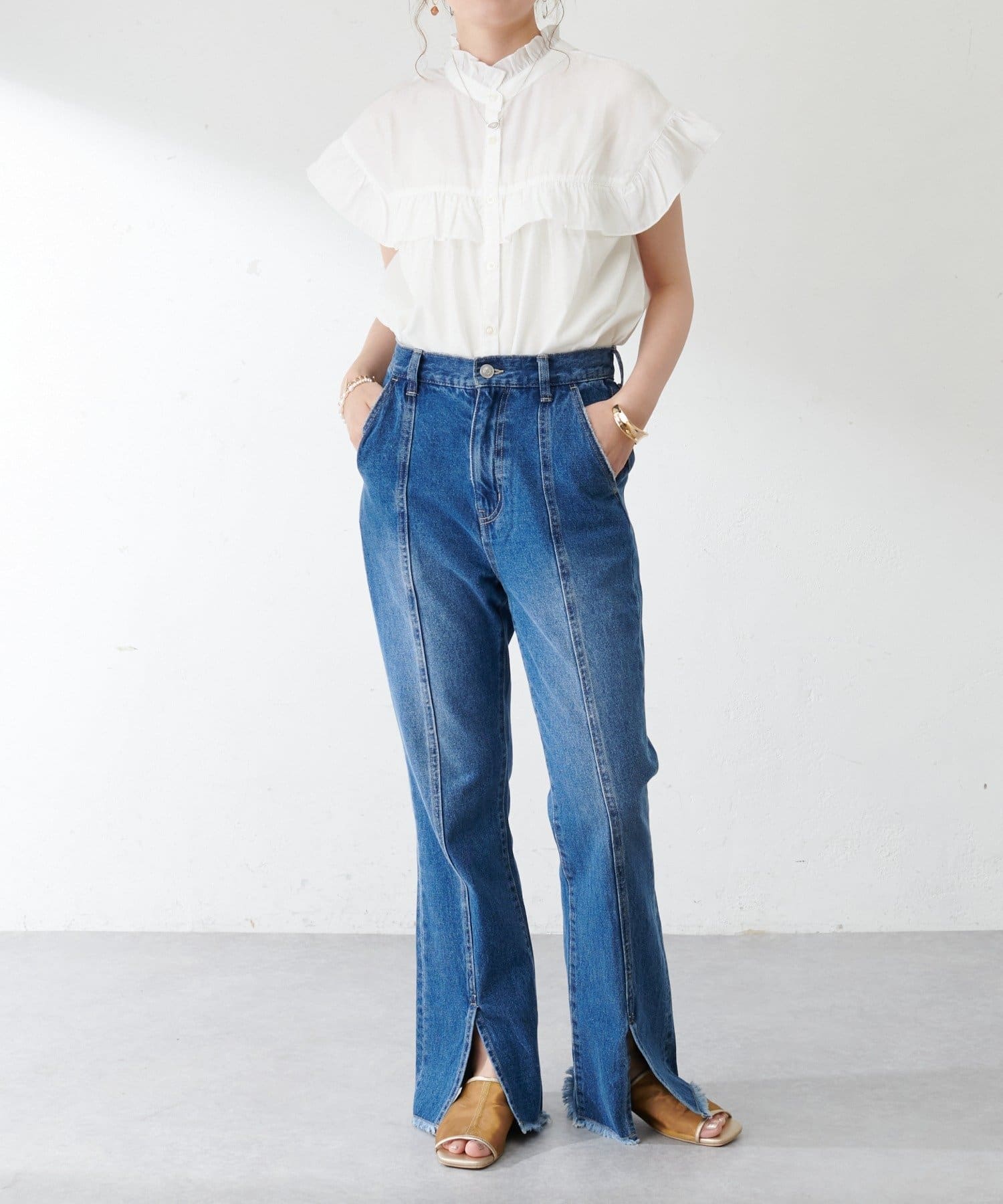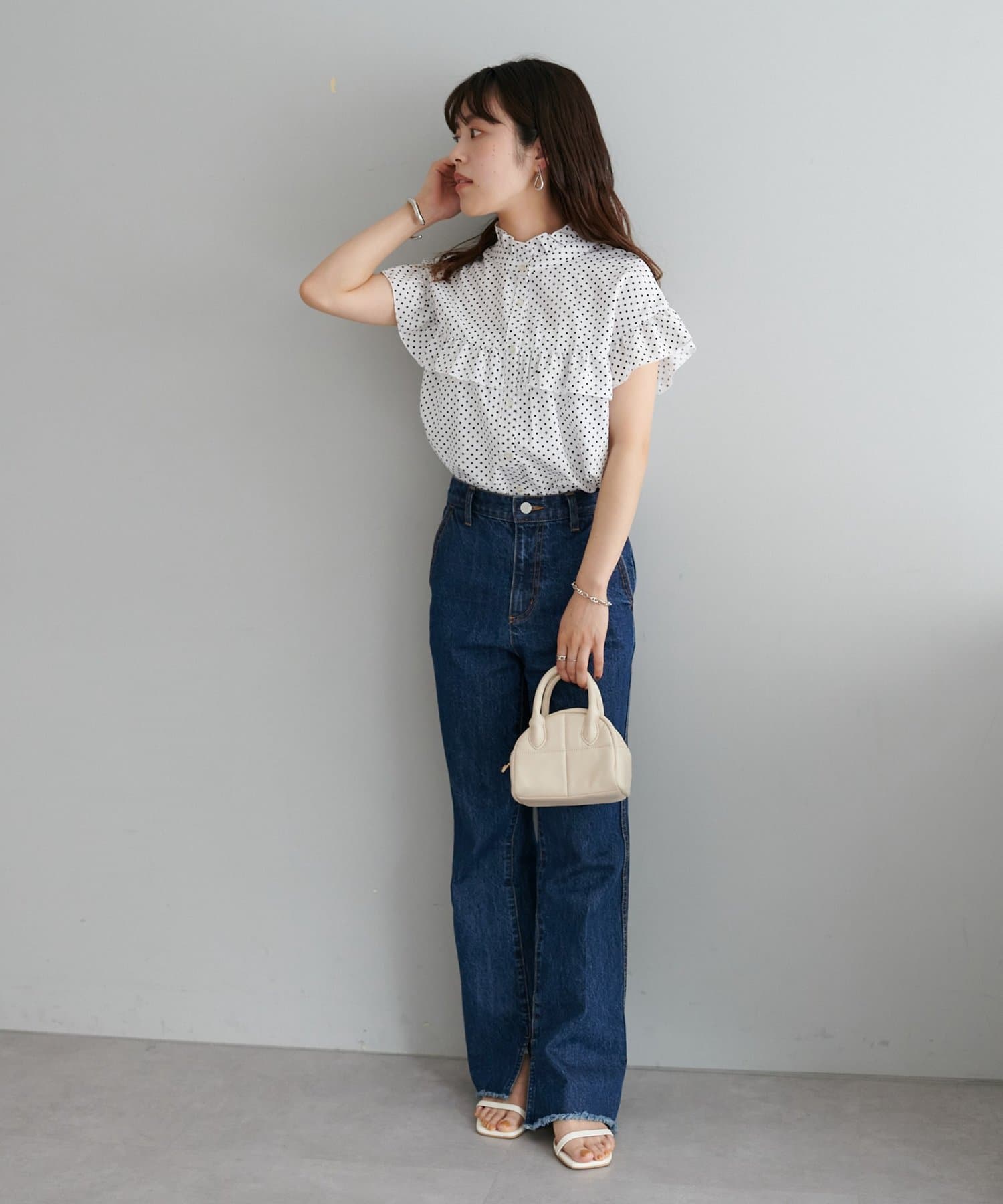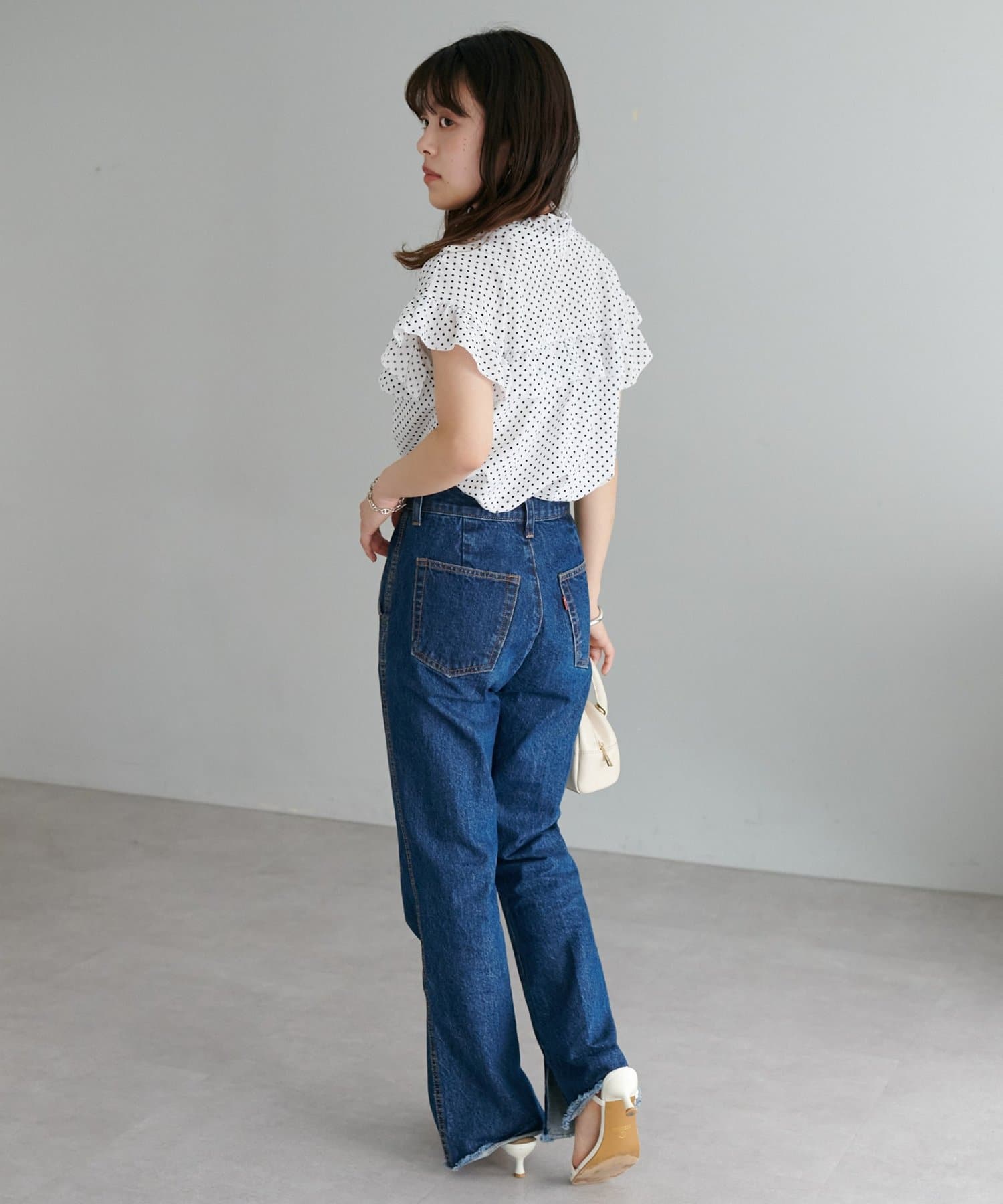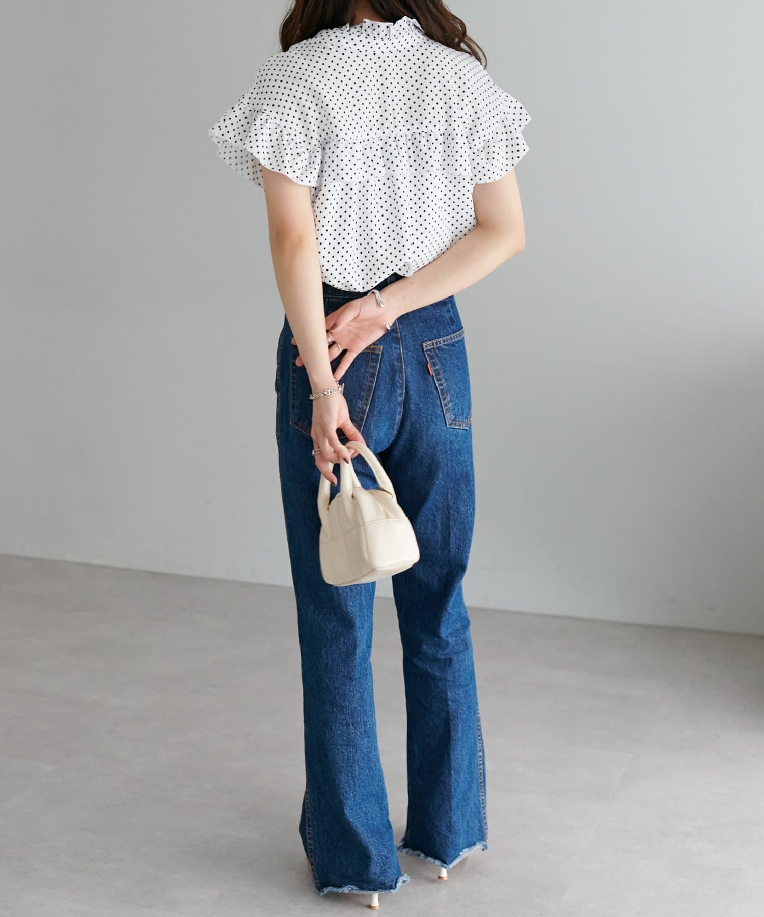 ・ハイウエストボトムスを合わせた定番のタックインスタイルはもちろん、