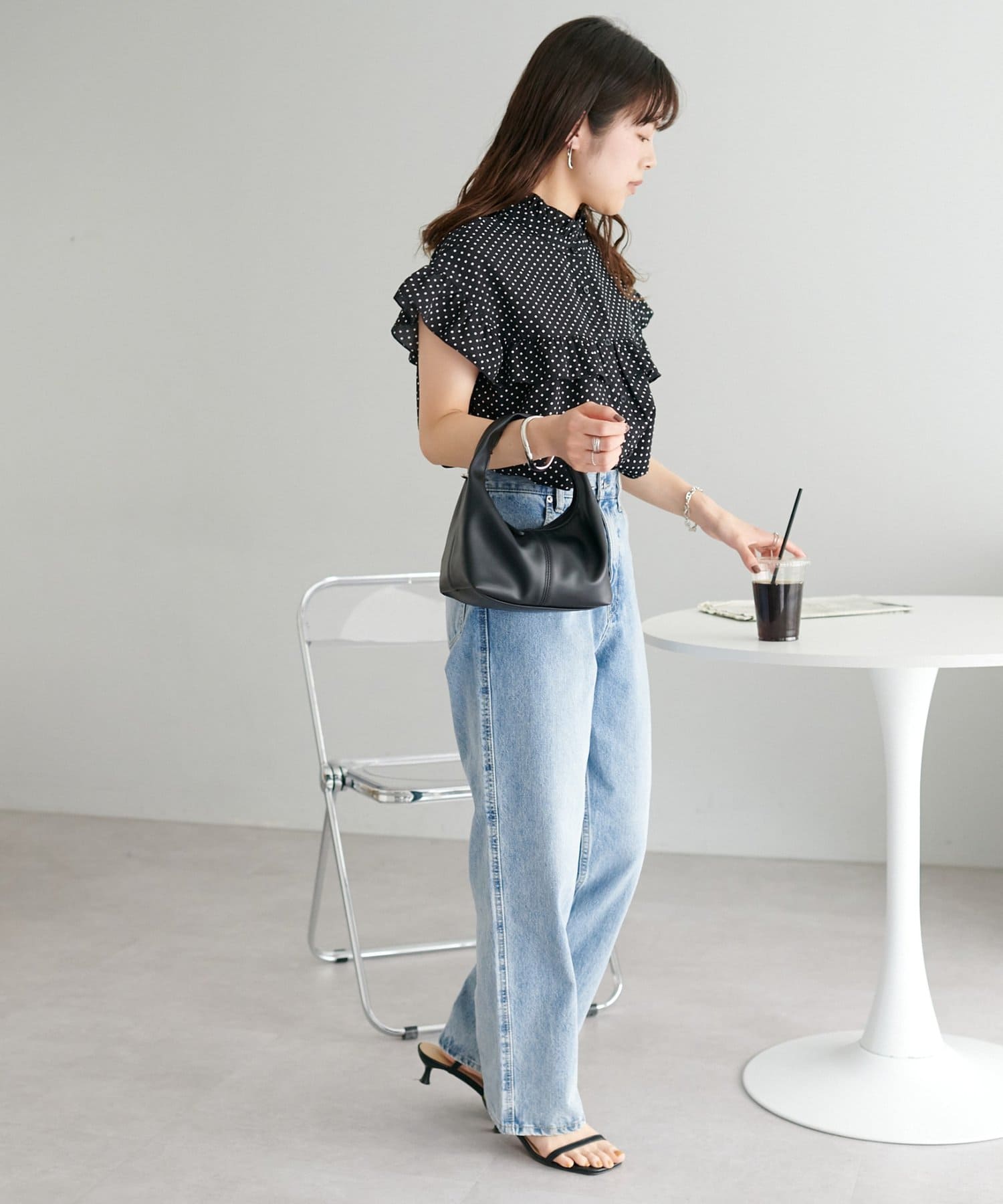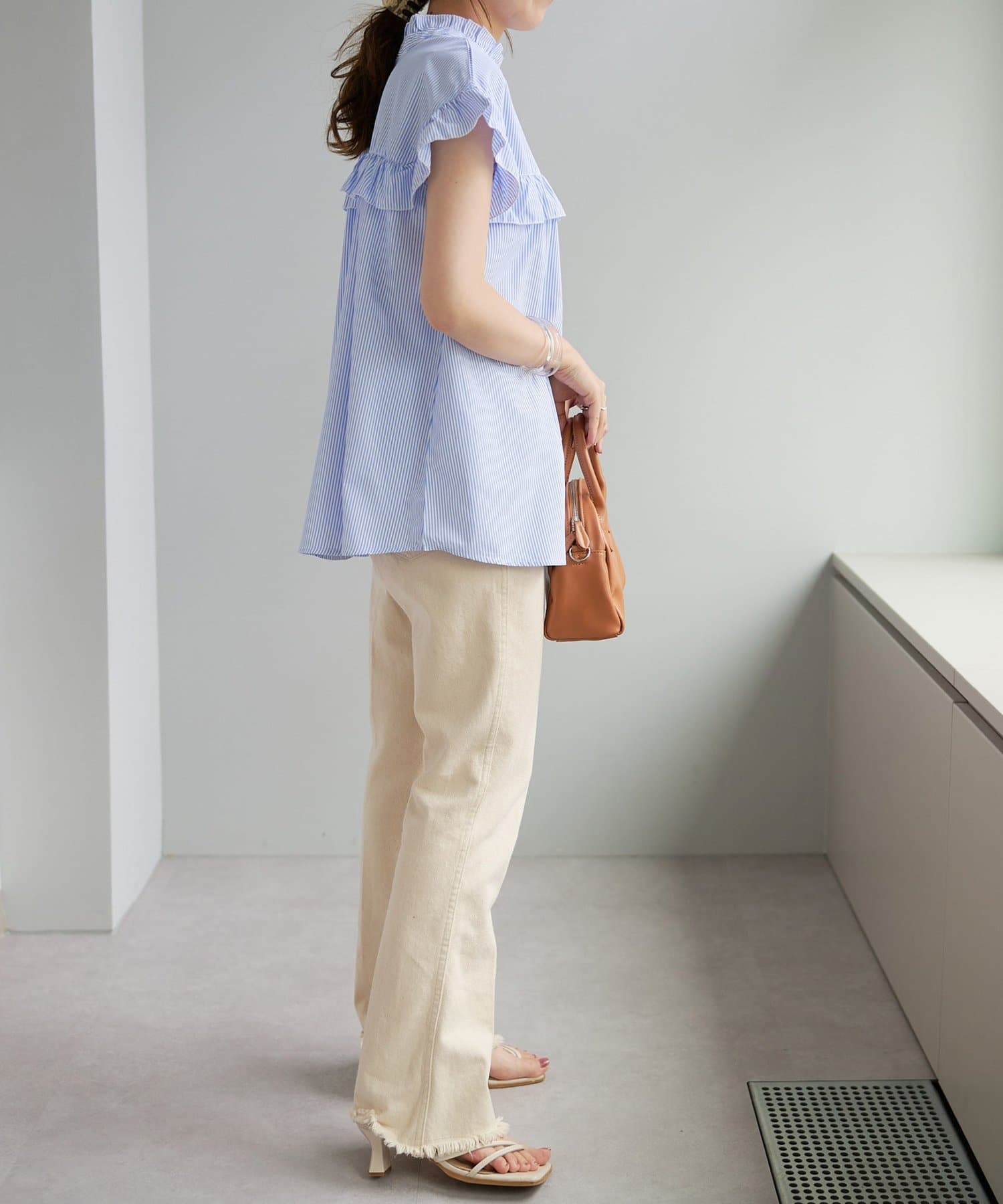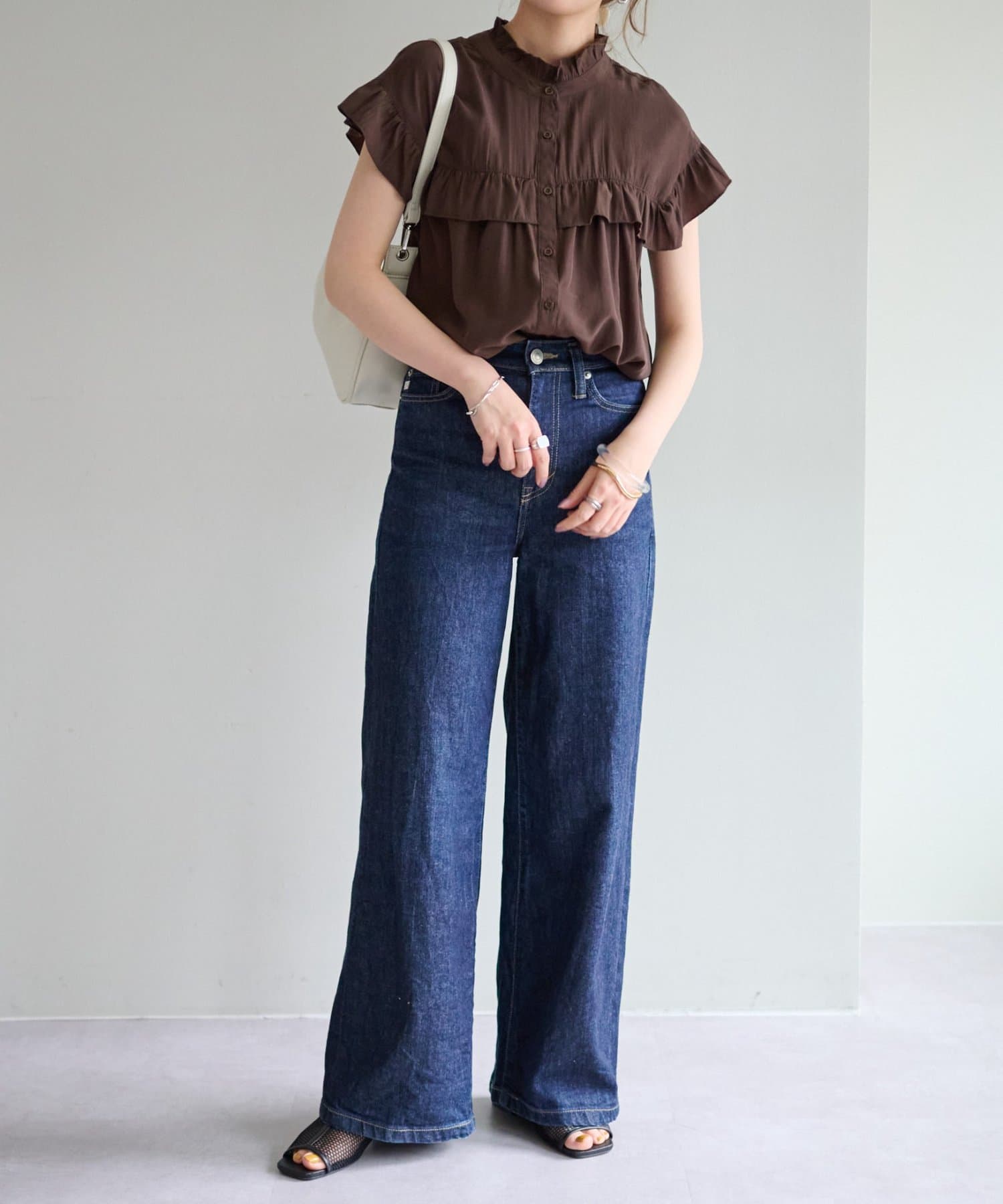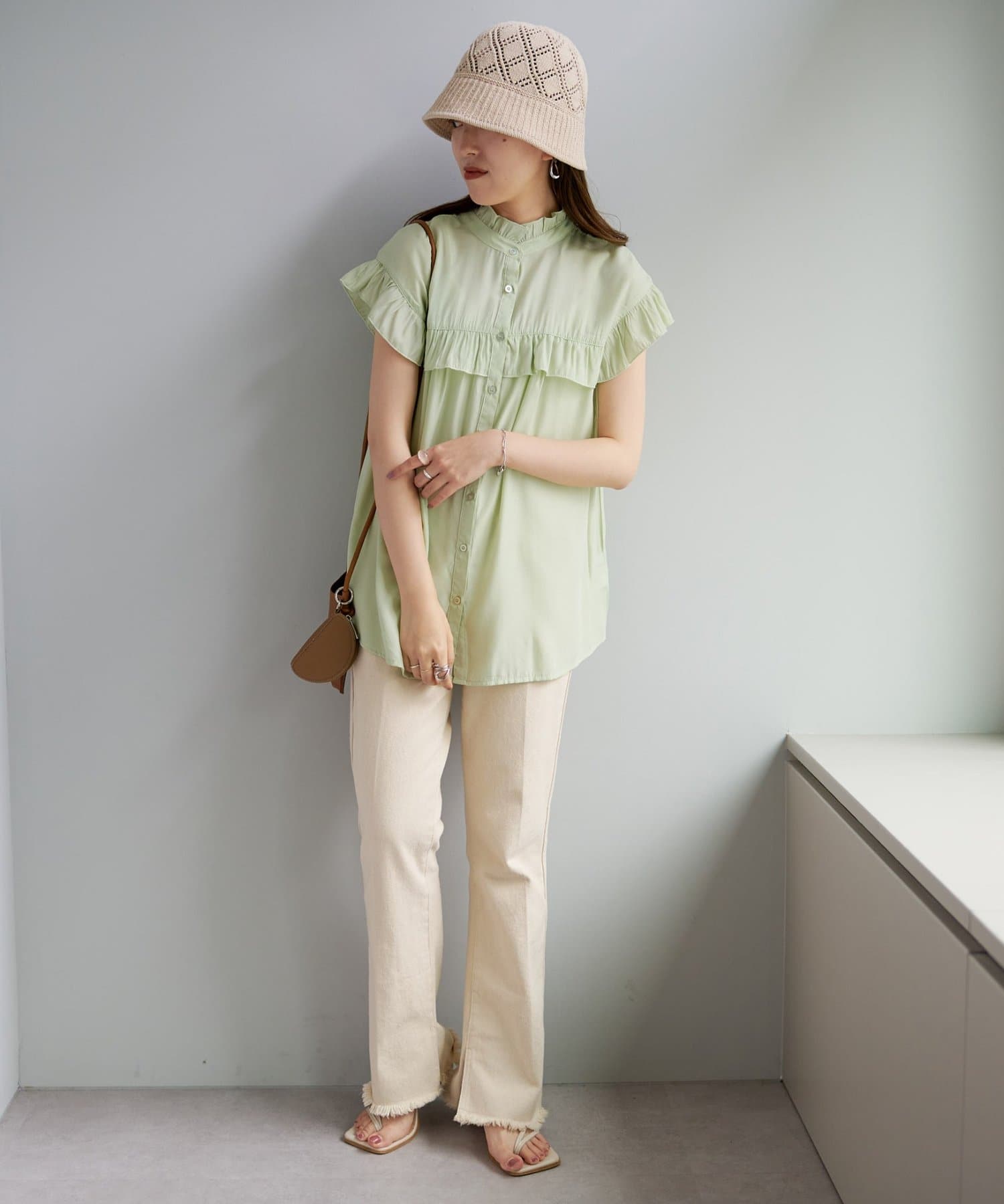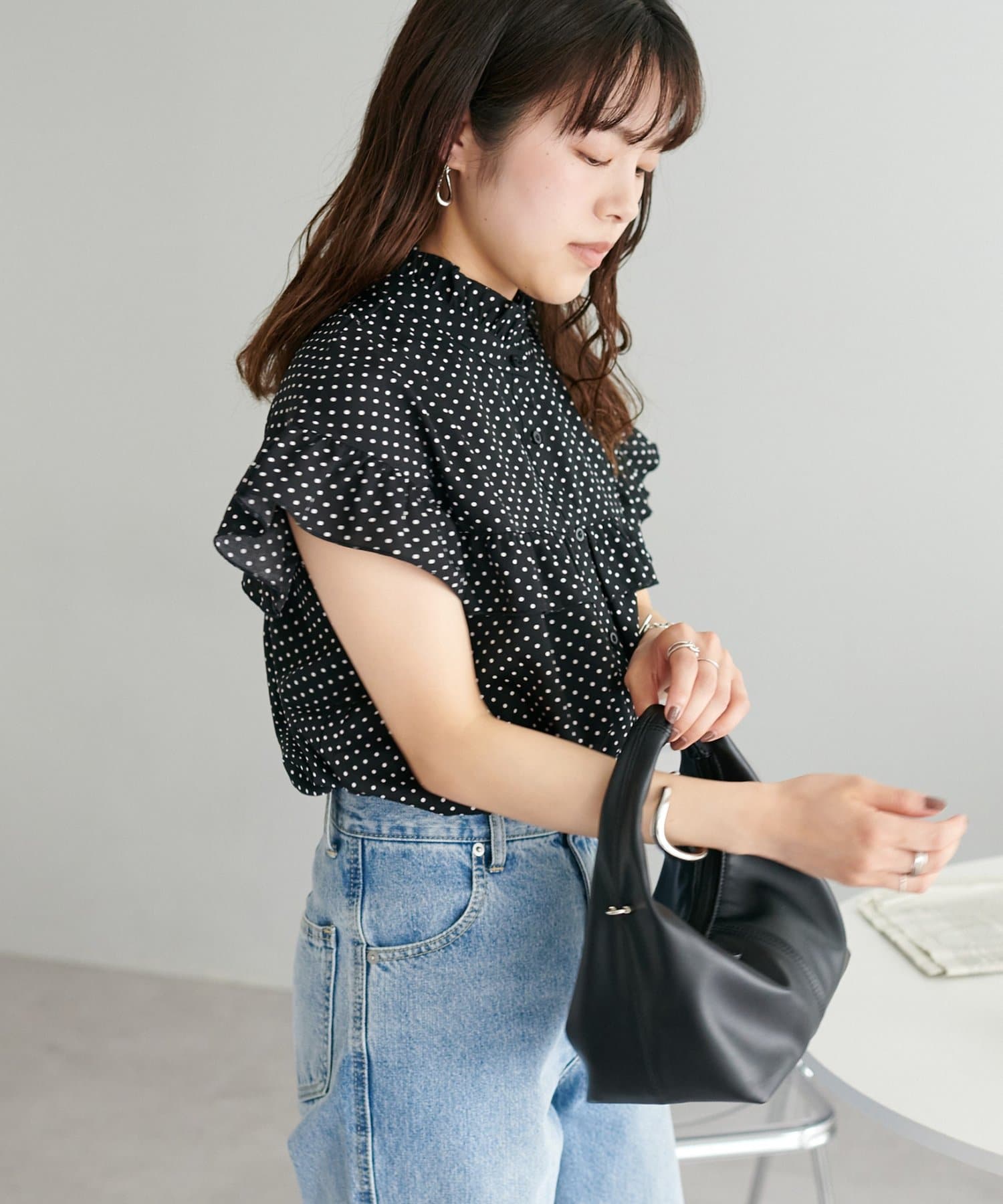 ・ハイウエストボトムスを合わせた定番のタックインスタイルはもちろん、