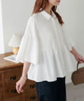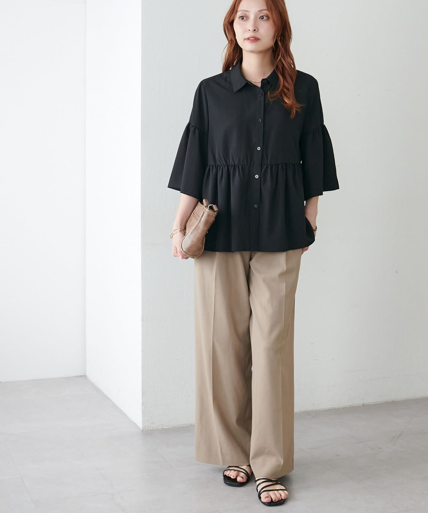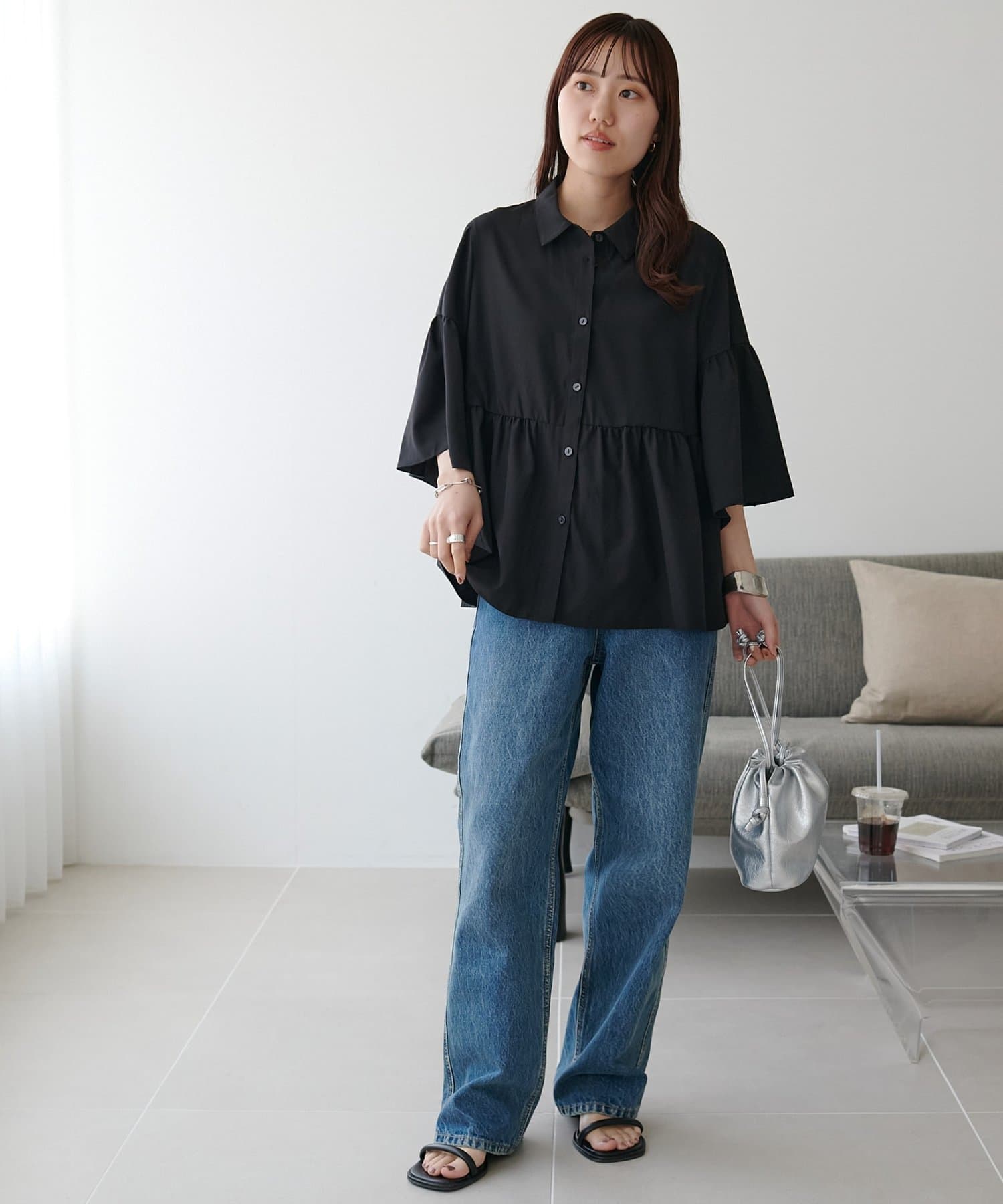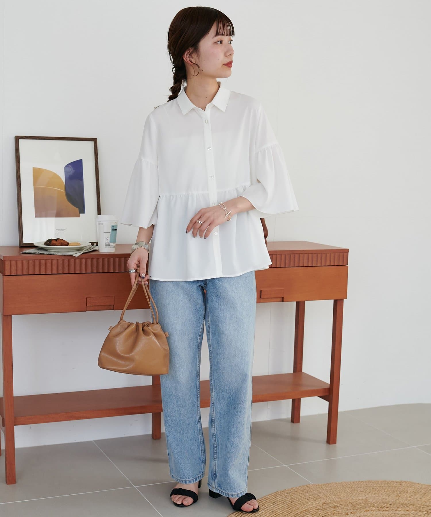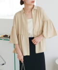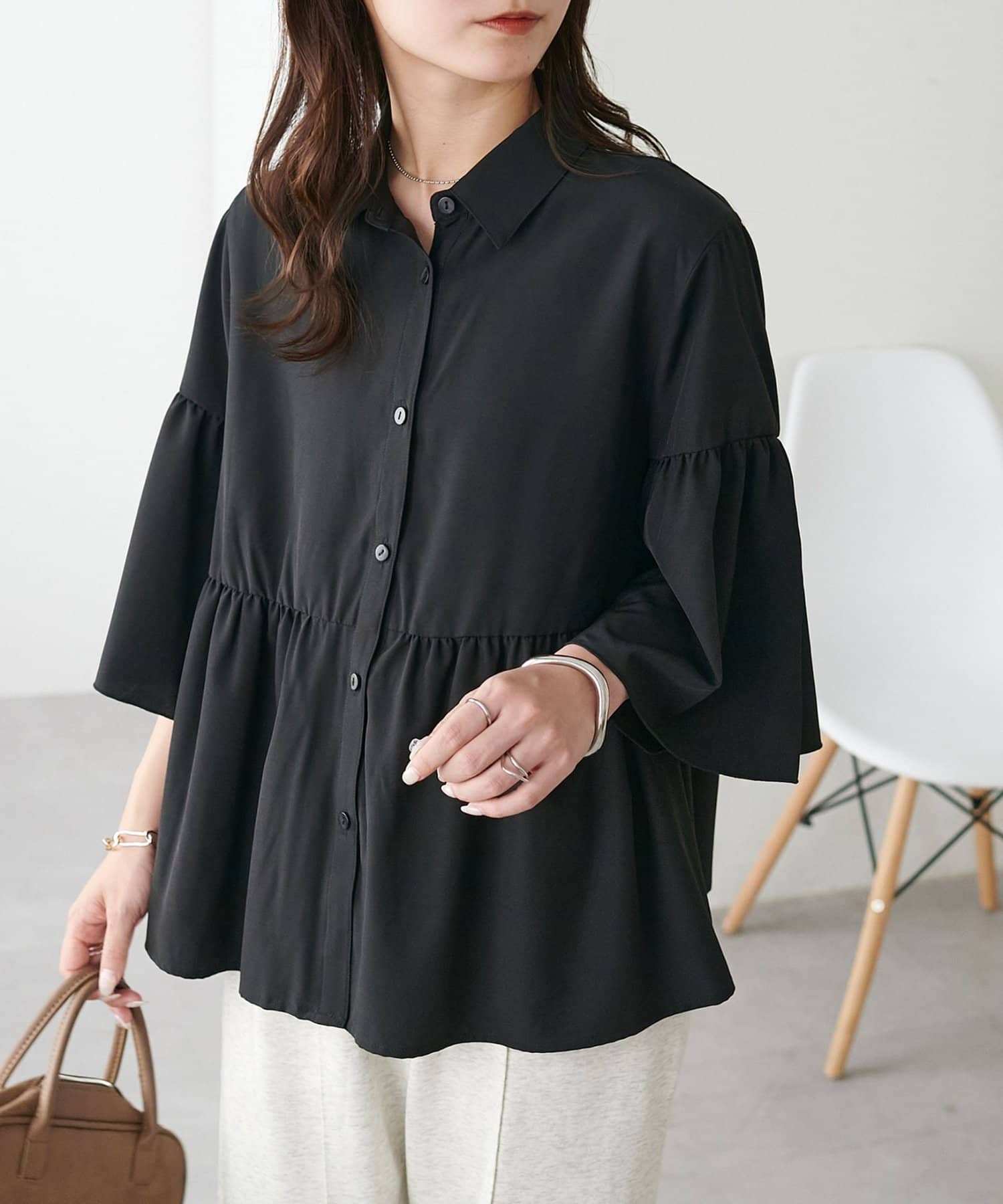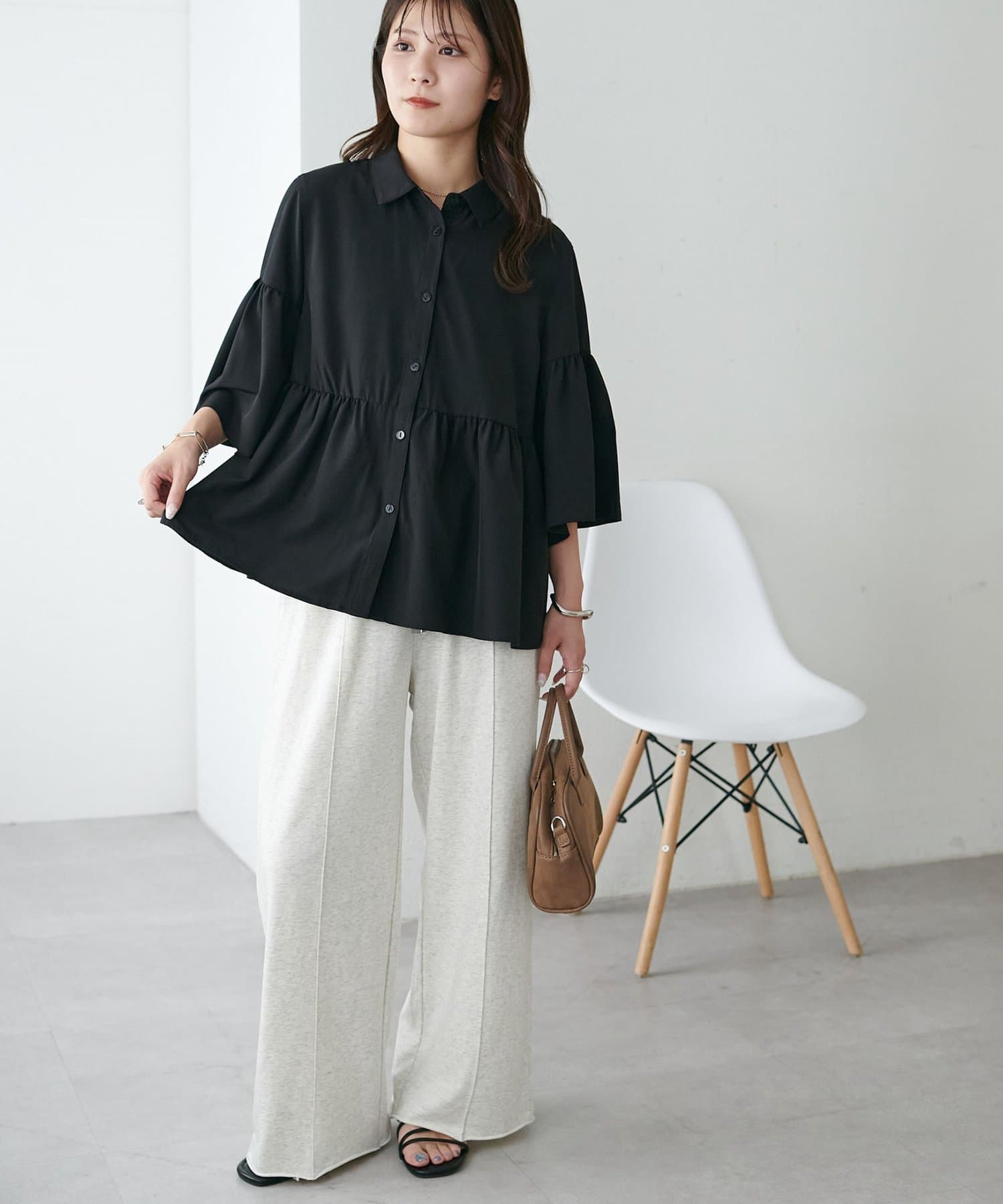 ・ふんわり広がるフレア袖と、軽やかなティアードデザインが特徴のシャツ