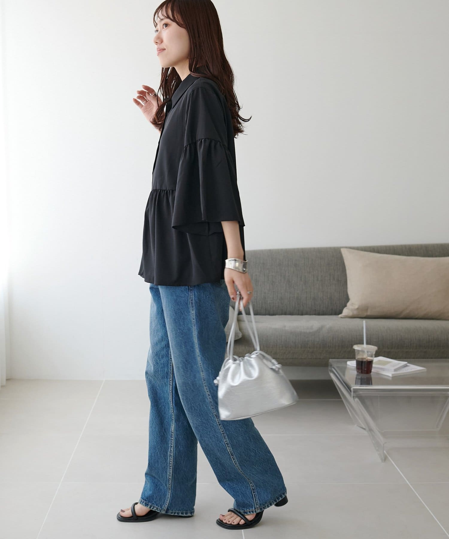 149cmスタッフ:袖のフレアが女性らしく華やかで、一枚でコーデの主役になるシャツです!