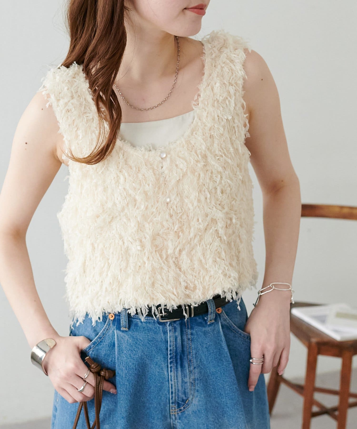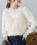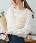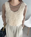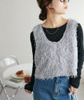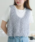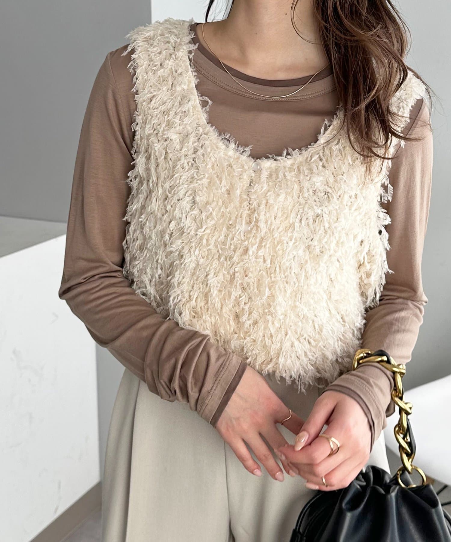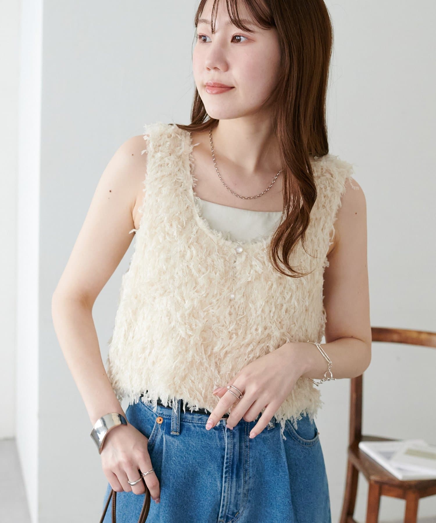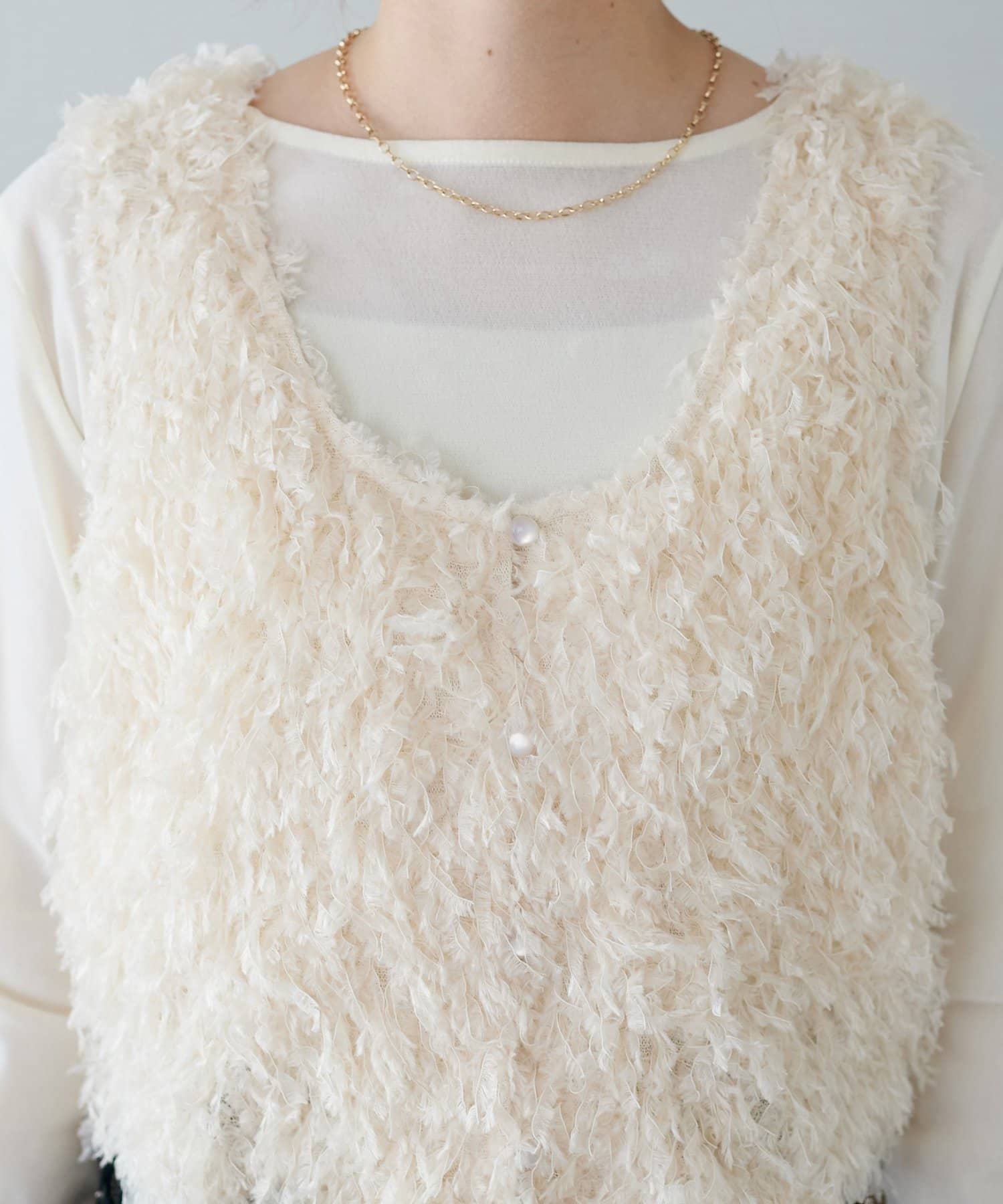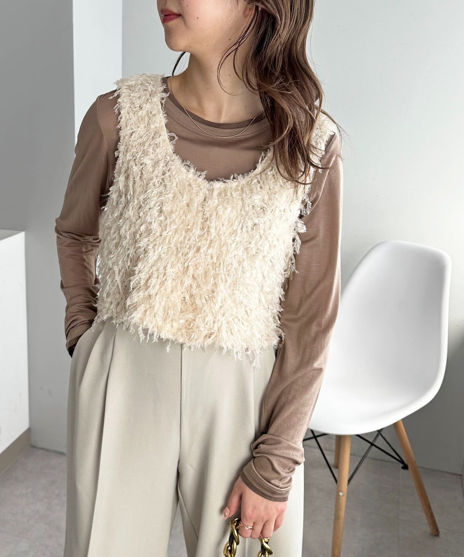 ・華やかで表面感のあるトレンド感の高いフリンジ素材のベスト
