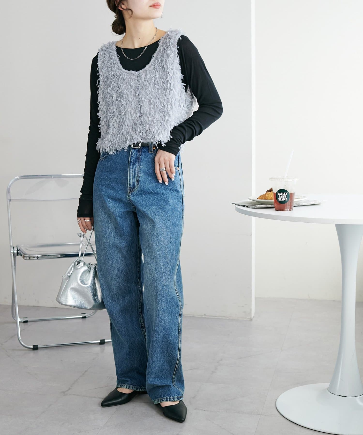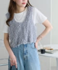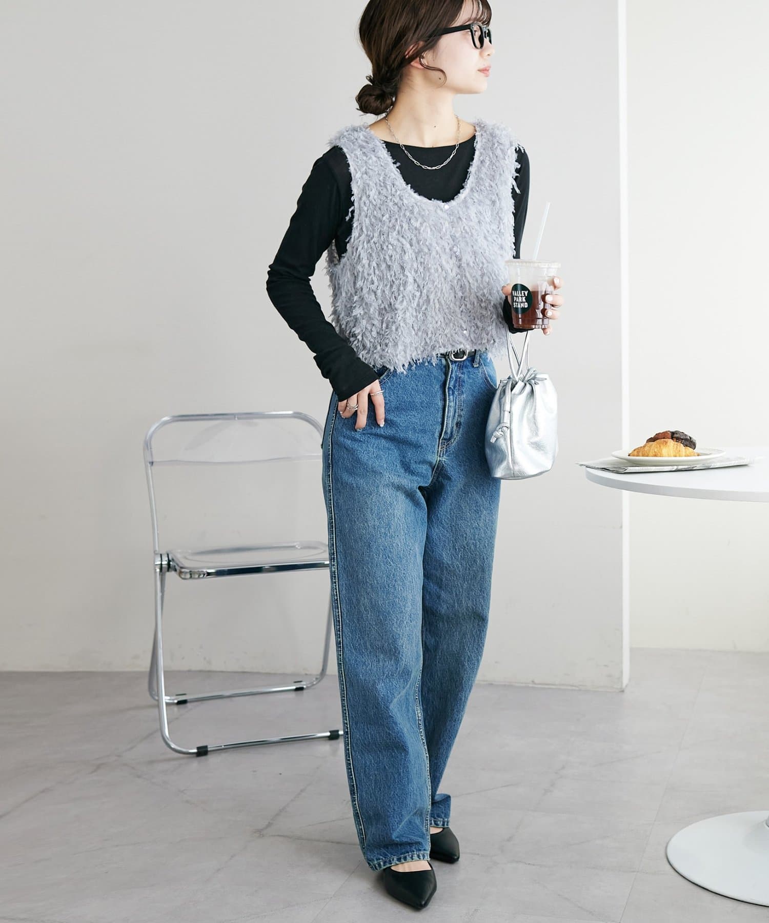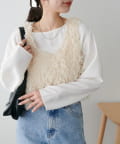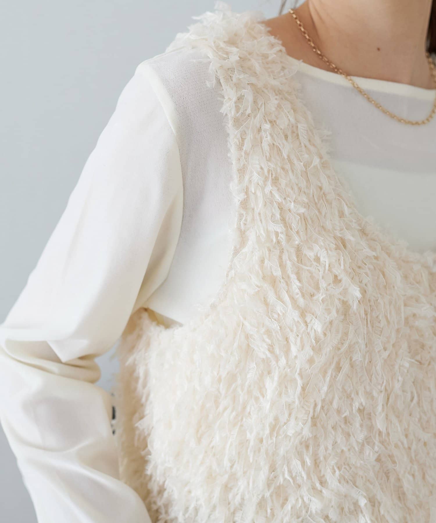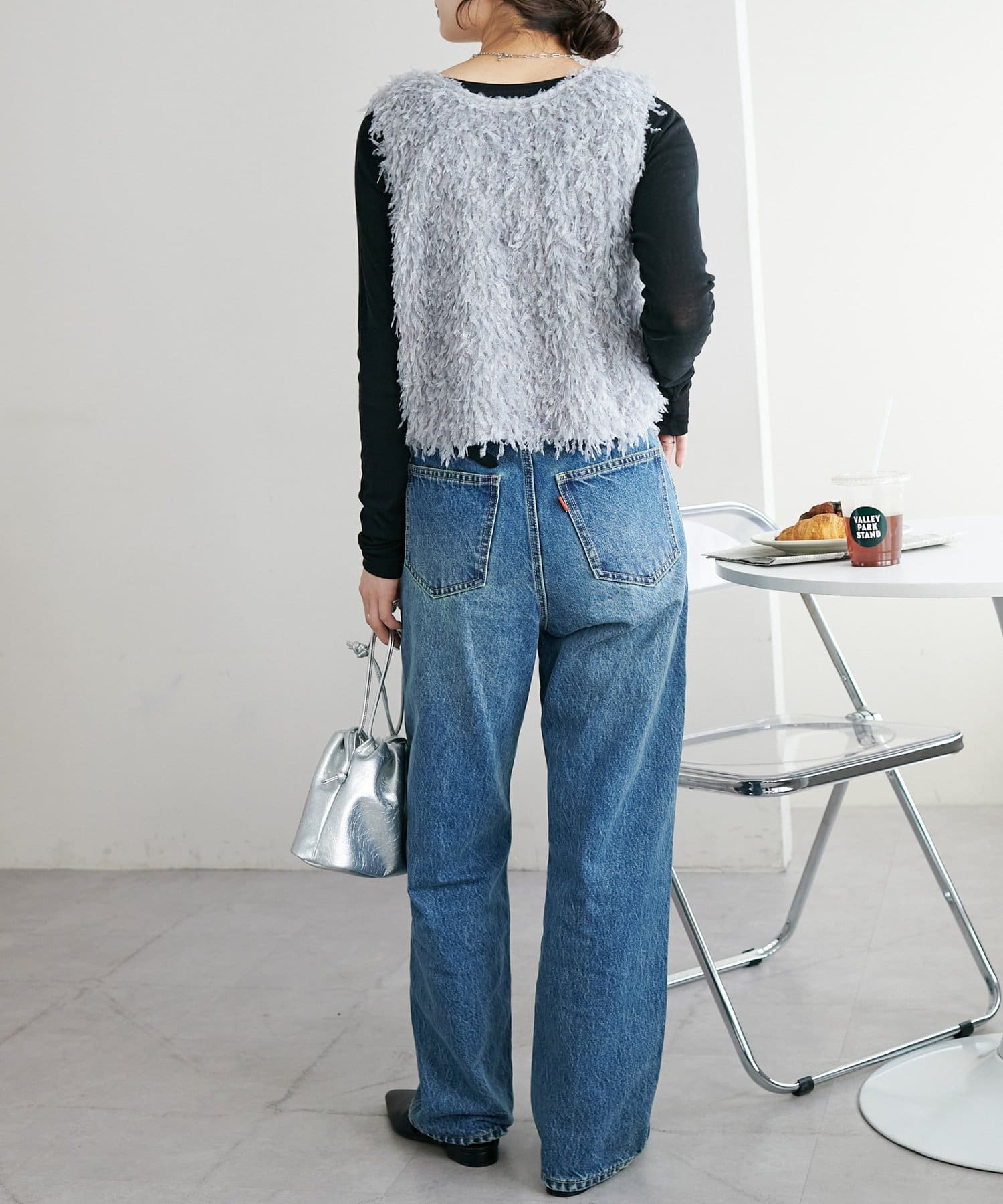 ・華やかで表面感のあるトレンド感の高いフリンジ素材のベスト