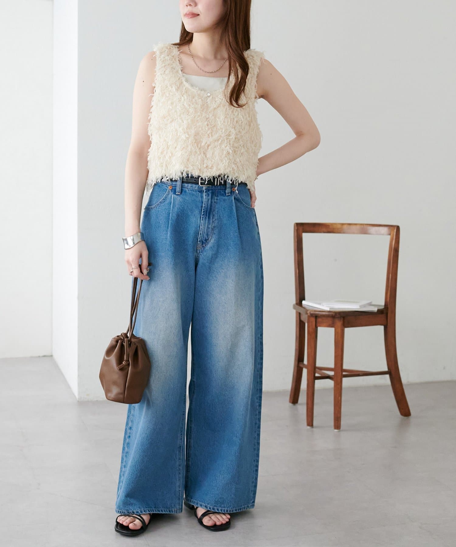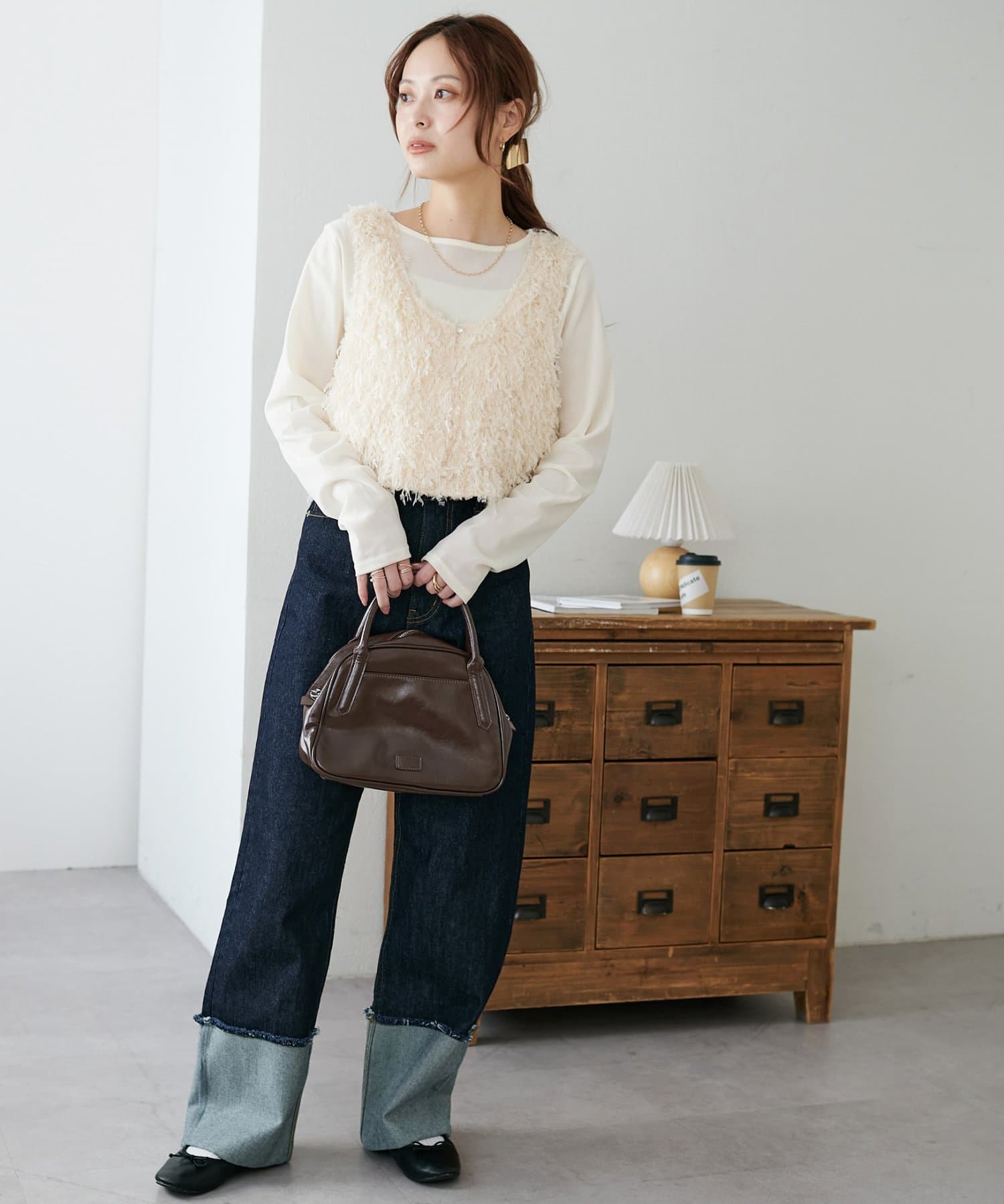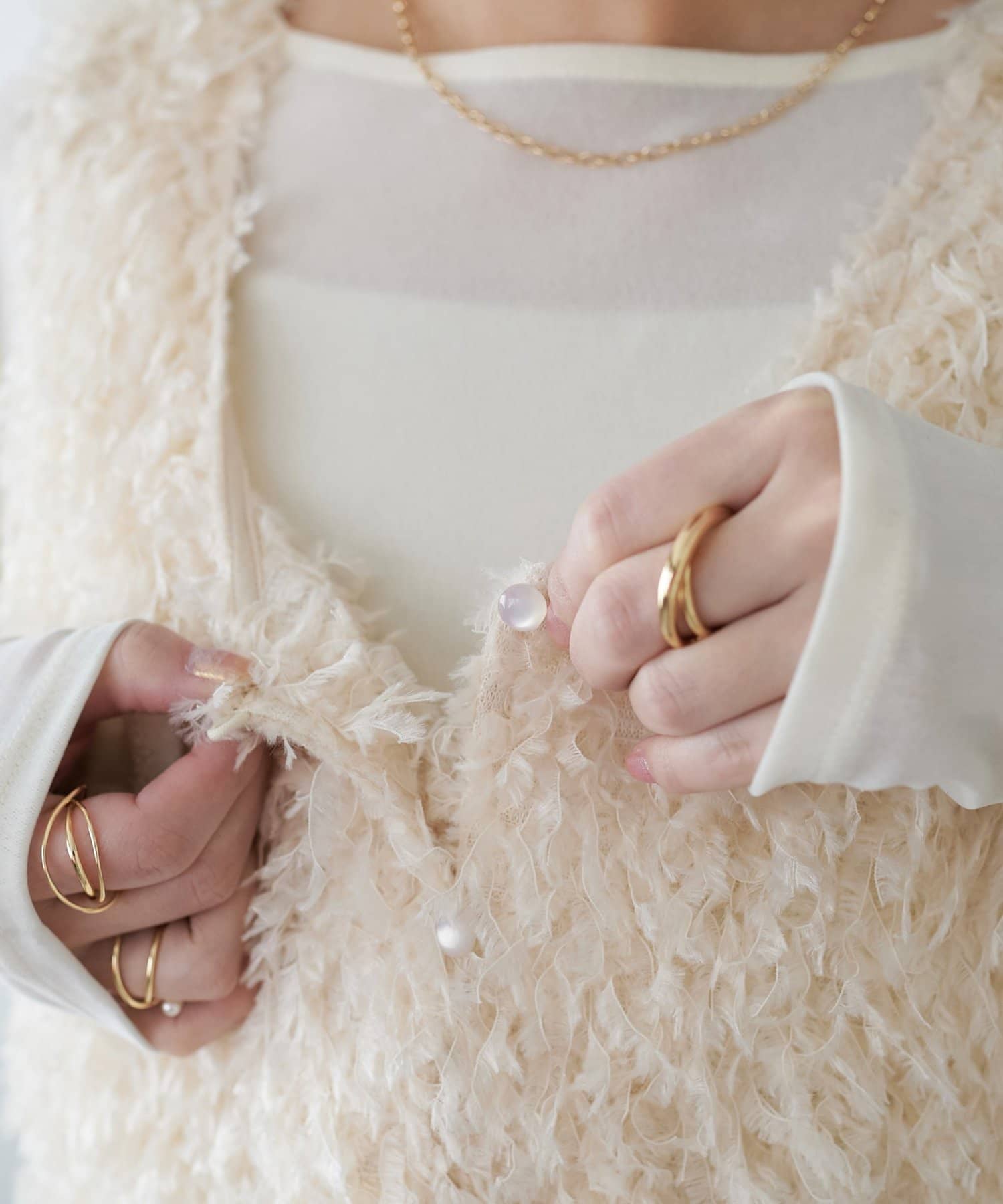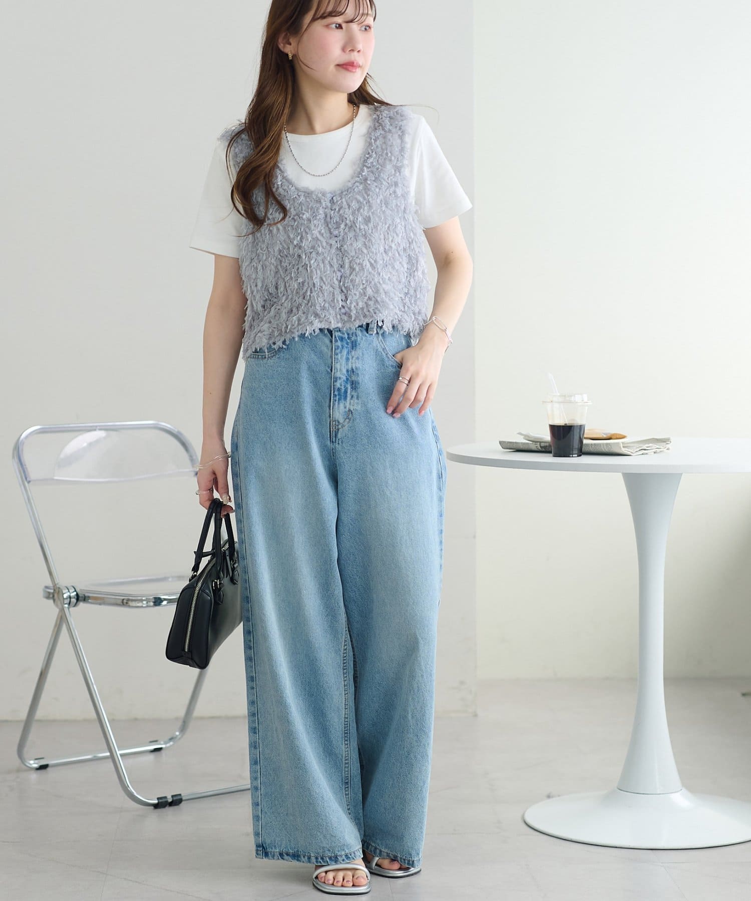 ・華やかで表面感のあるトレンド感の高いフリンジ素材のベスト