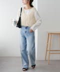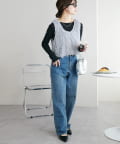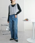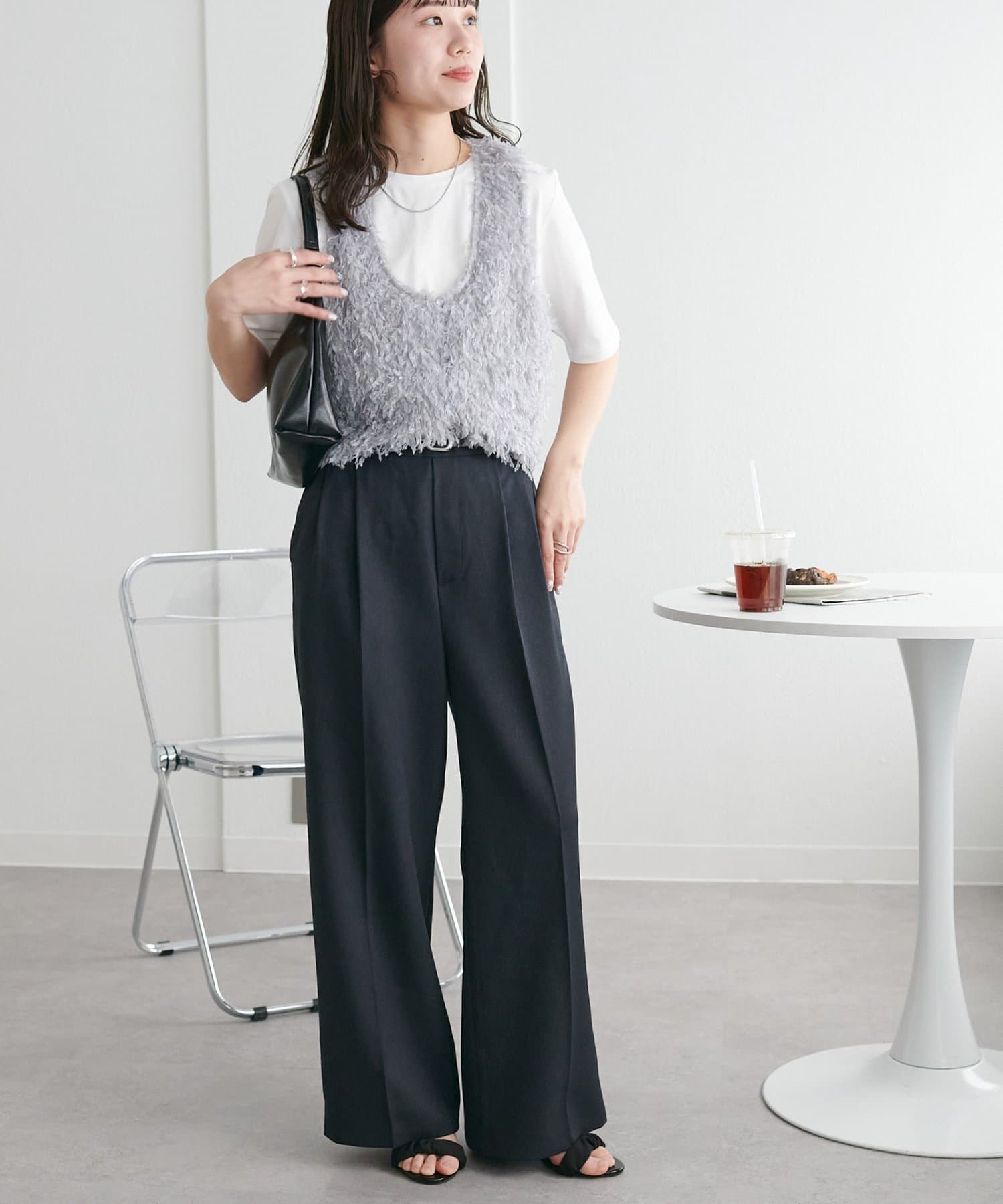 シンプルなトップスに合わせるだけで、コーデが決まるベスト。