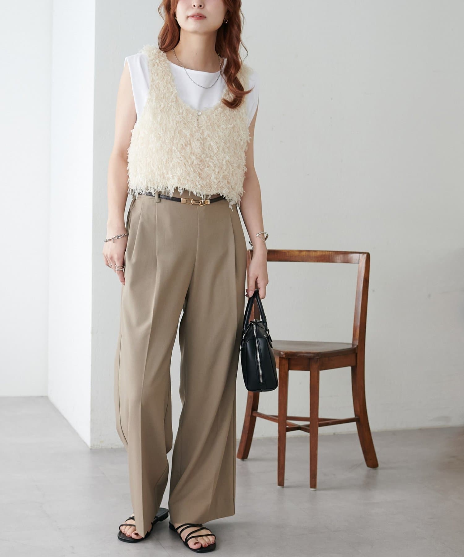 ・こちらの商品は、生地の特性上、着用の際に合わせたものに繊維が付着する可能性がございます。同色のアイテムと合わせての着用をおすすめいたします。
