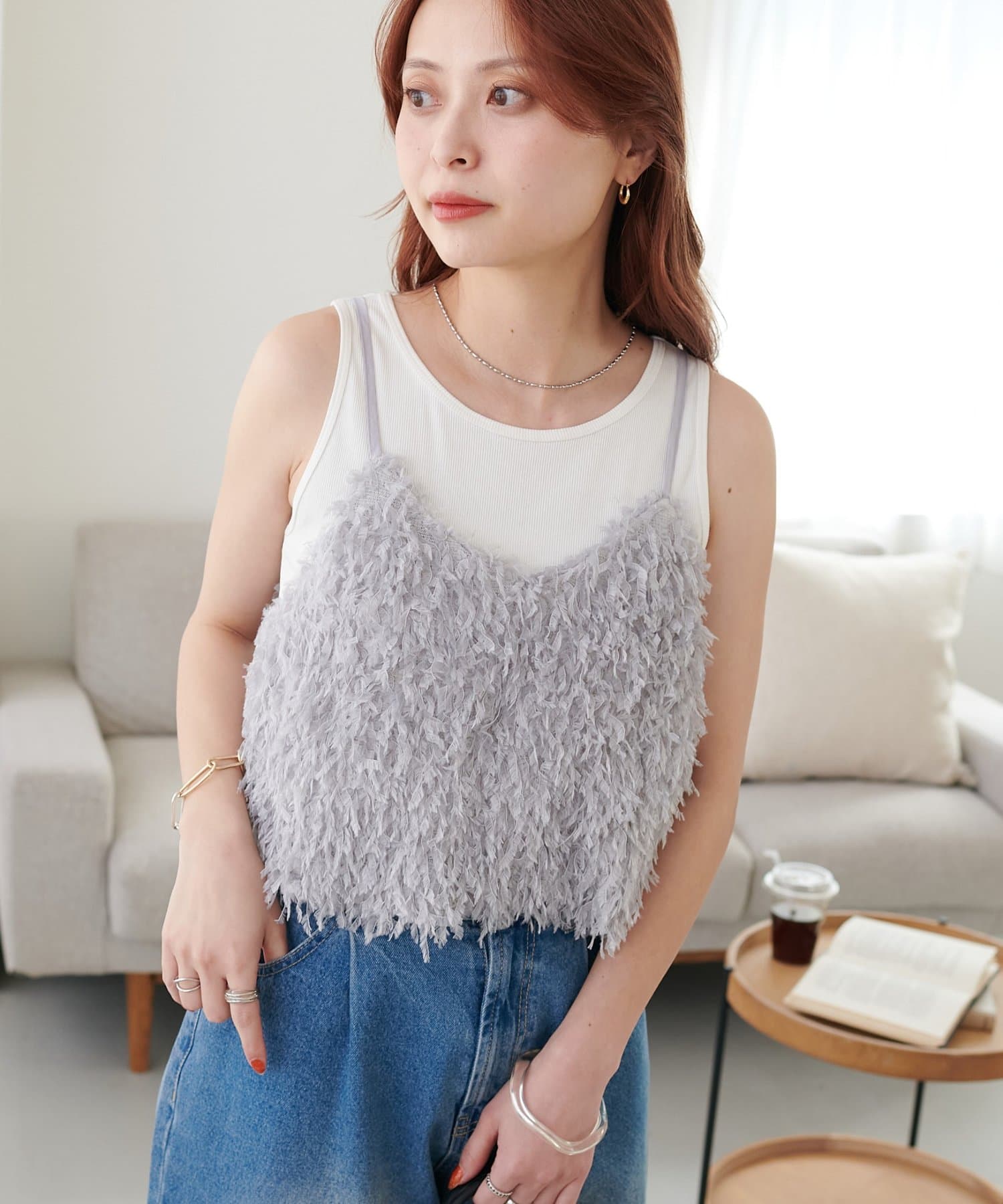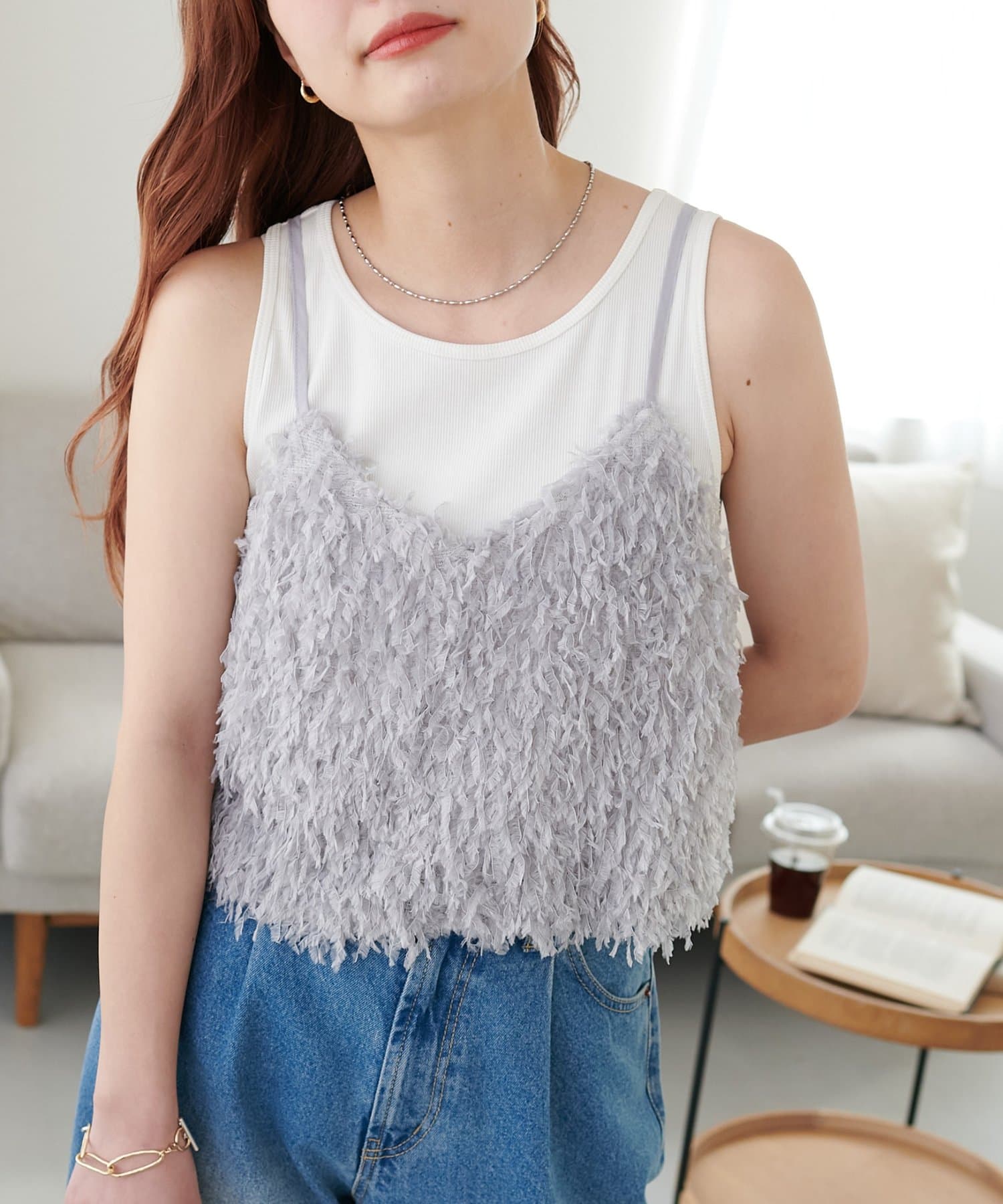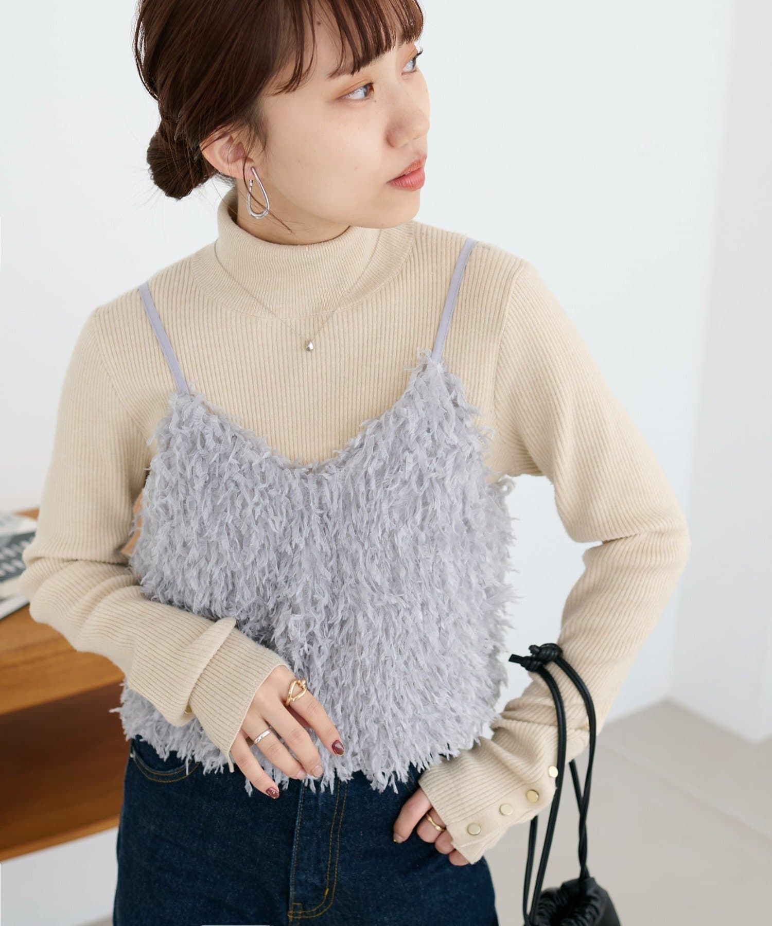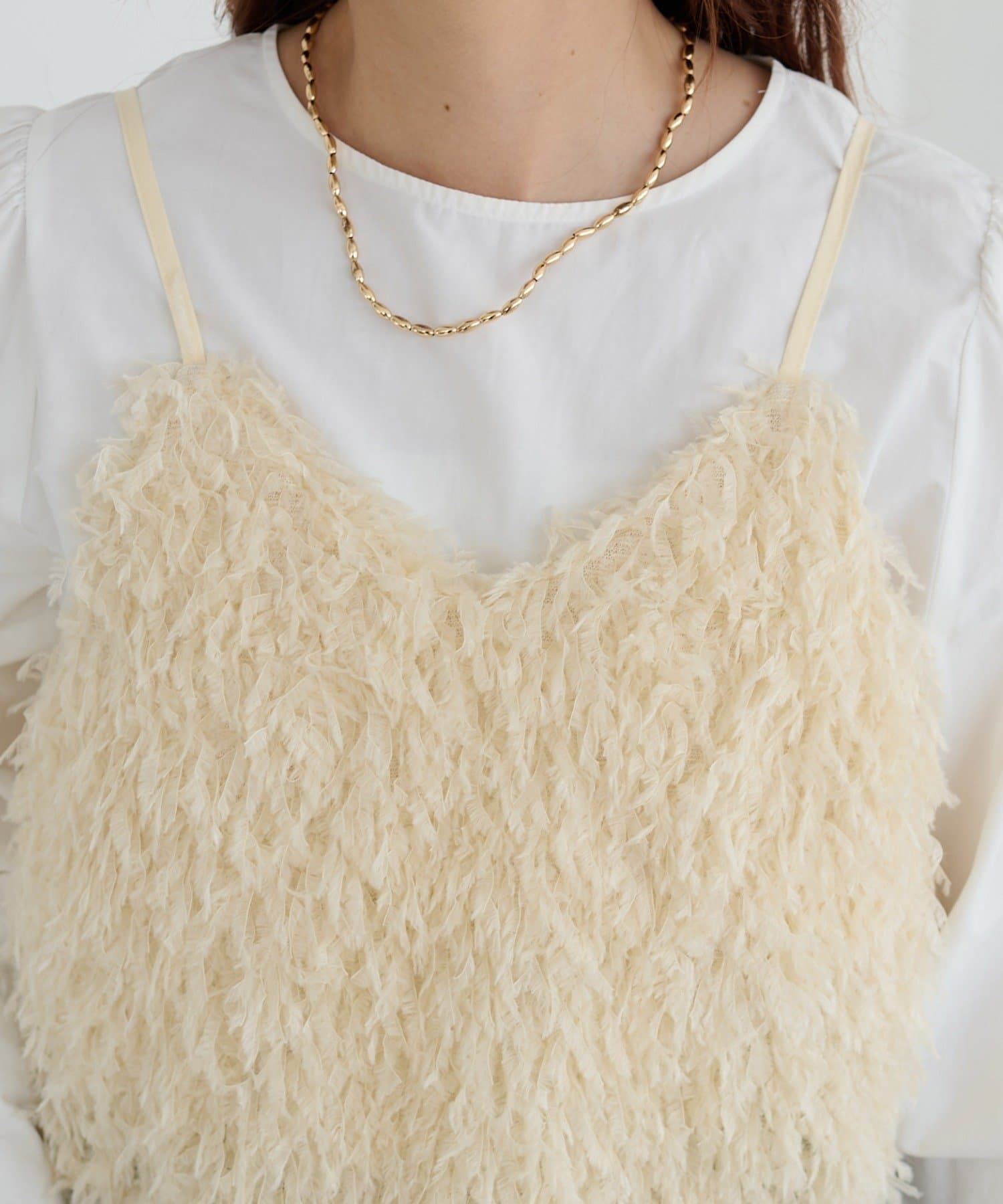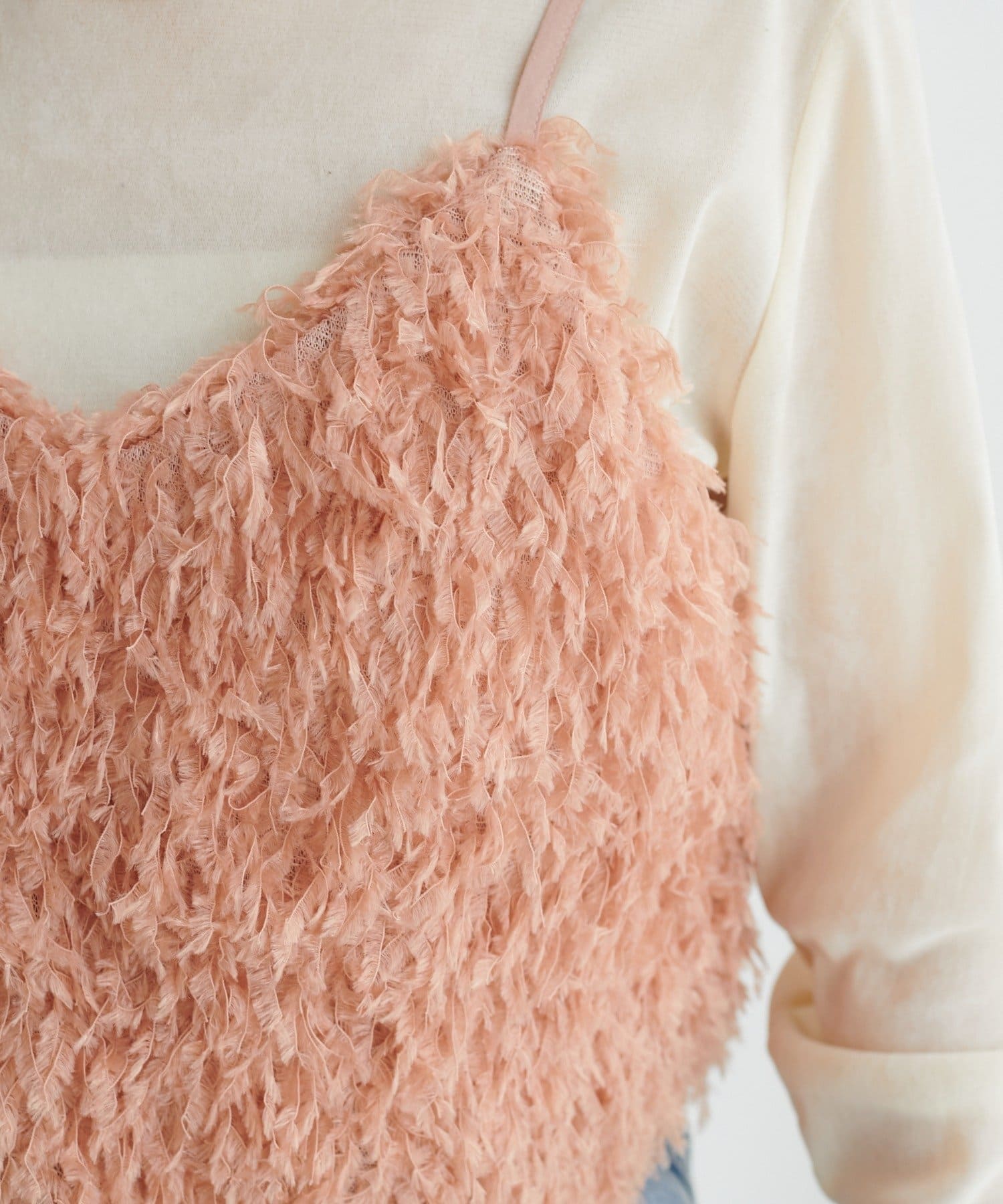 ・羽のようにふわっとした素材で程よくボリュームのある存在感抜群のテープヤーンキャミ。