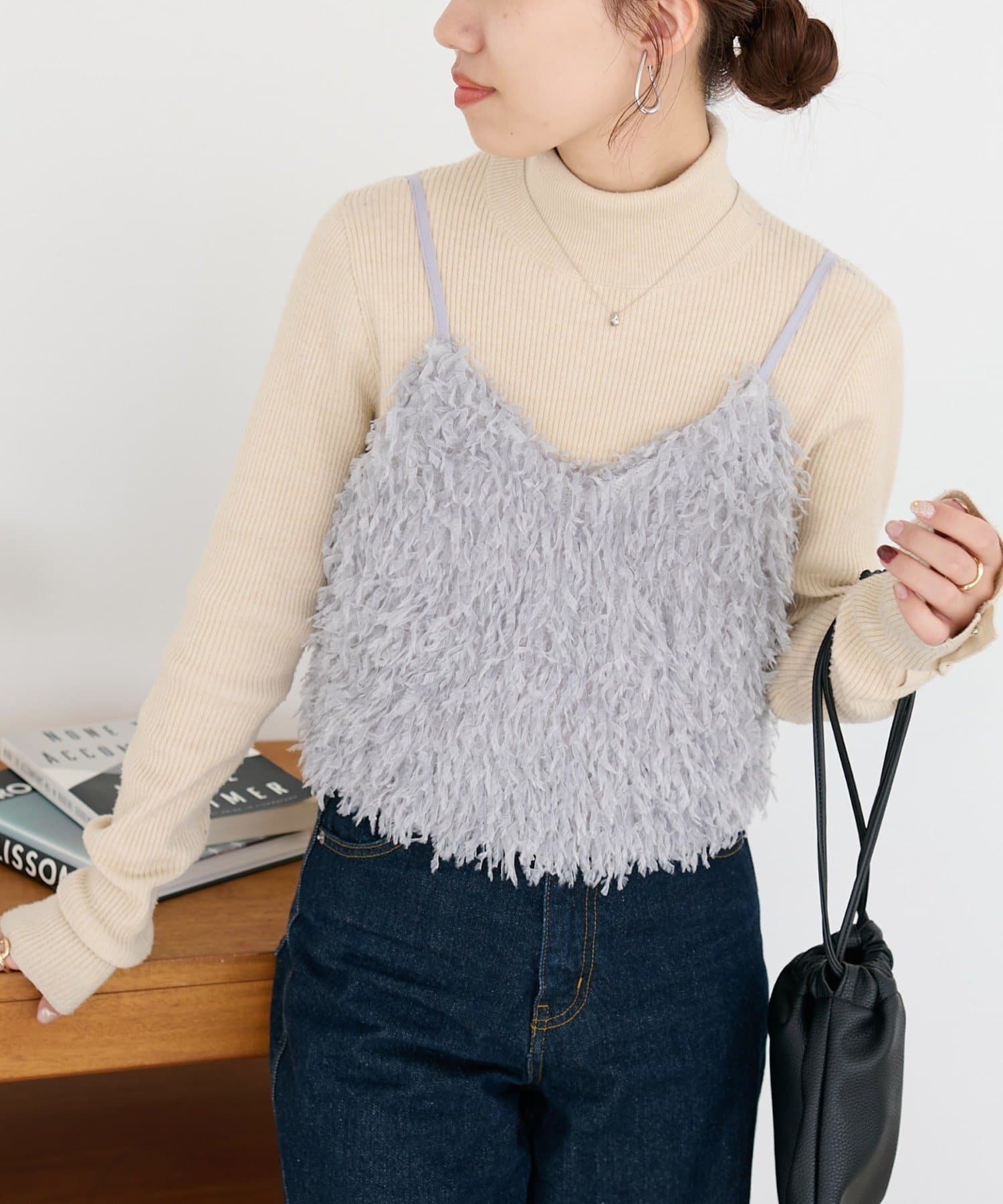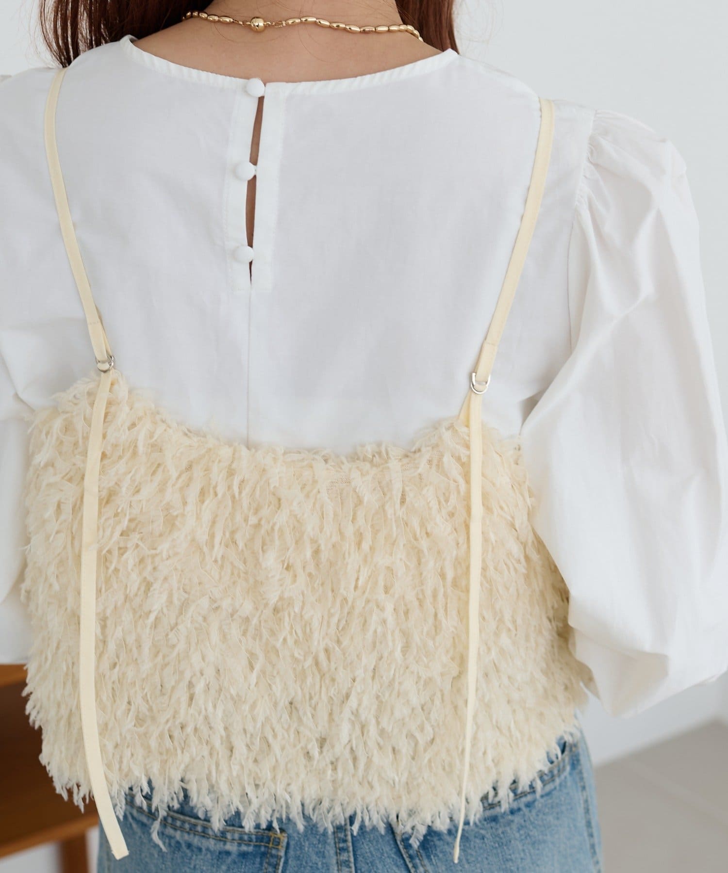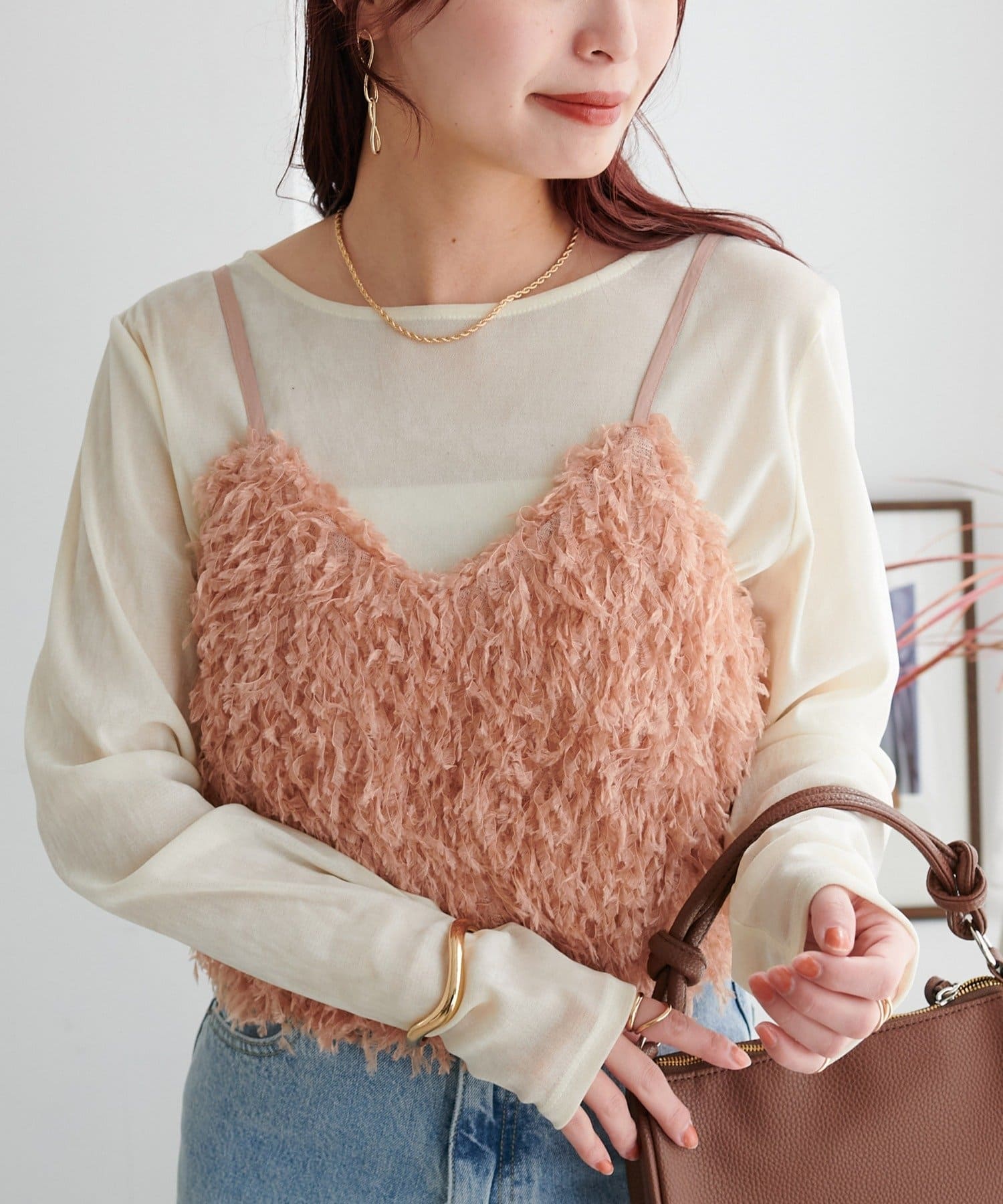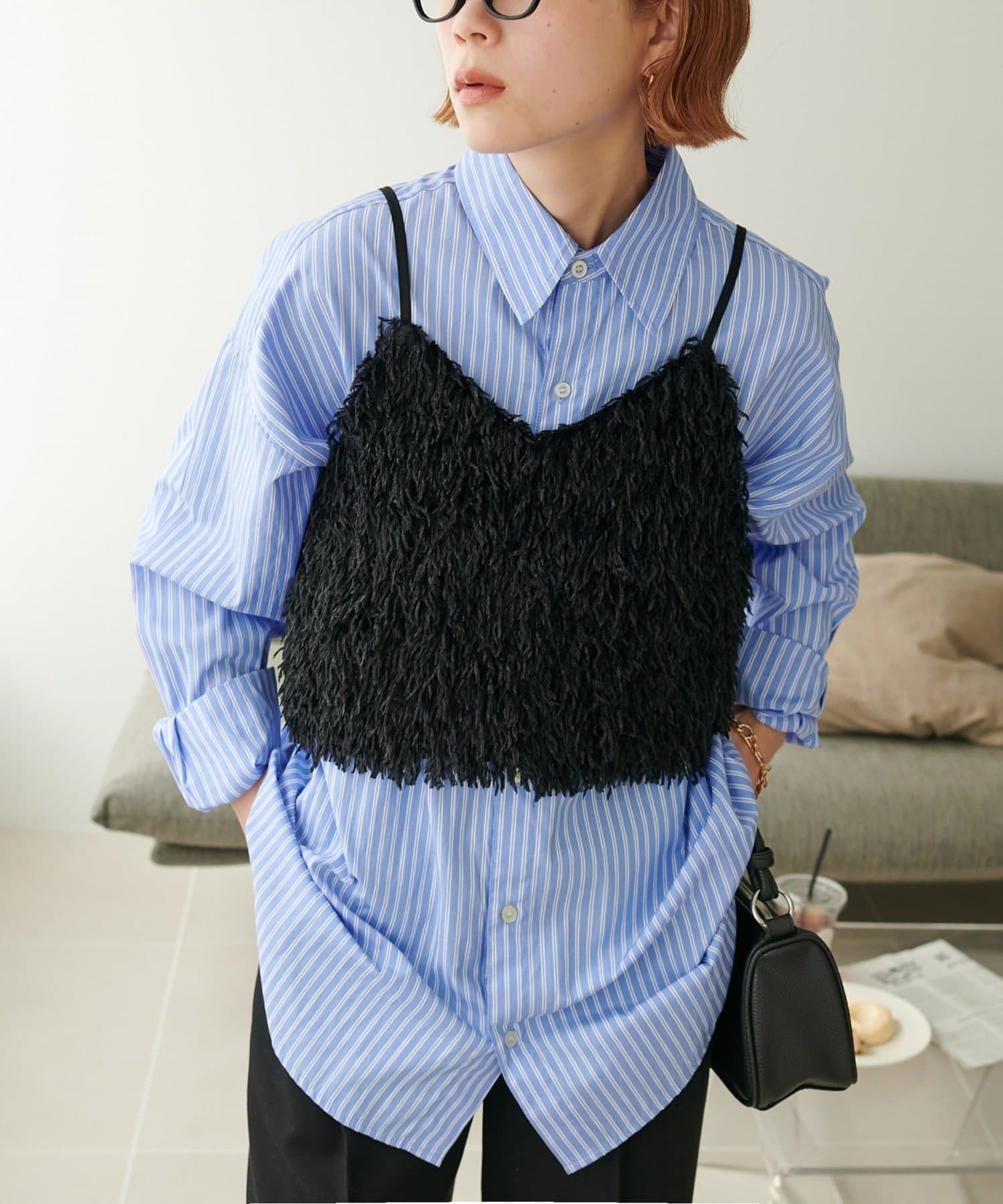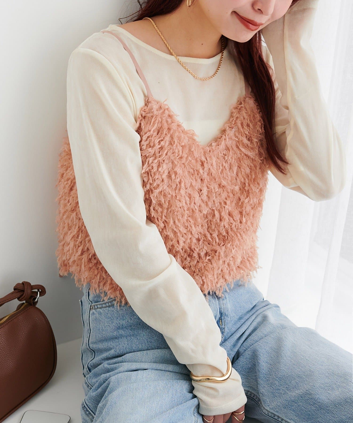 ・羽のようにふわっとした素材で程よくボリュームのある存在感抜群のテープヤーンキャミ。