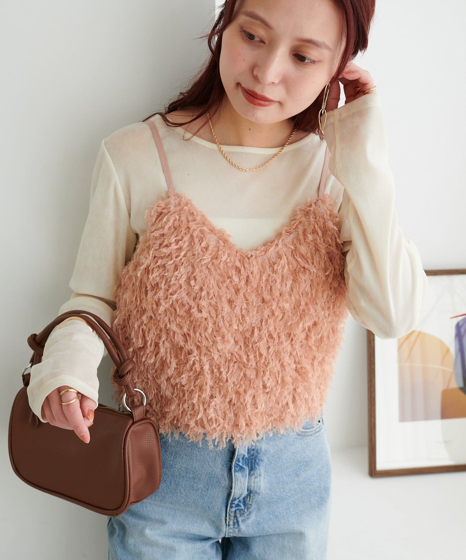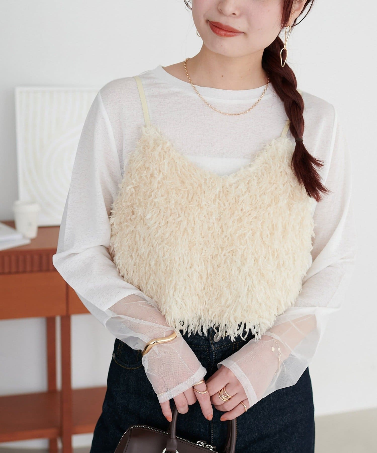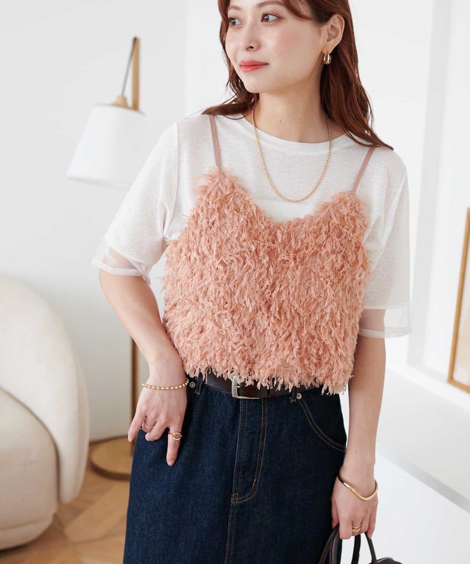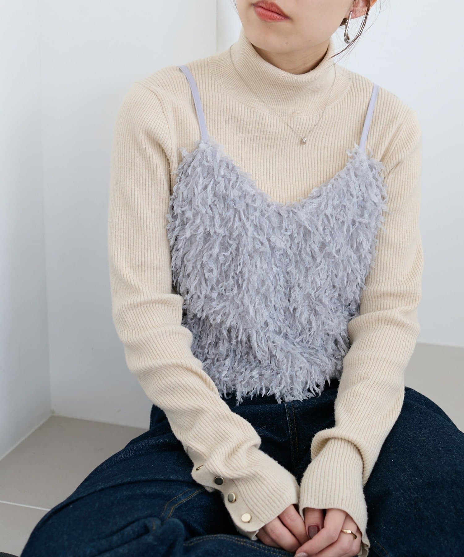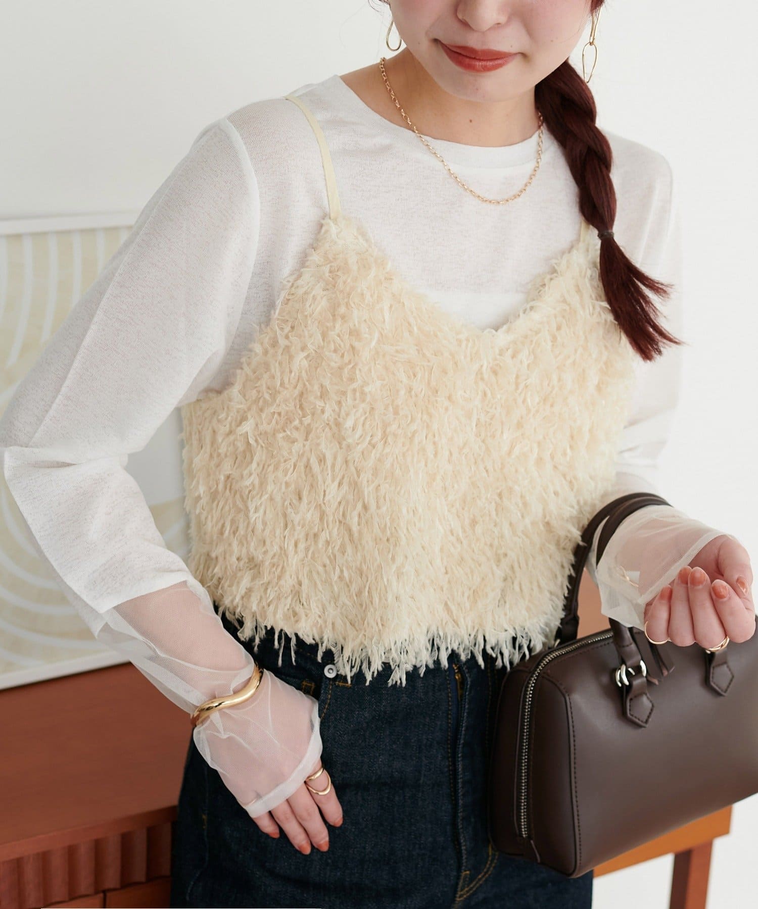 ・羽のようにふわっとした素材で程よくボリュームのある存在感抜群のテープヤーンキャミ。