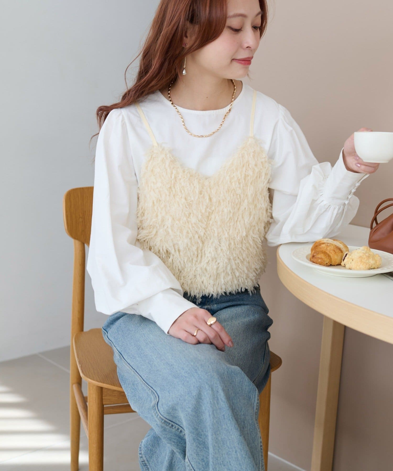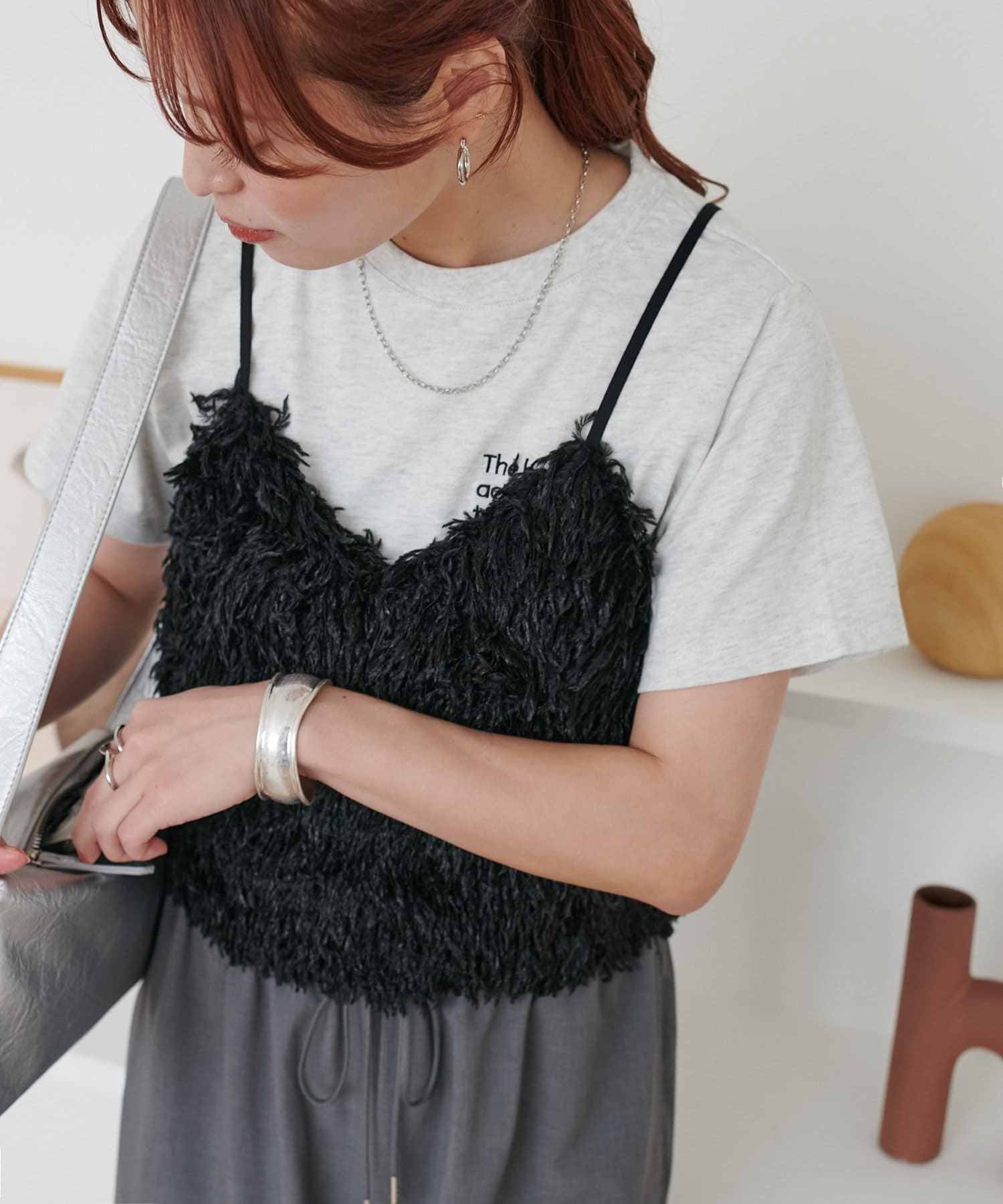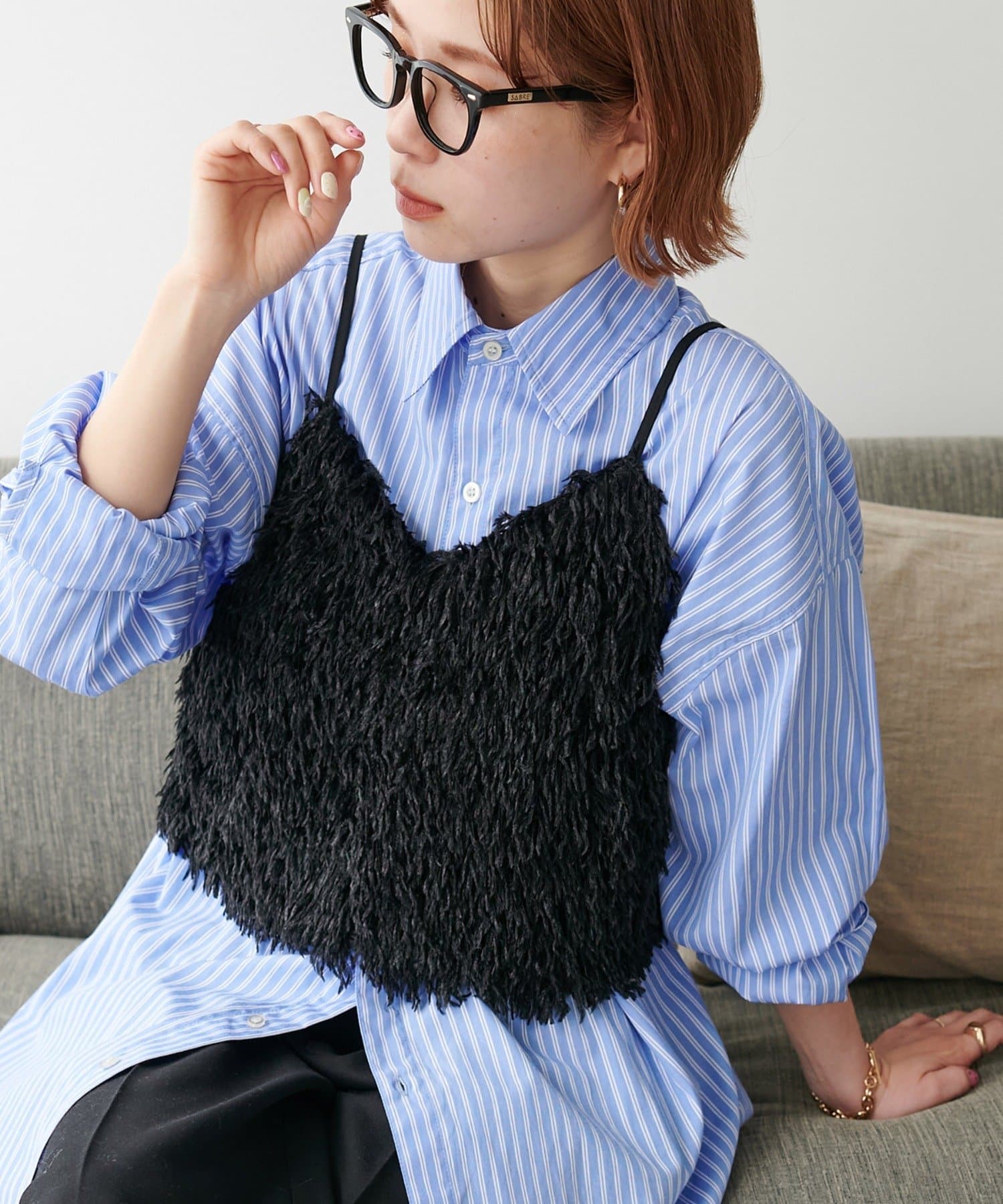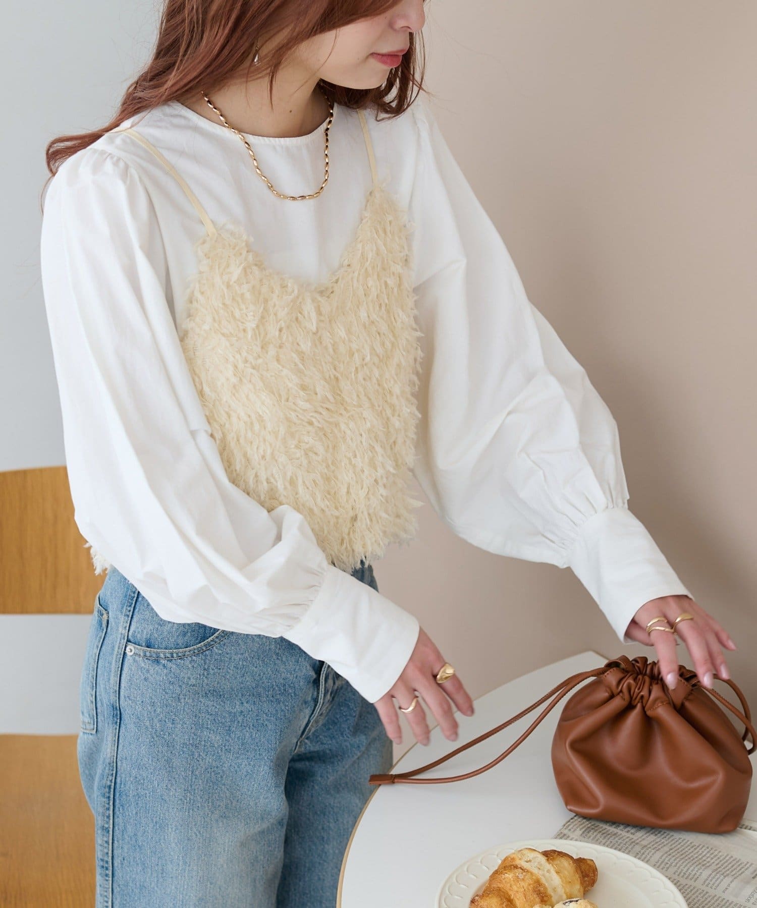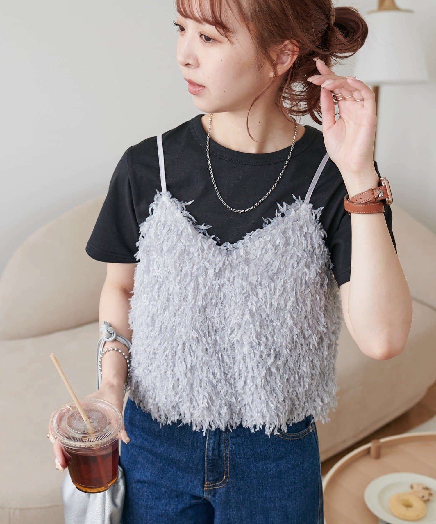 ・羽のようにふわっとした素材で程よくボリュームのある存在感抜群のテープヤーンキャミ。