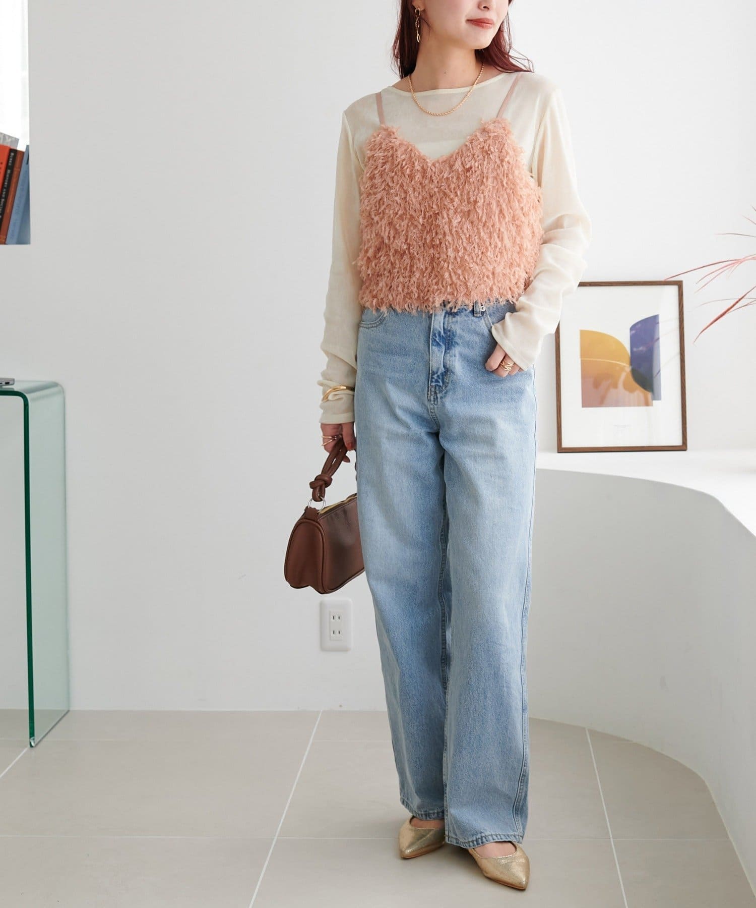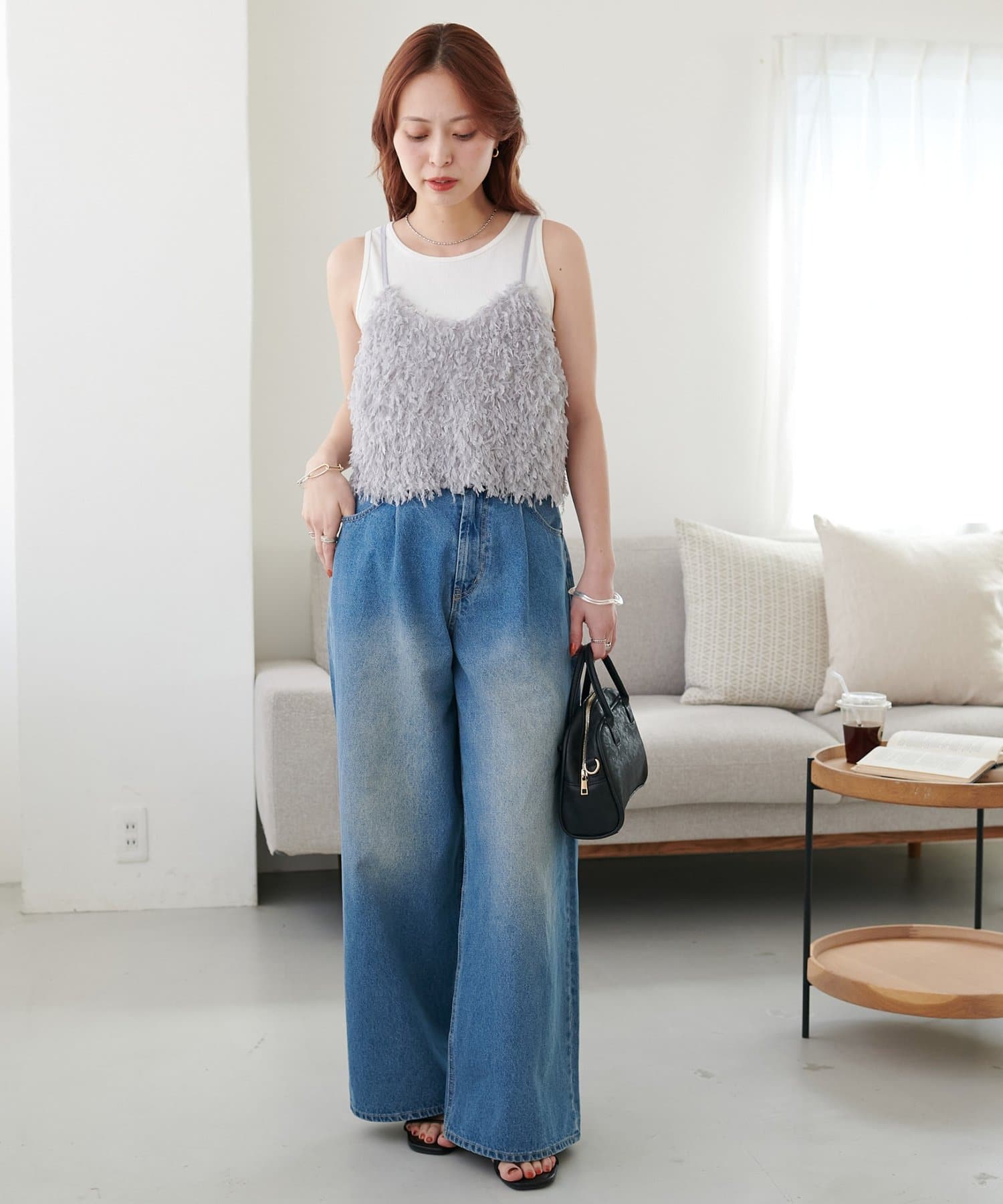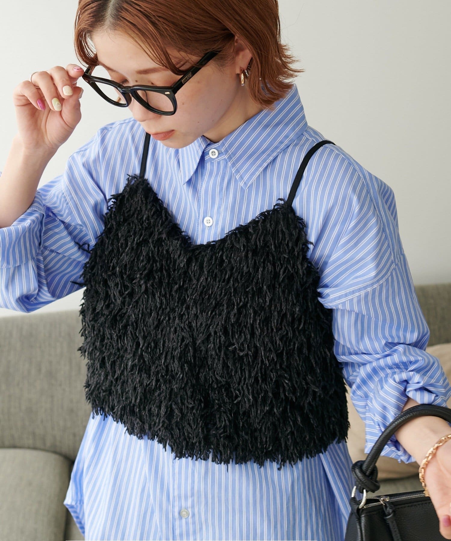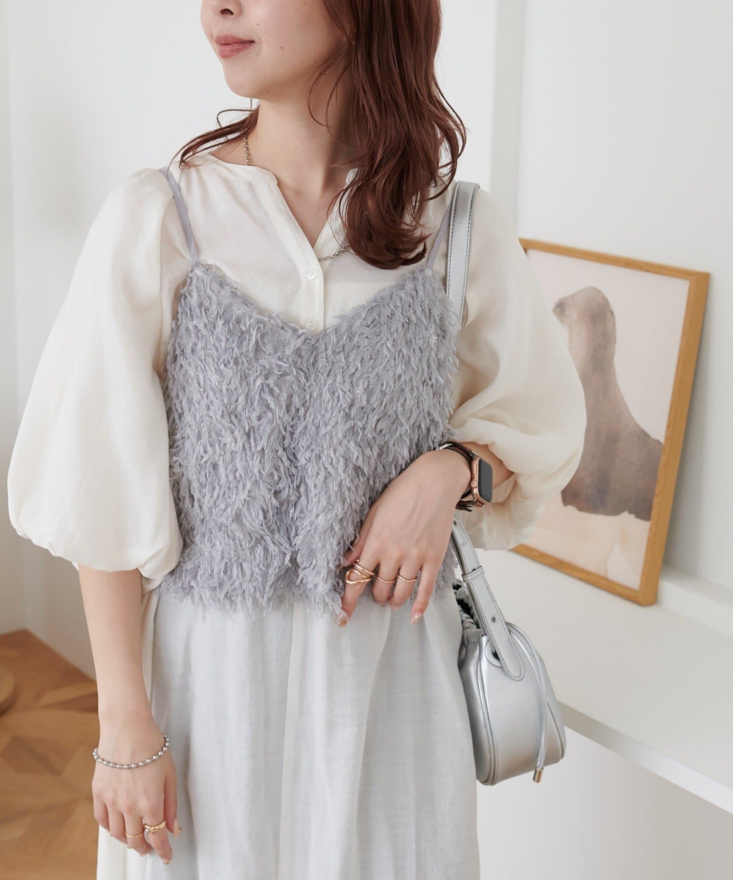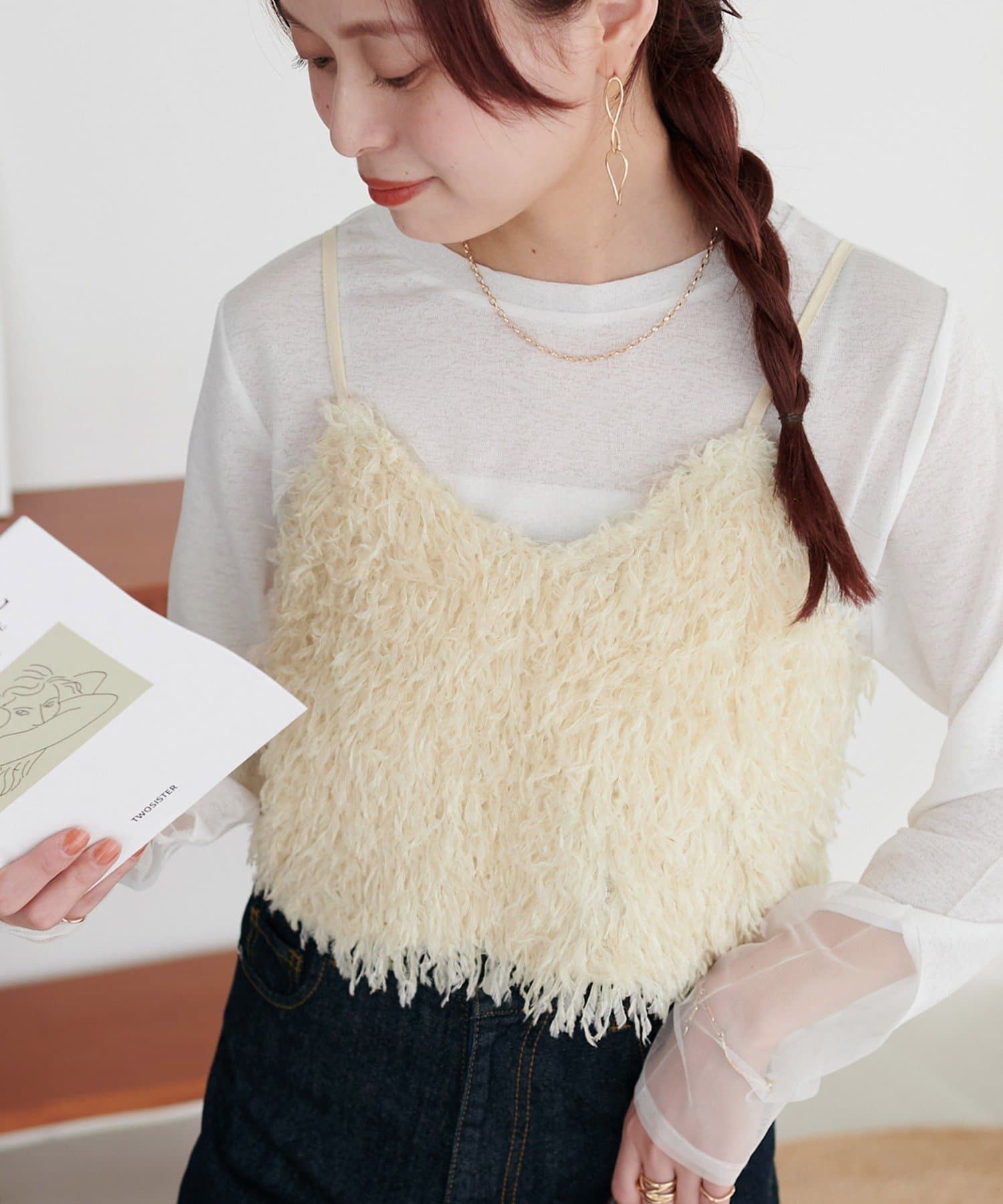 ・羽のようにふわっとした素材で程よくボリュームのある存在感抜群のテープヤーンキャミ。