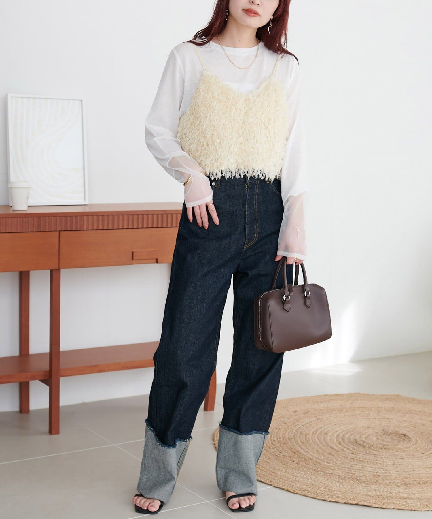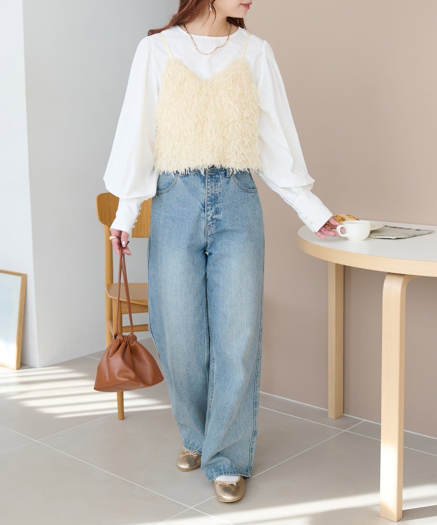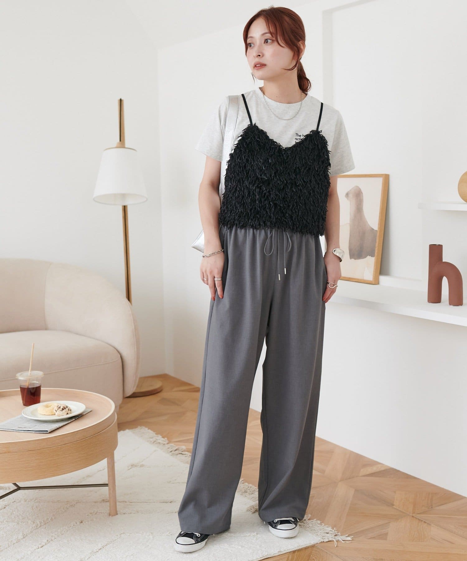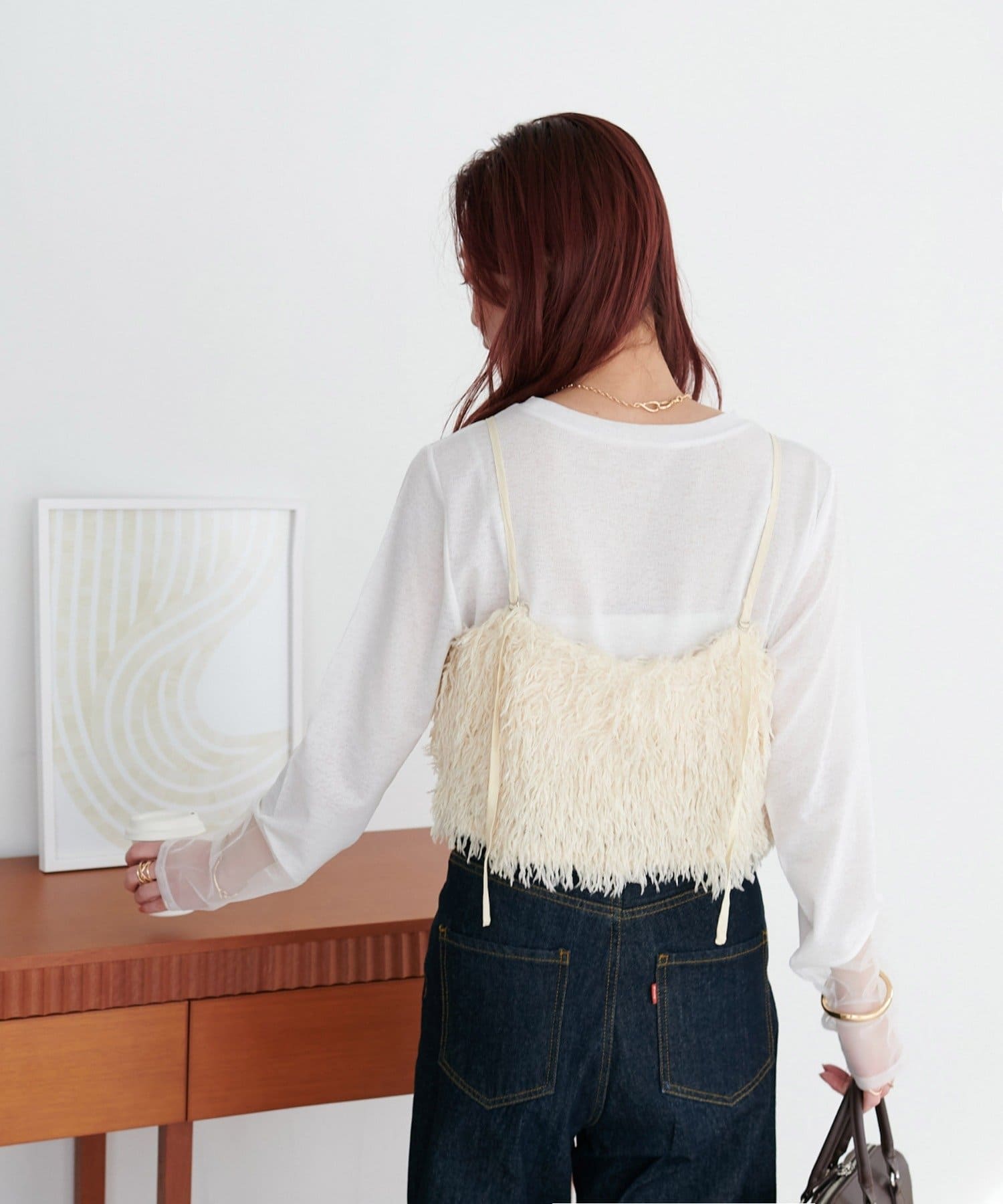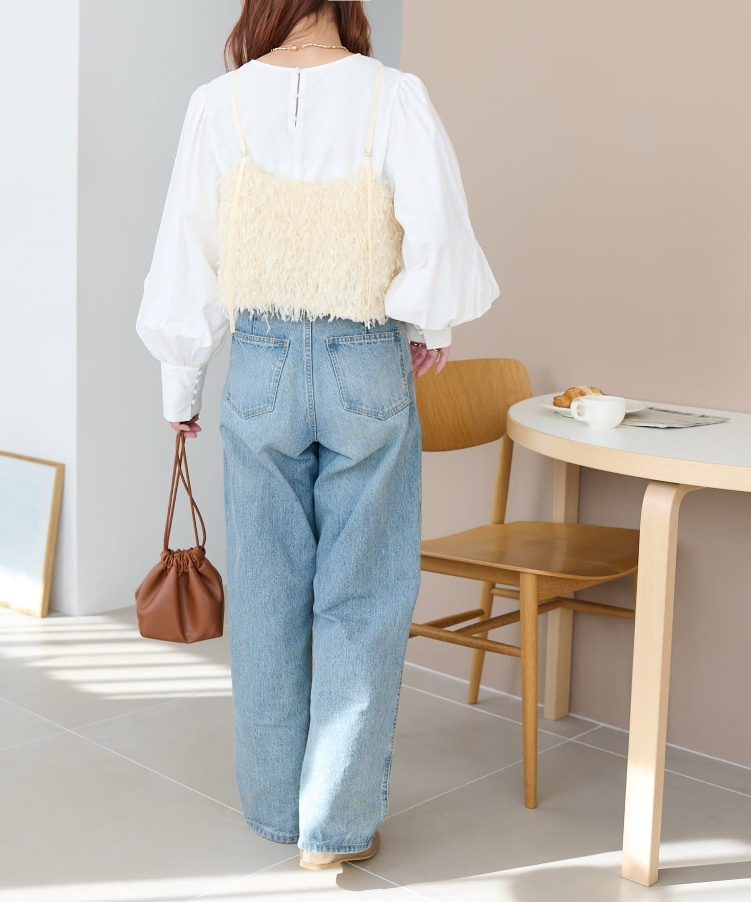 ・羽のようにふわっとした素材で程よくボリュームのある存在感抜群のテープヤーンキャミ。