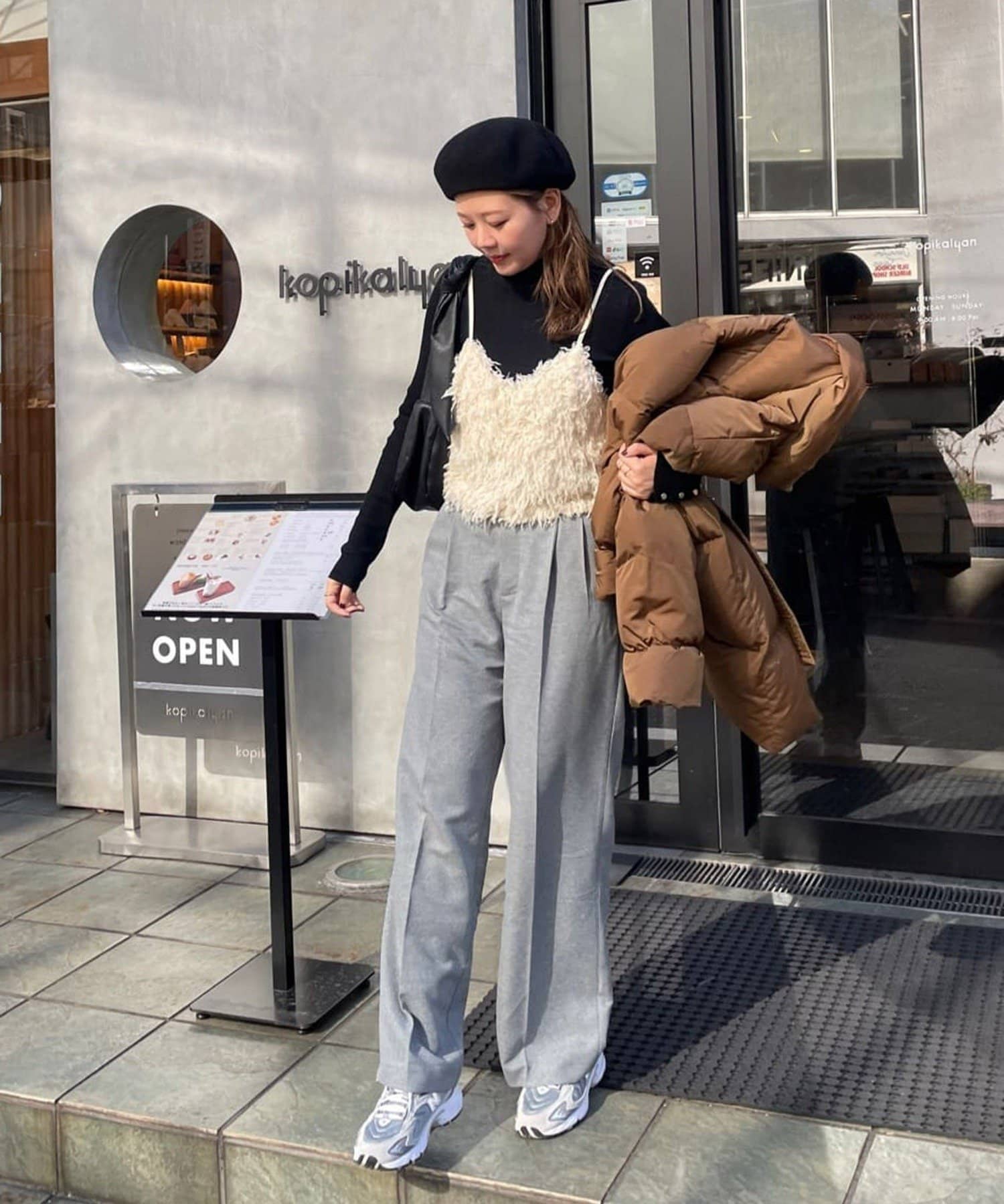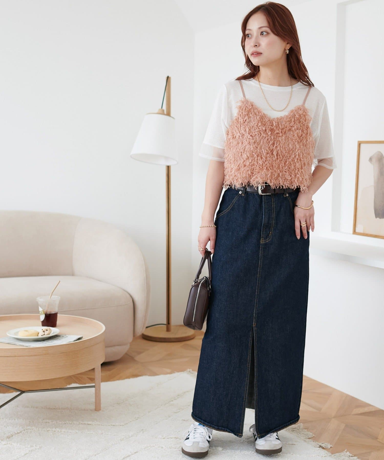 ・シンプルなトップスに合わせると一気に華やかでトレンド感のあるコーデに♪