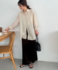 157cmスタッフ:シアー感があるので夏も着やすいですが、カラーが秋らしいので秋もコーデに取り入れやすいです〇