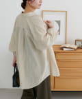 ・秋らしいカラーと縦のストライプ柄がポイントのシャツ。