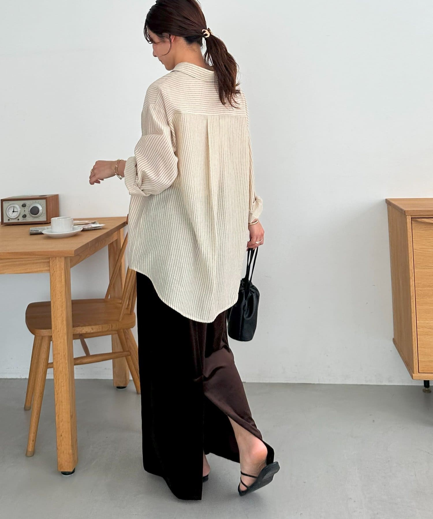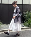 長めの着丈なので、ナロースカートや細めのパンツを合わせるとメリハリが出てすっきりとした印象に!