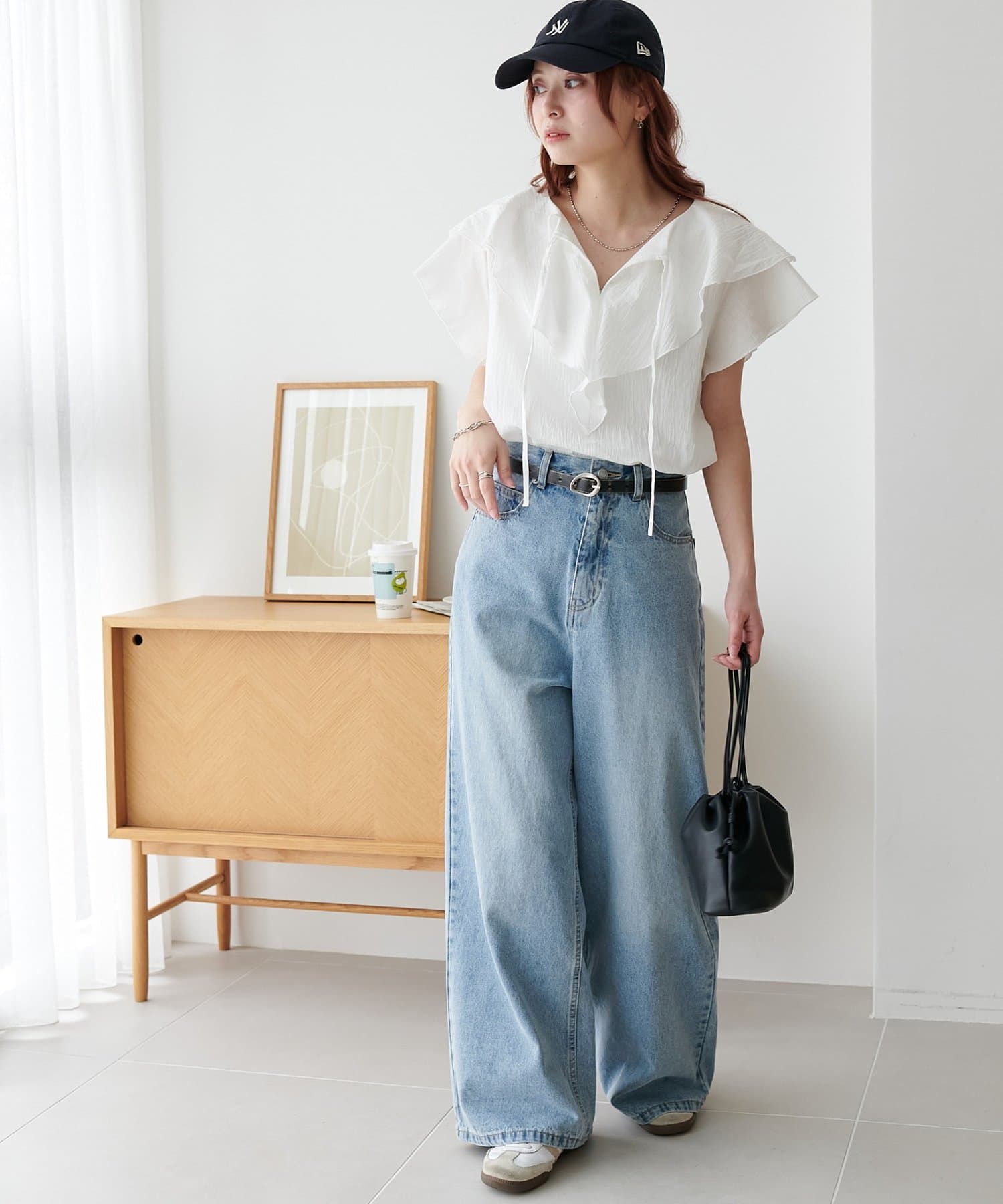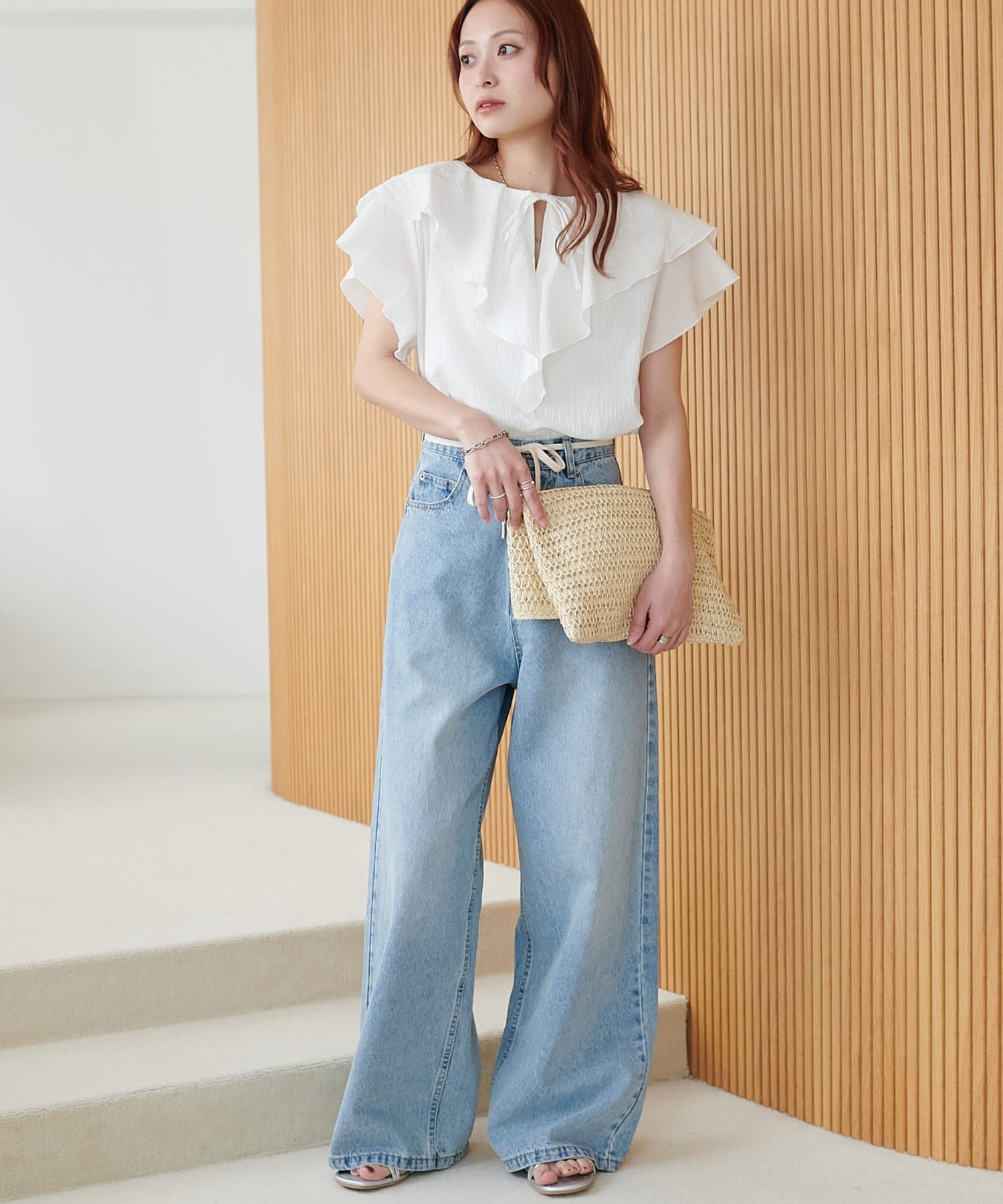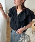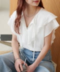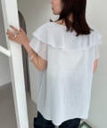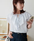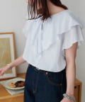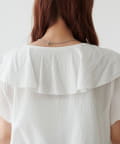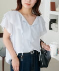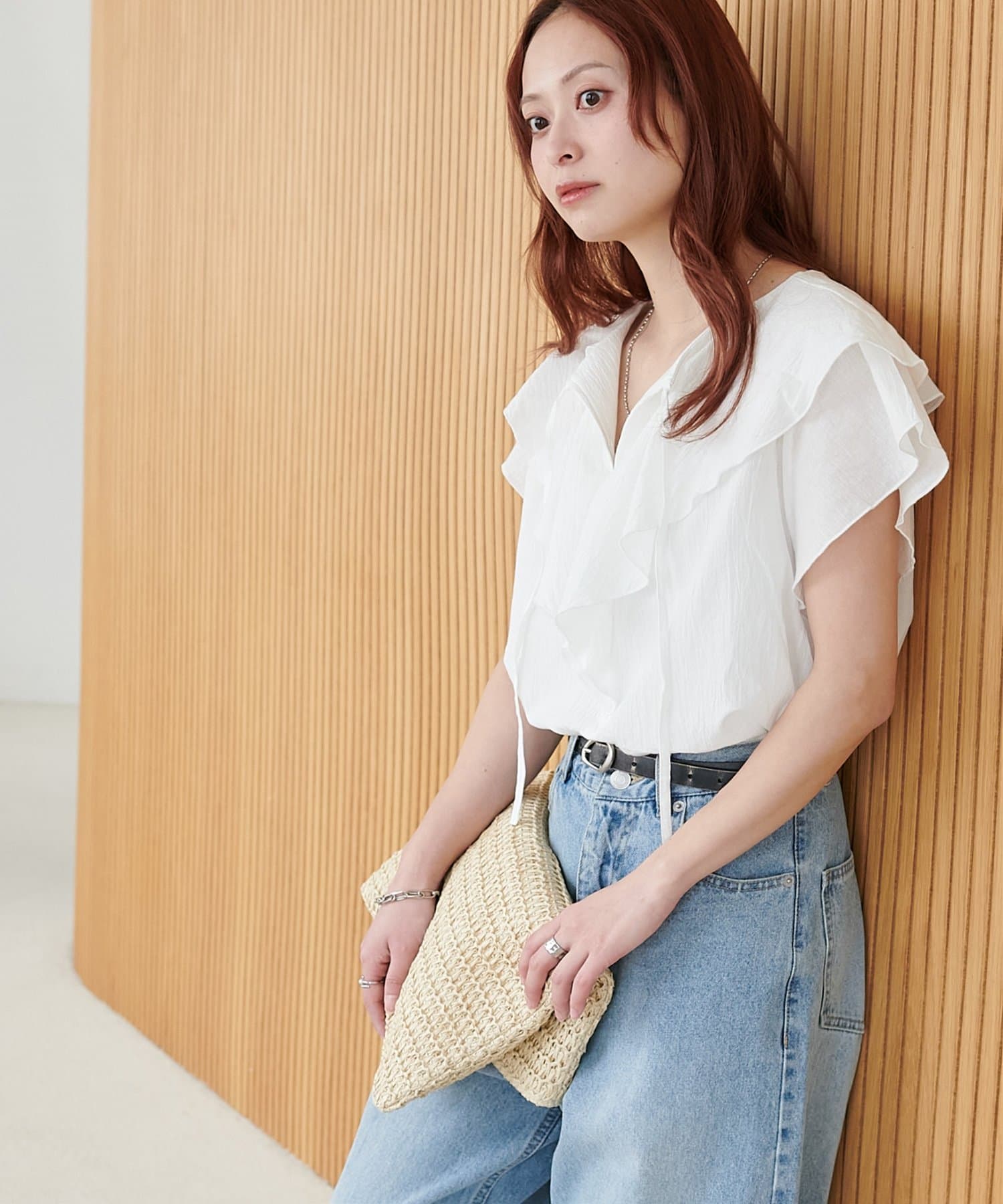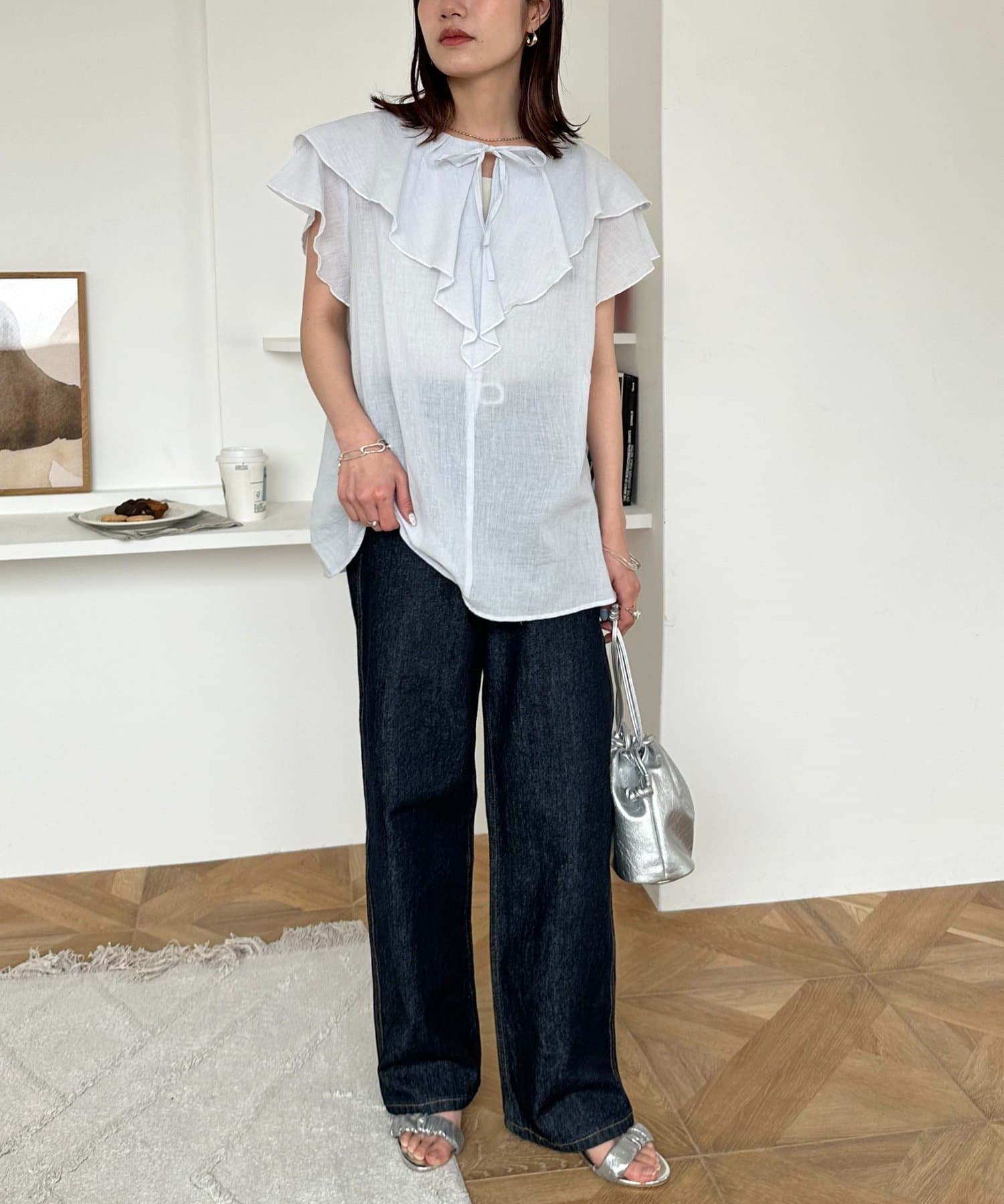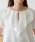 ・パッと目を引く襟フリルのデザインがポイントのブラウス。