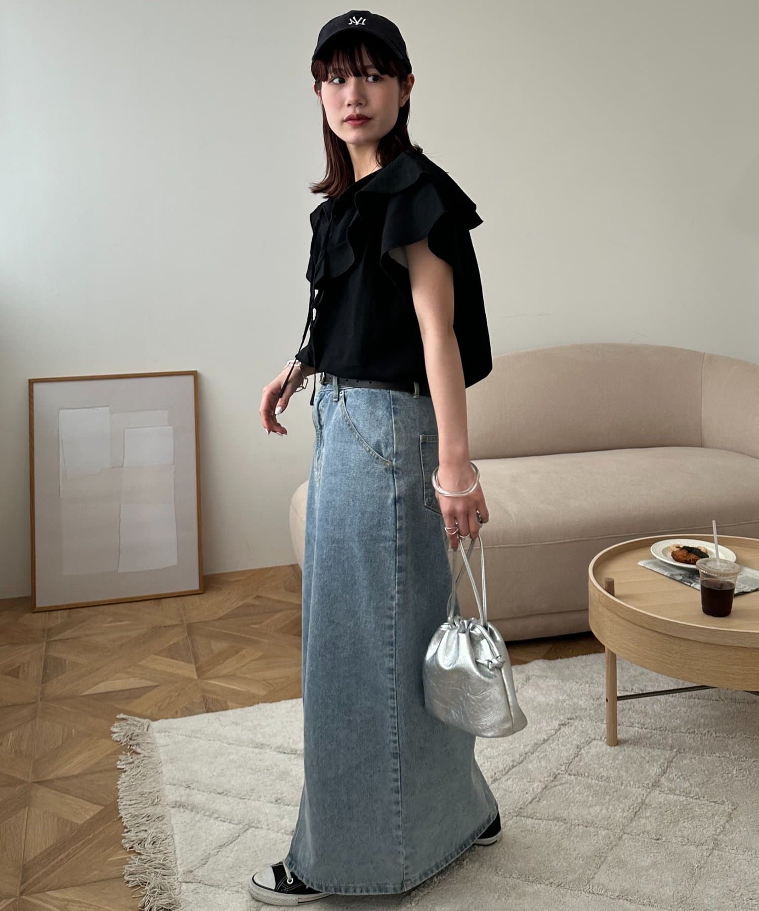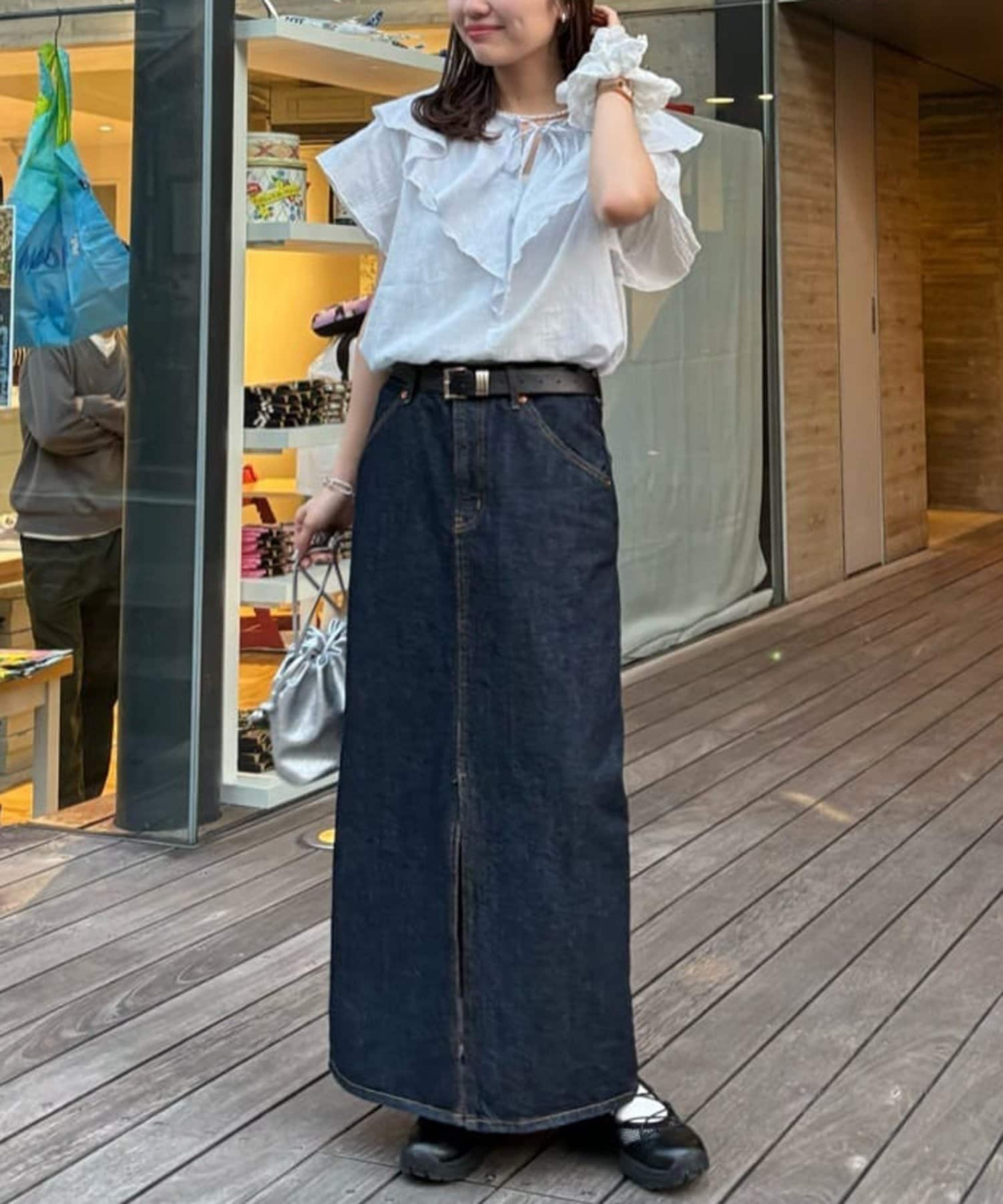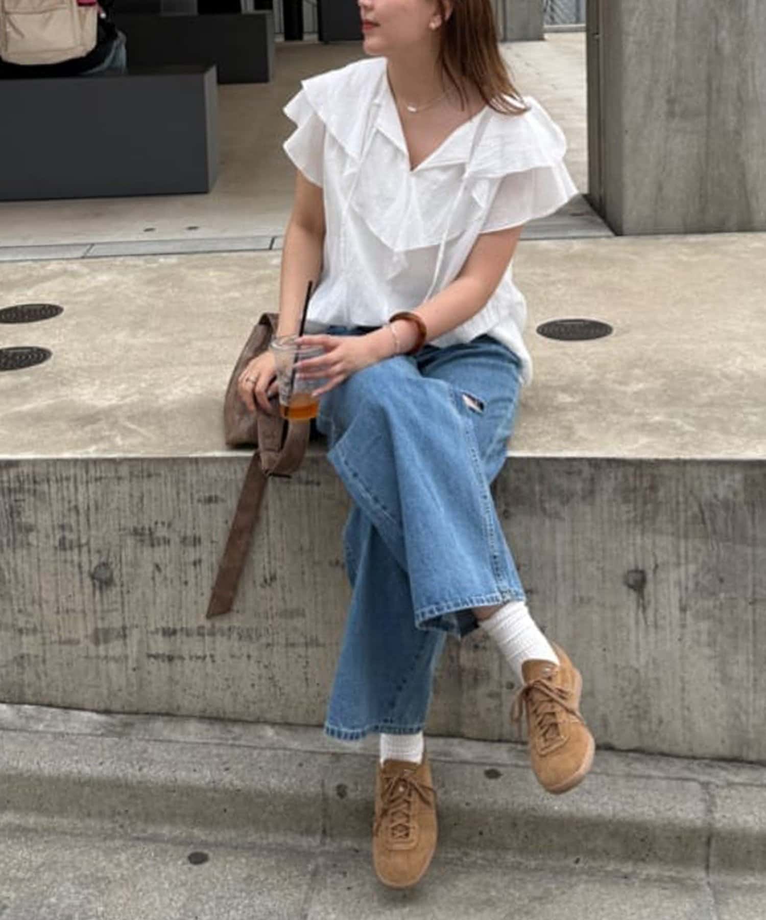 しわが気になりにくい生地感なので、アウトだけではなくインスタイルにも活躍◎