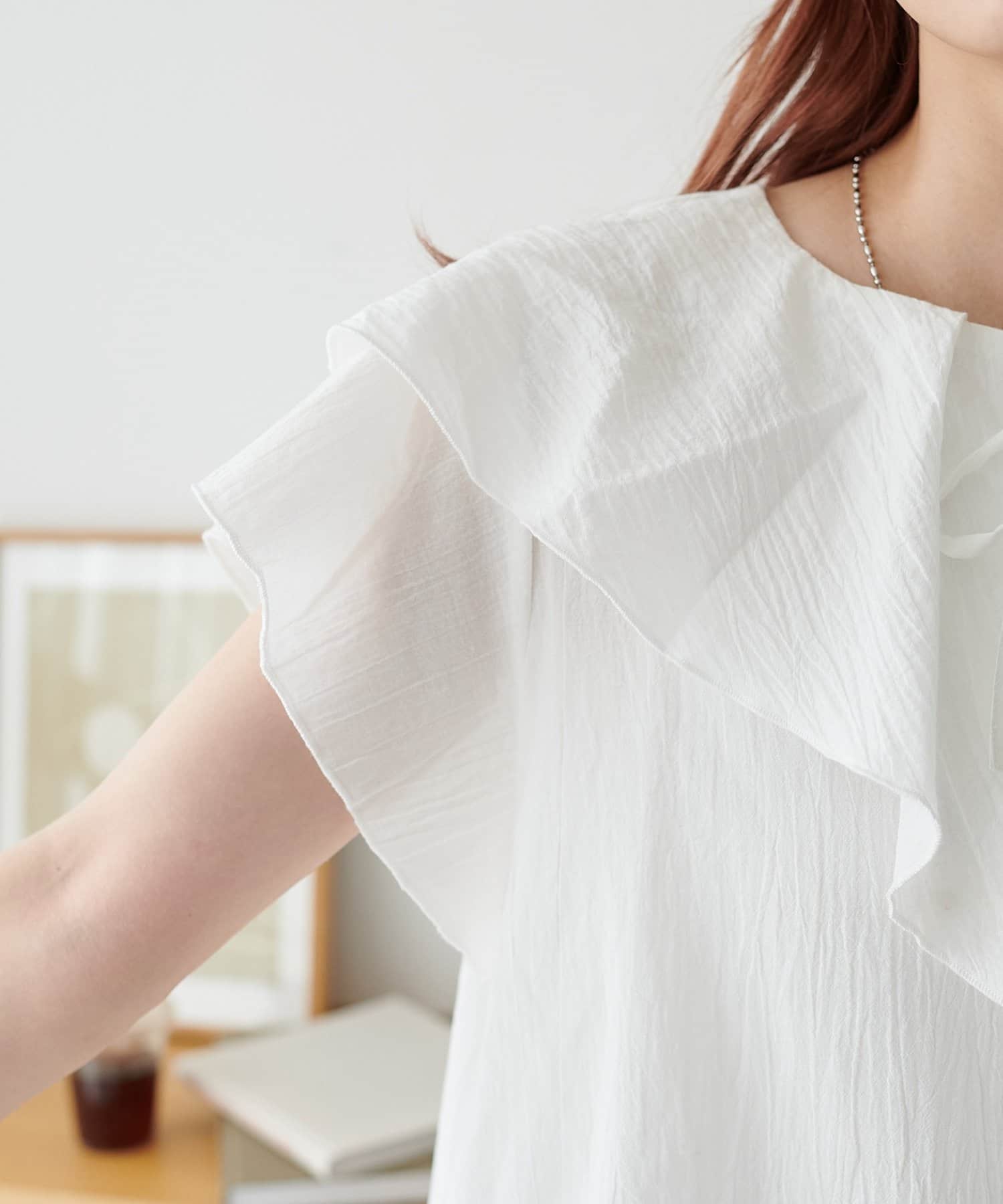 【WEB限定/軽い着心地◎/二の腕カバー】フリルブラウス