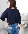 163cmスタッフ:ラグランスリーブで肩周りが動かしやすく、快適な着心地です。甘すぎないデザインなので、オンオフ問わず着回しが効く一枚です。