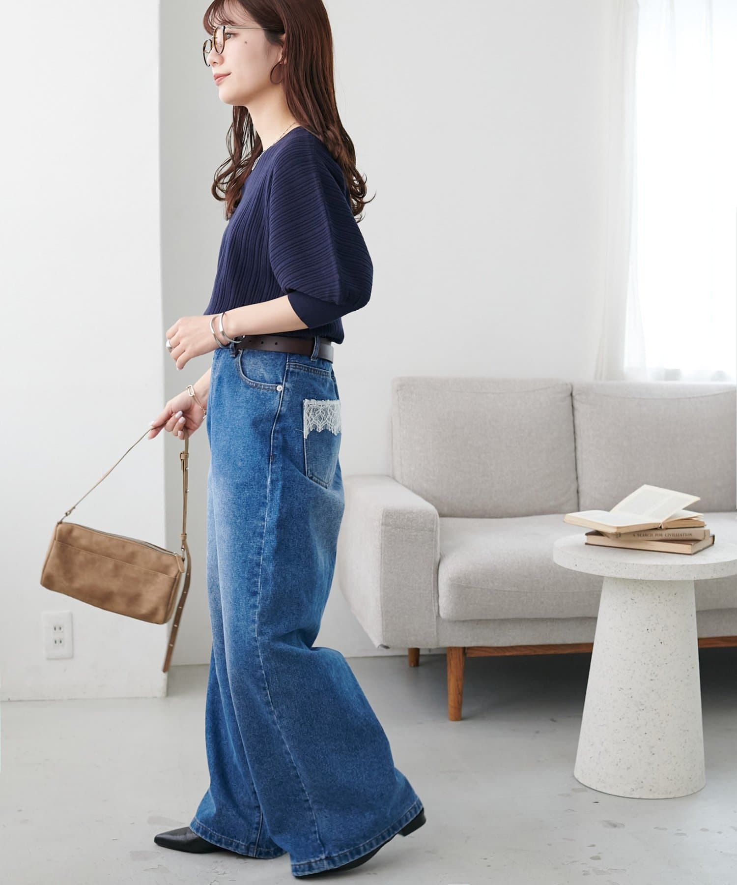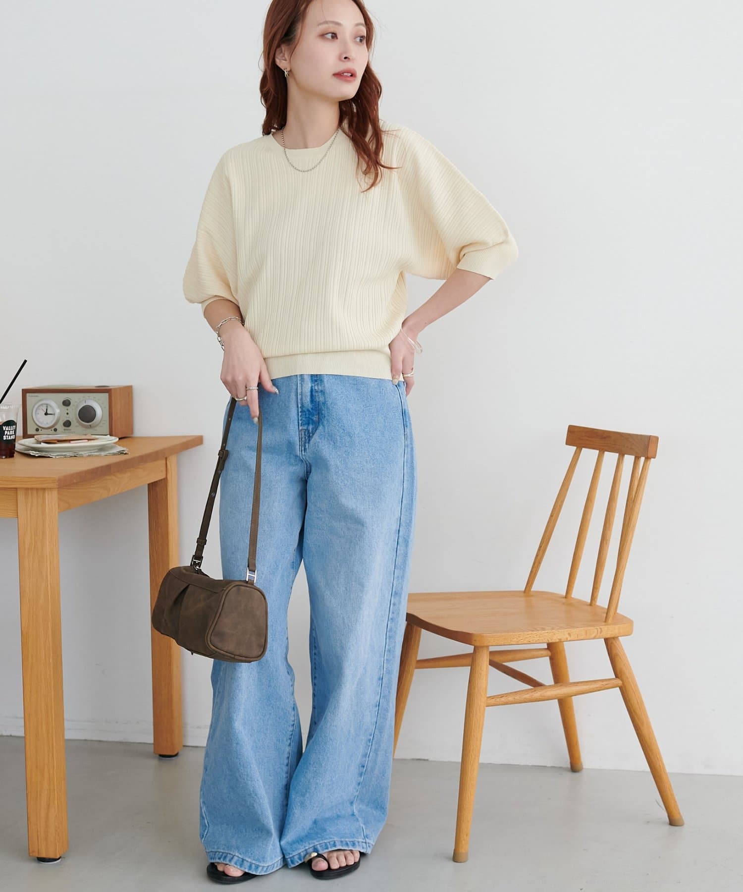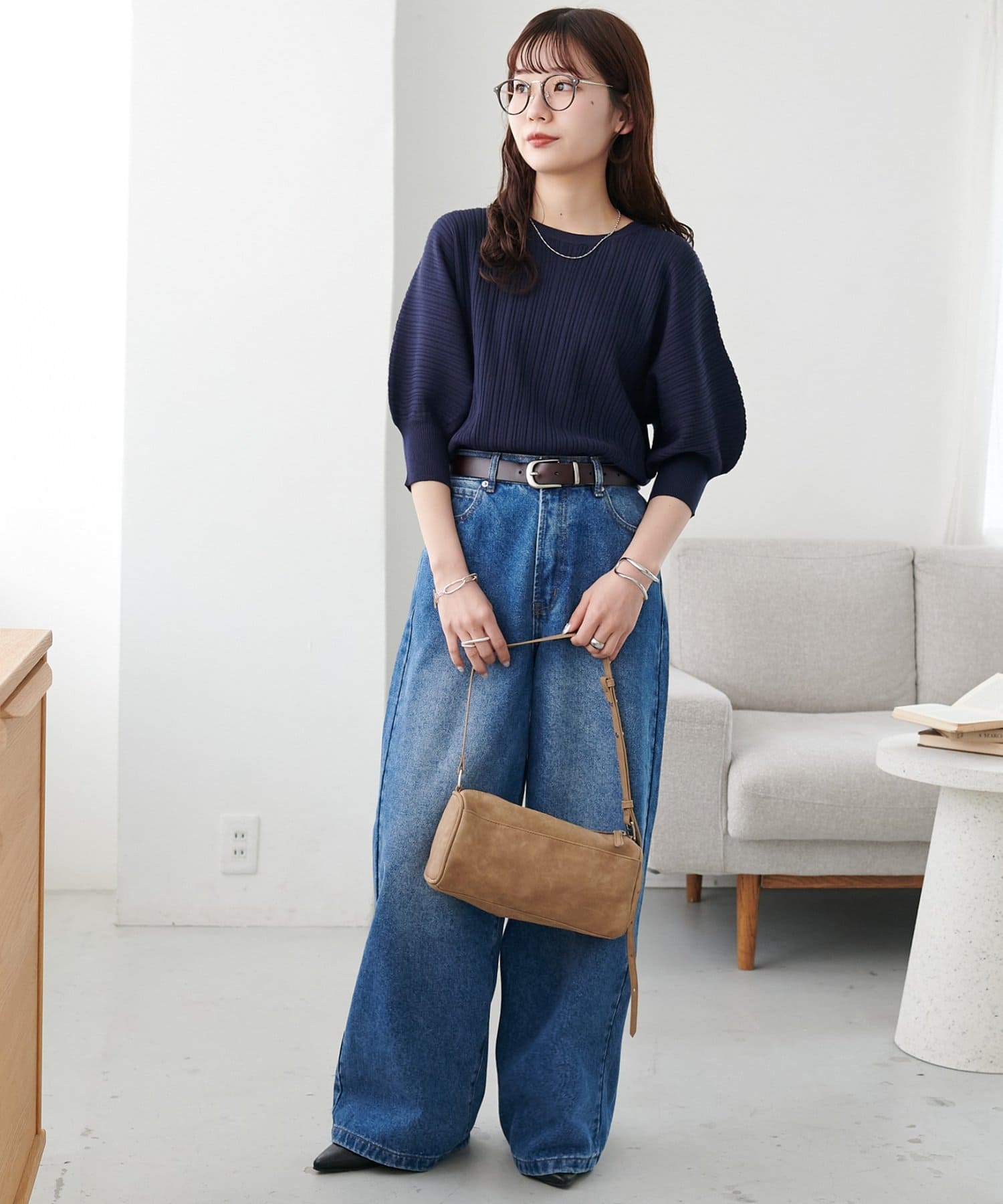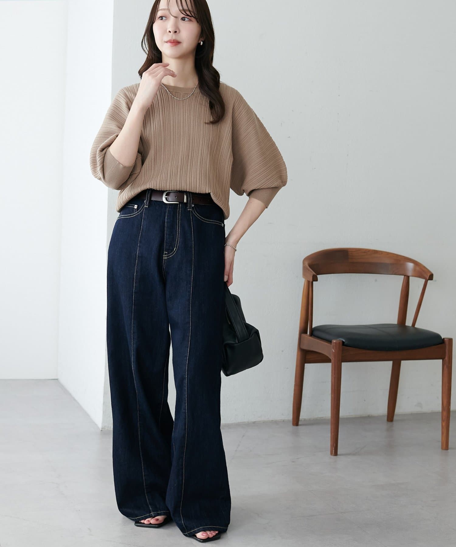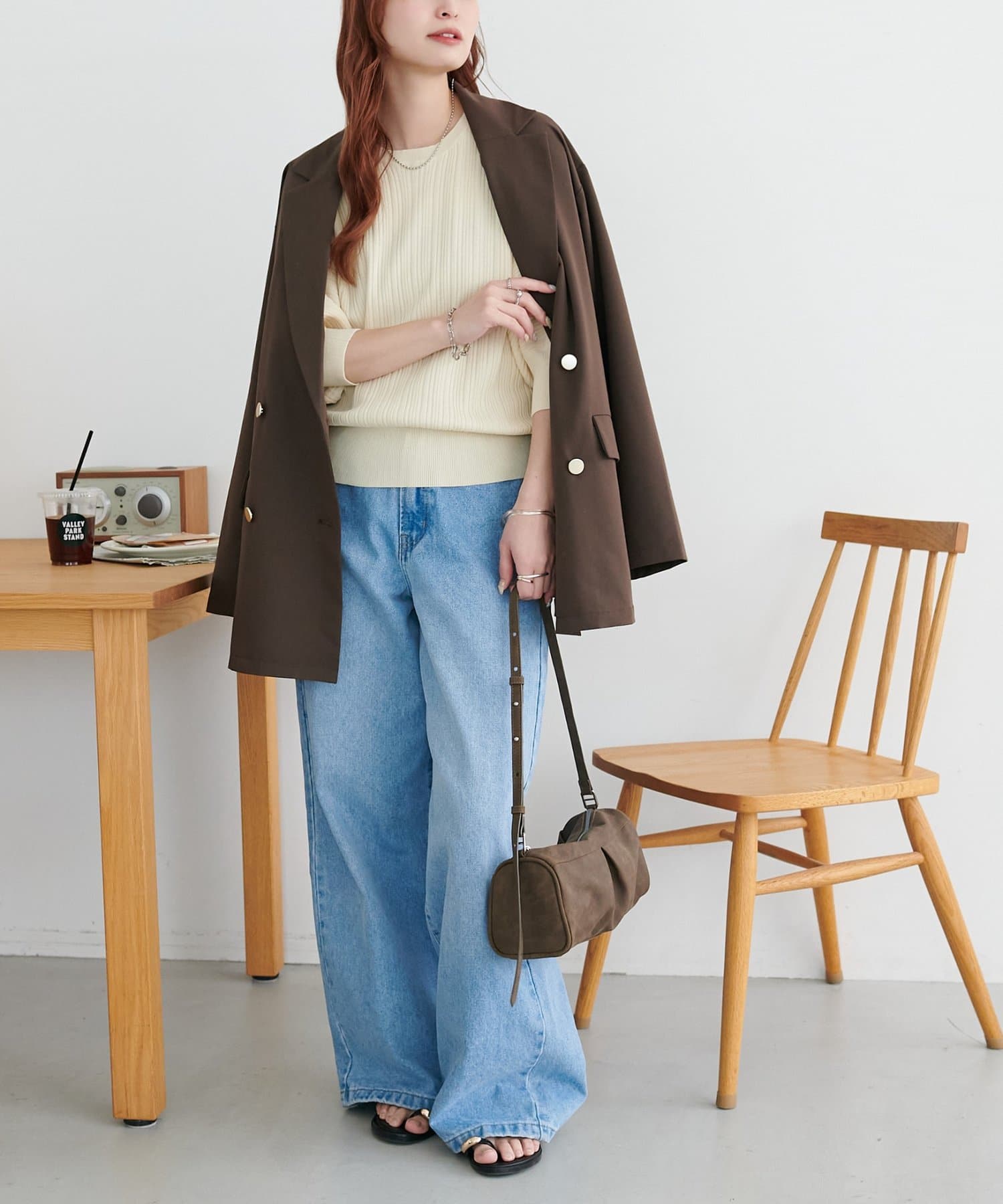 ・デニムやワイドパンツと合わせて、こなれ感のある大人カジュアルな着こなしに。