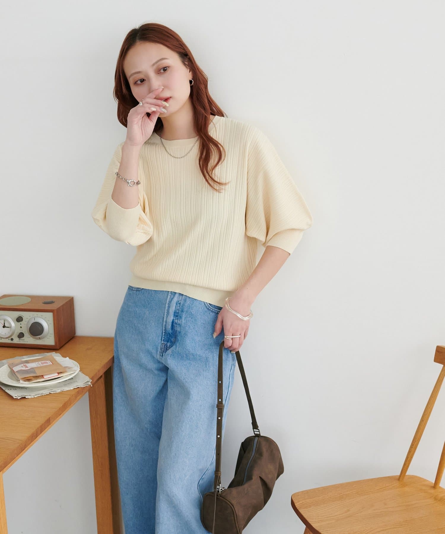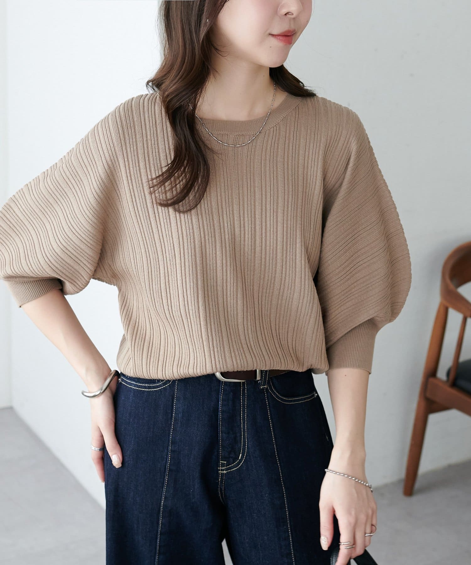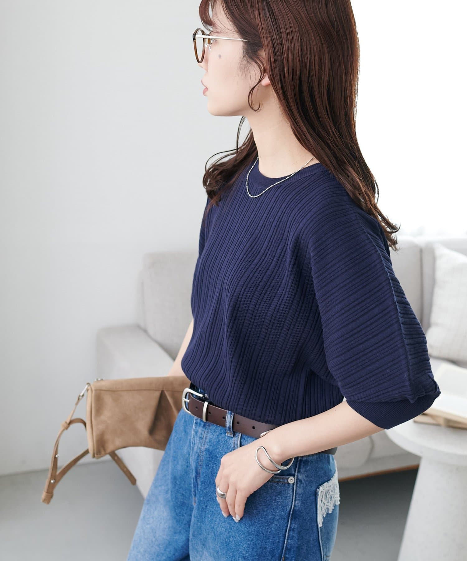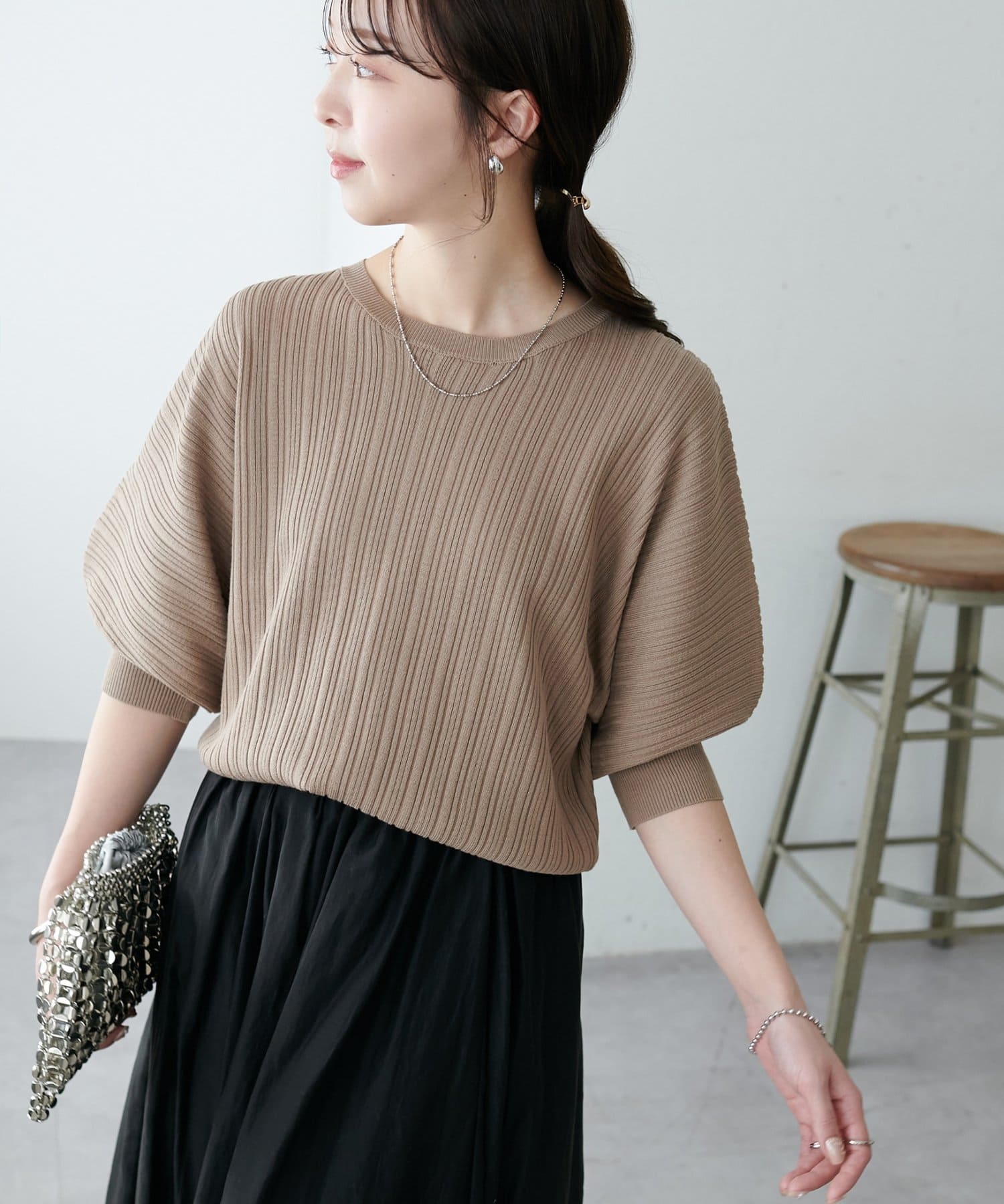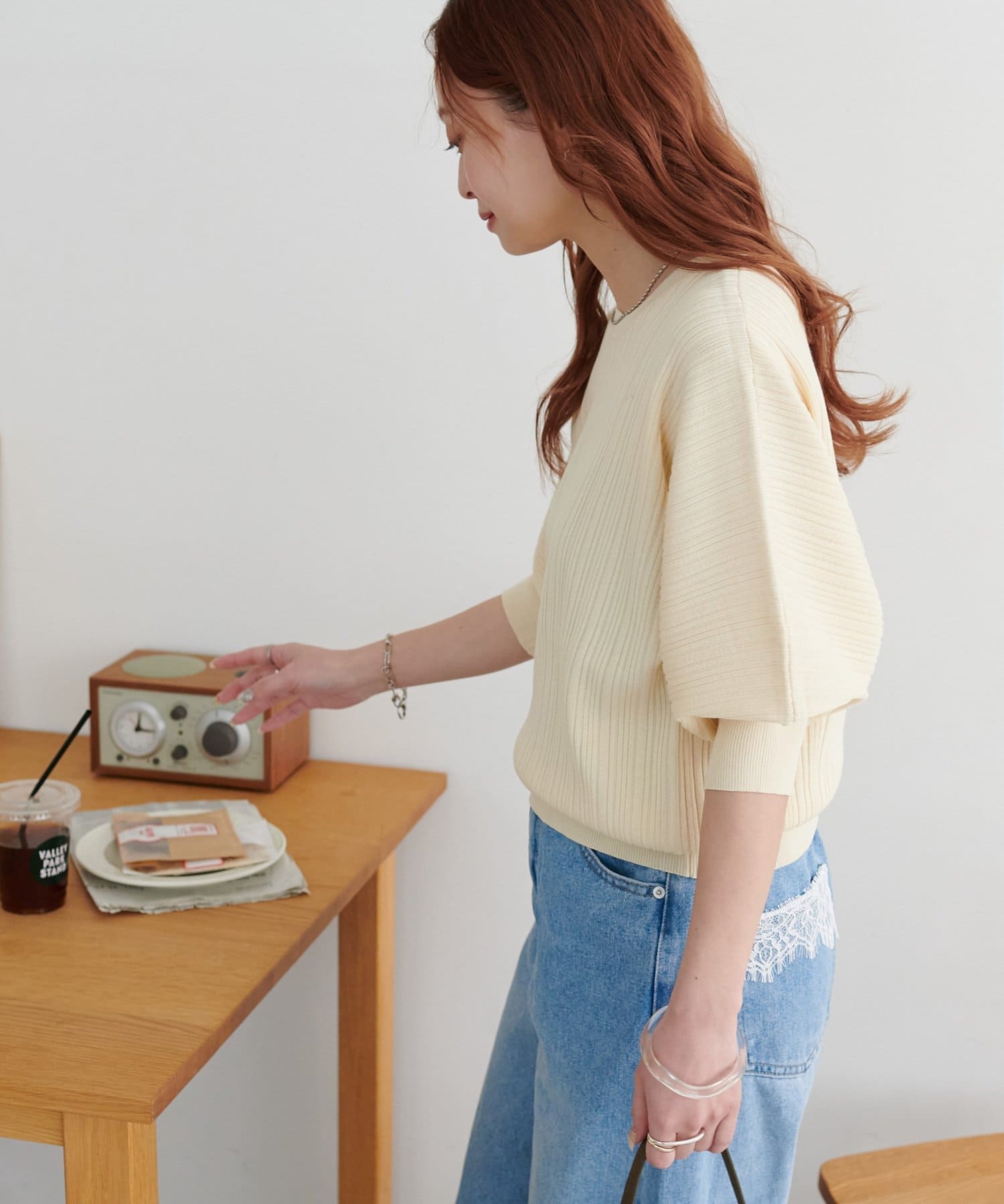【WEB限定】ランダムリブボリュームスリーブ半袖ニット