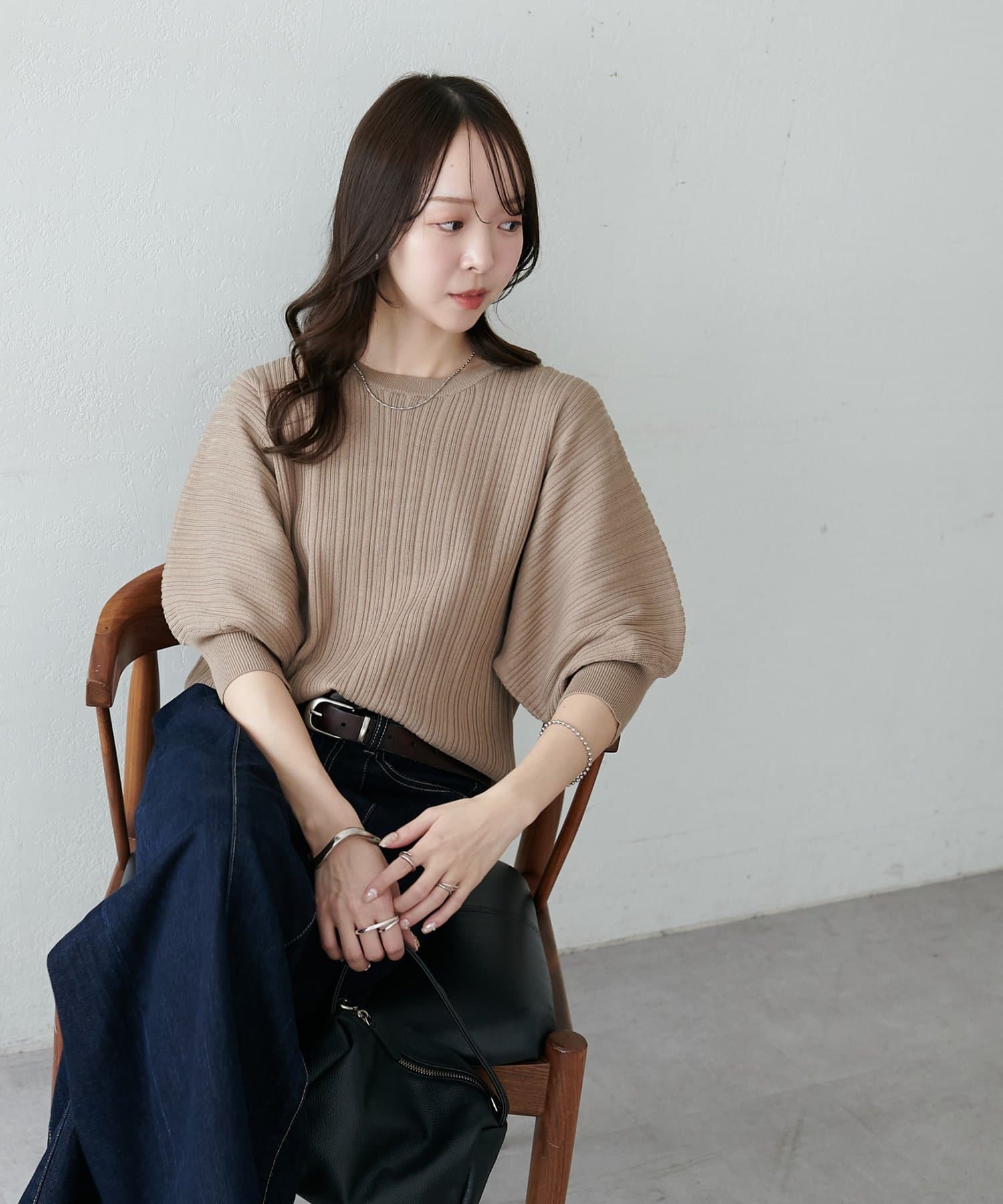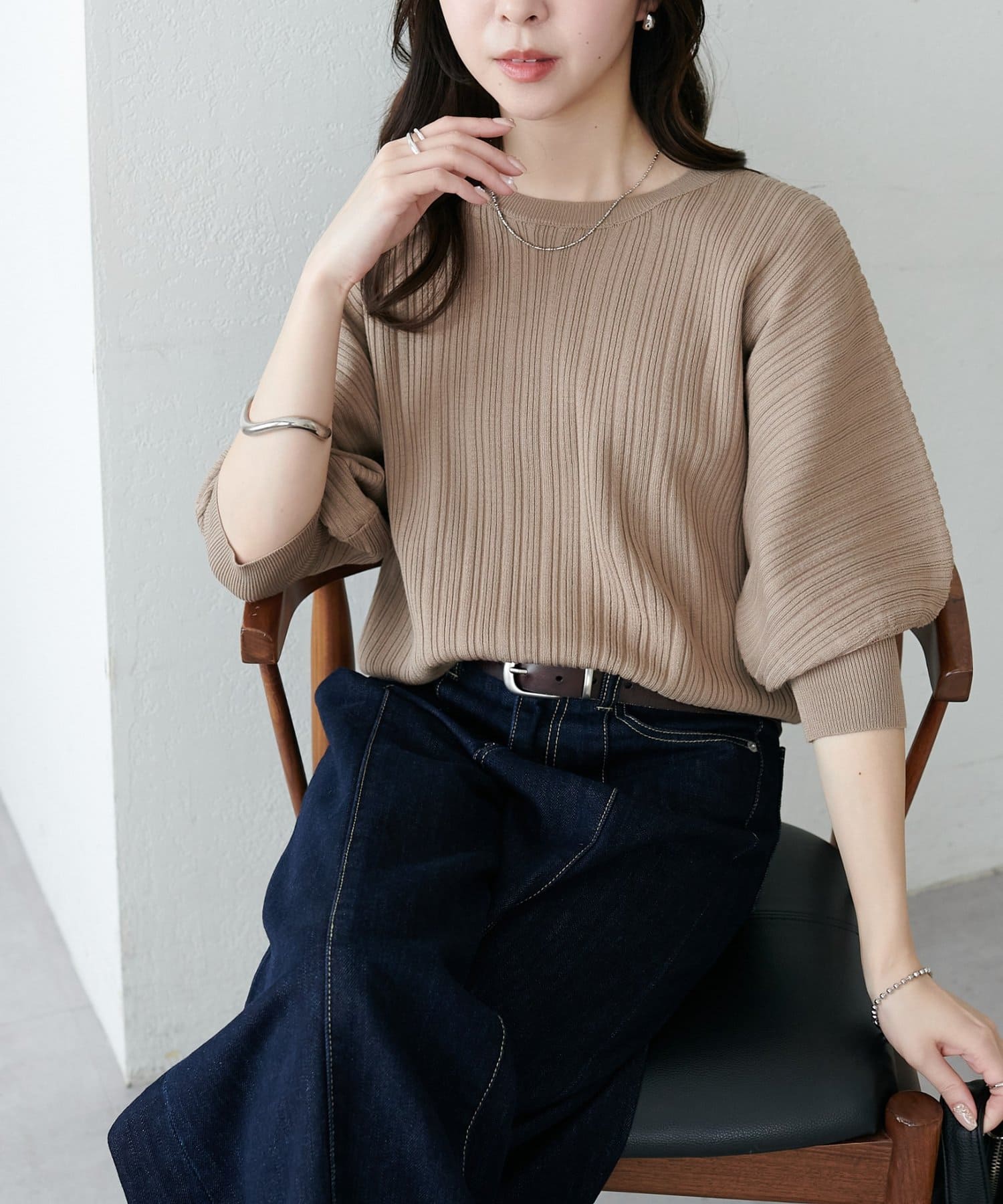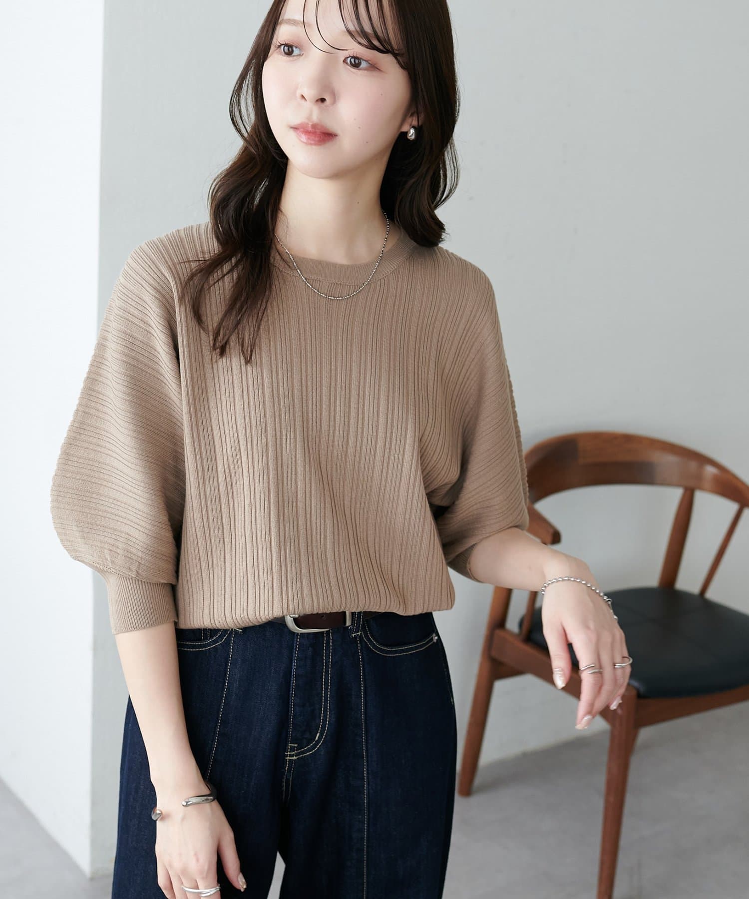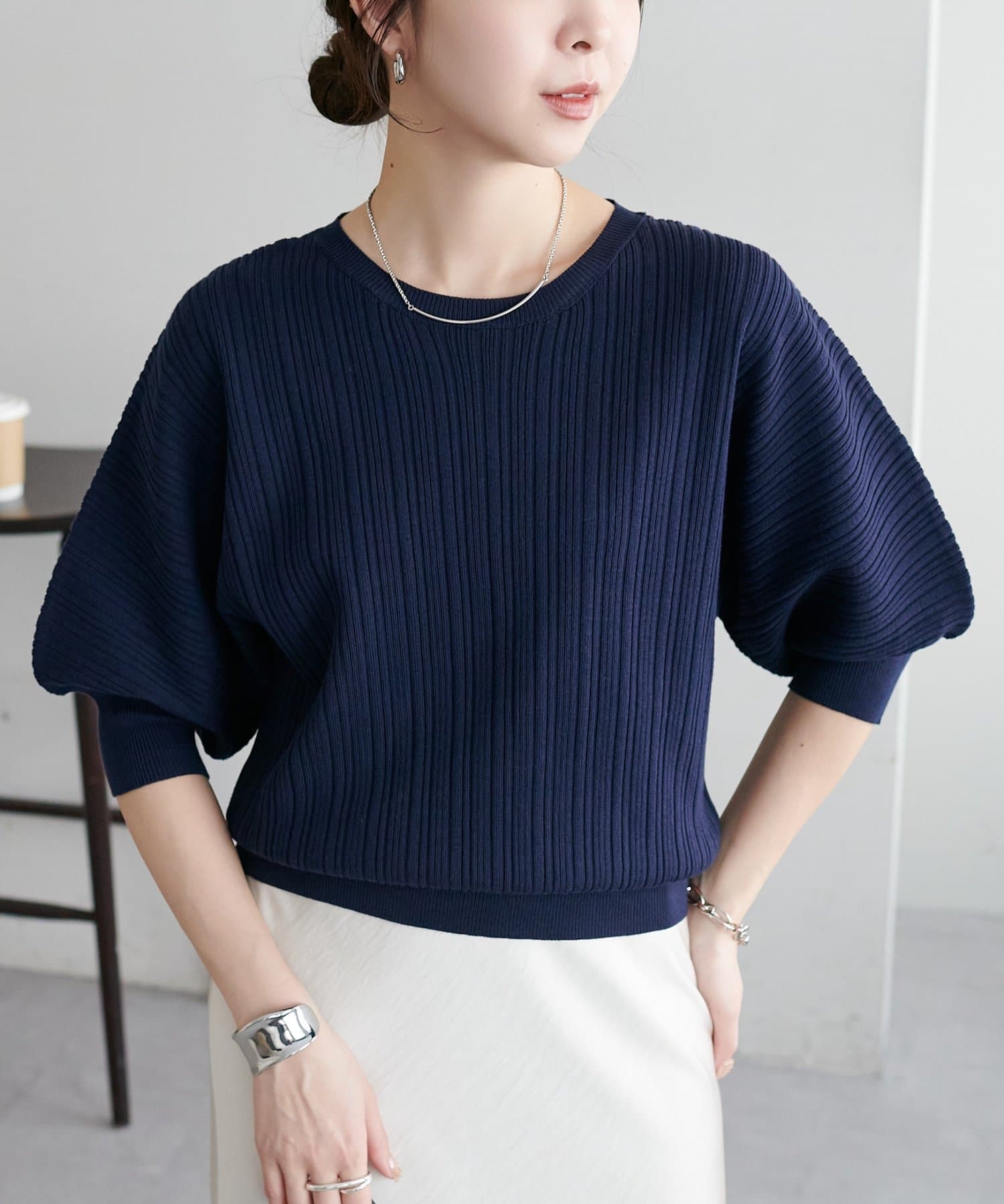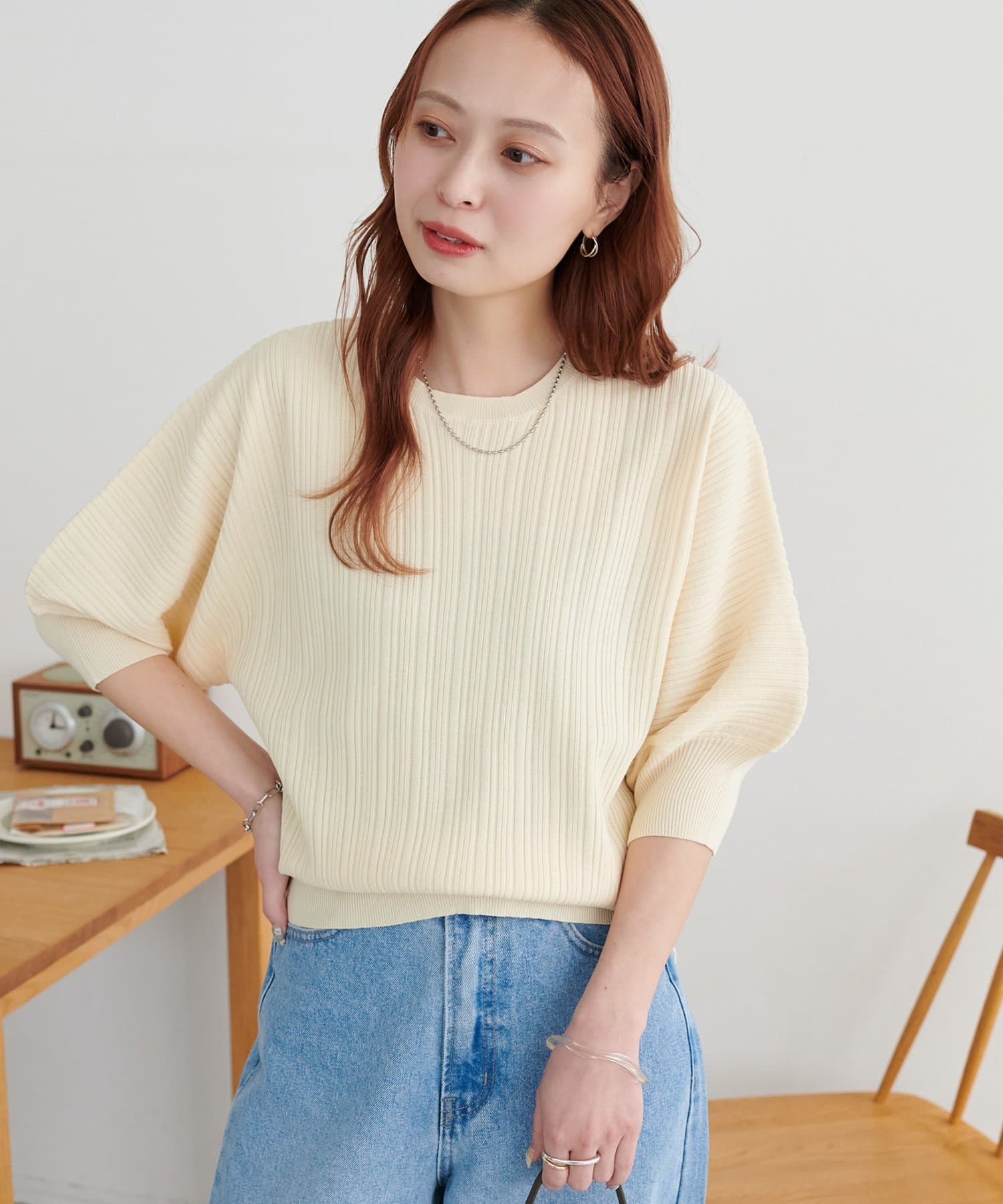 【WEB限定】ランダムリブボリュームスリーブ半袖ニット