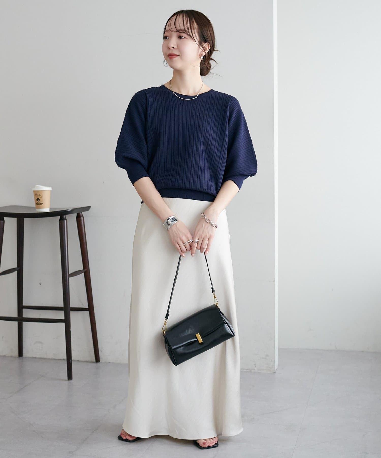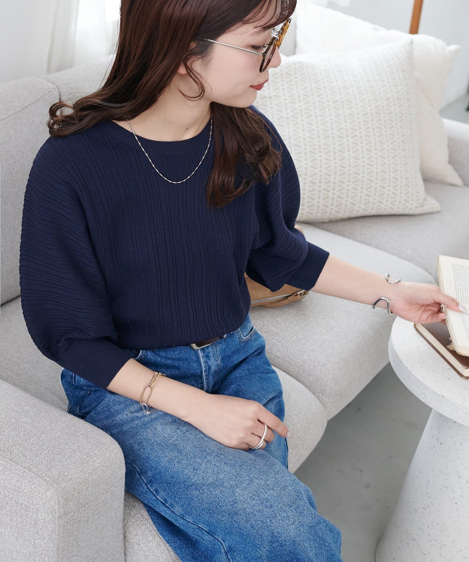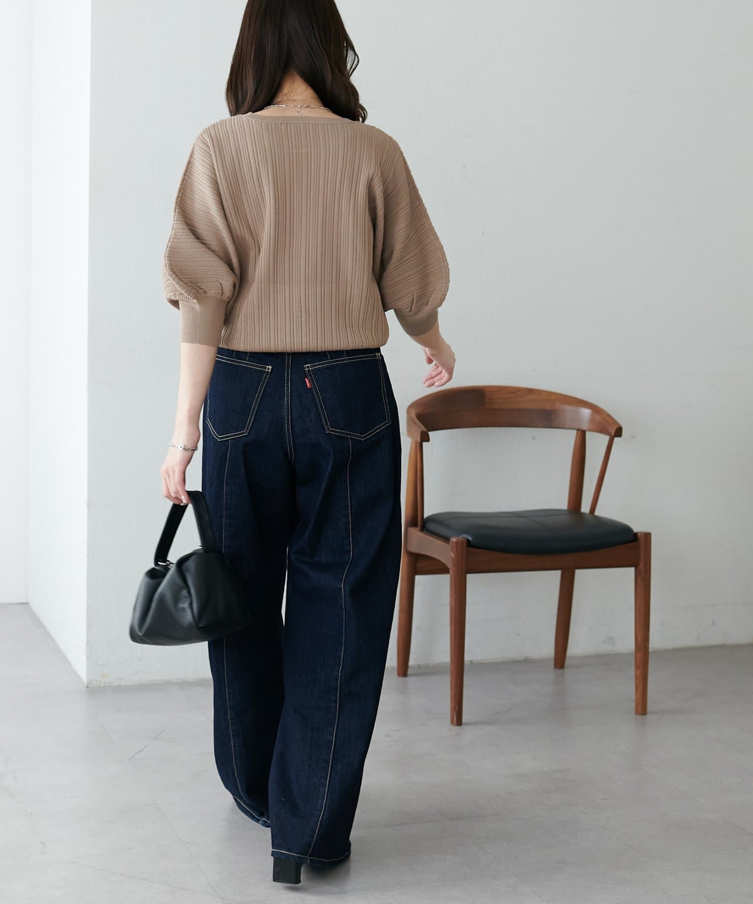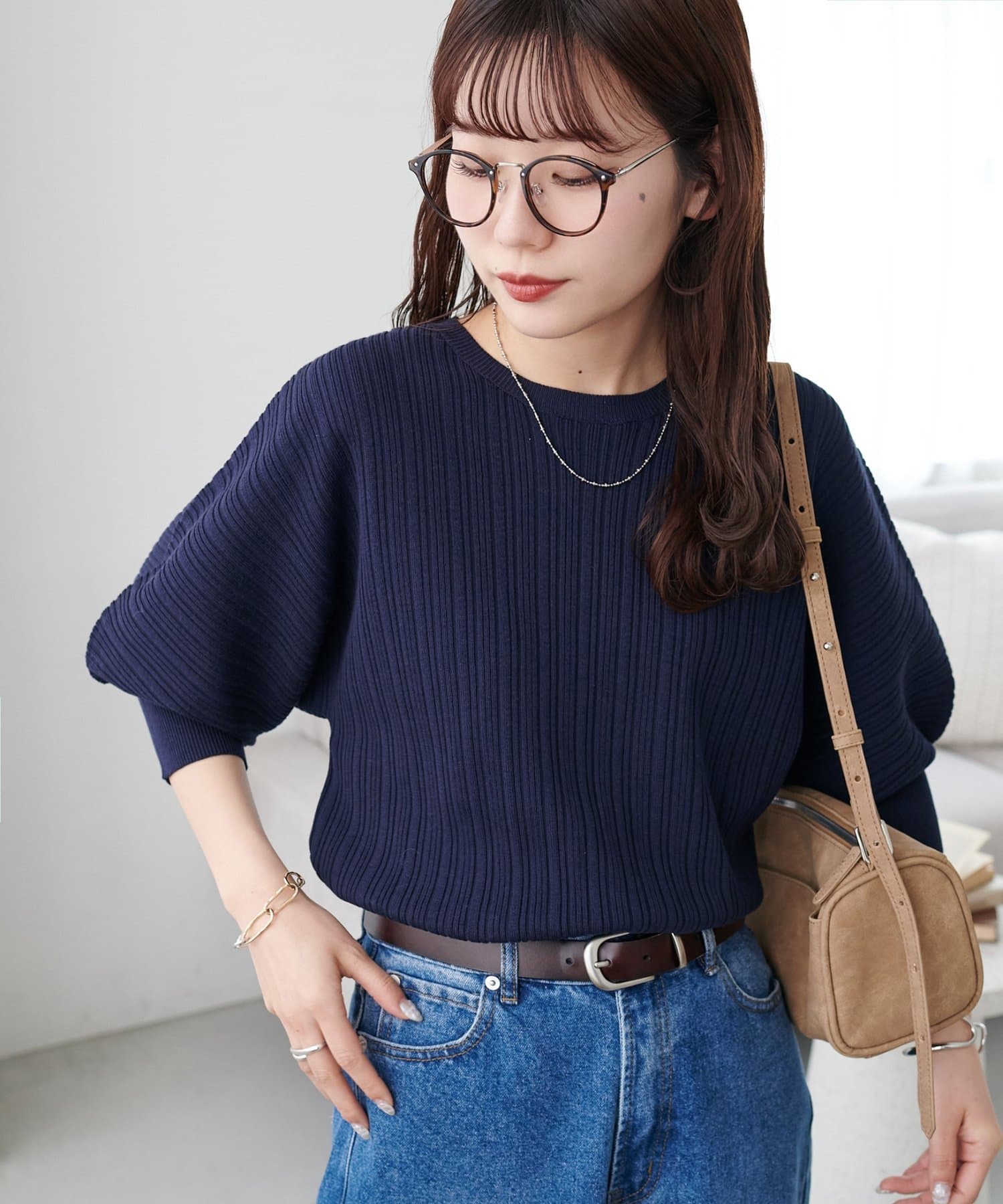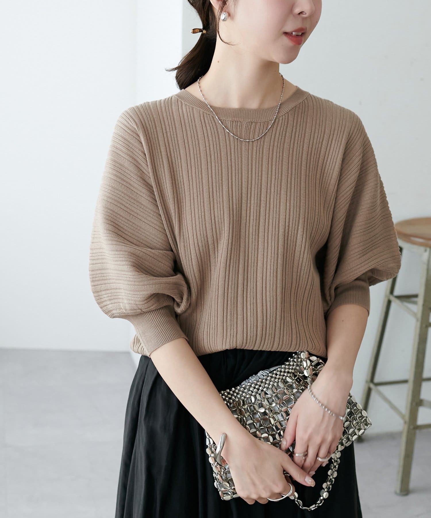 【WEB限定】ランダムリブボリュームスリーブ半袖ニット
