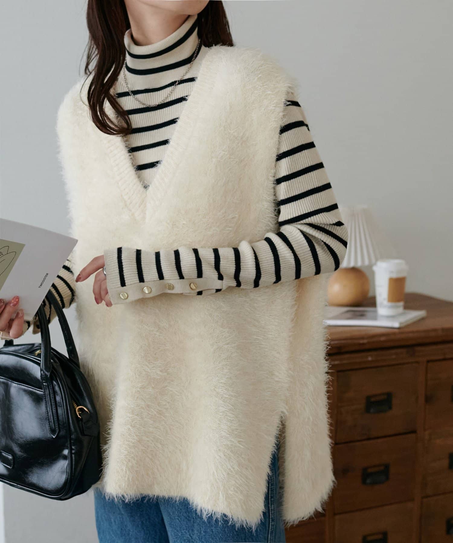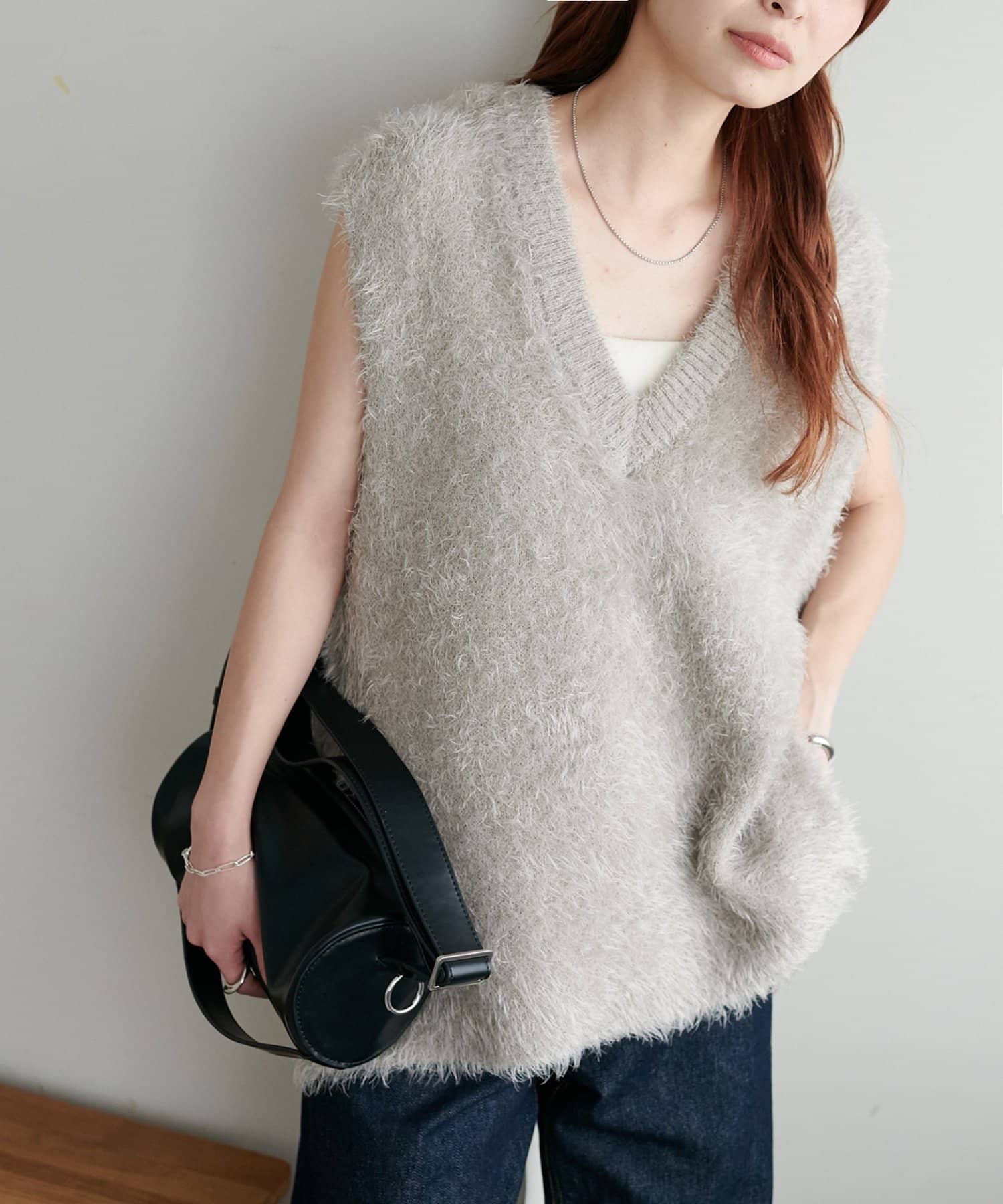 ・滑らかでふわふわとした優しい触り心地が特徴のライトフェザーヤーンベスト
