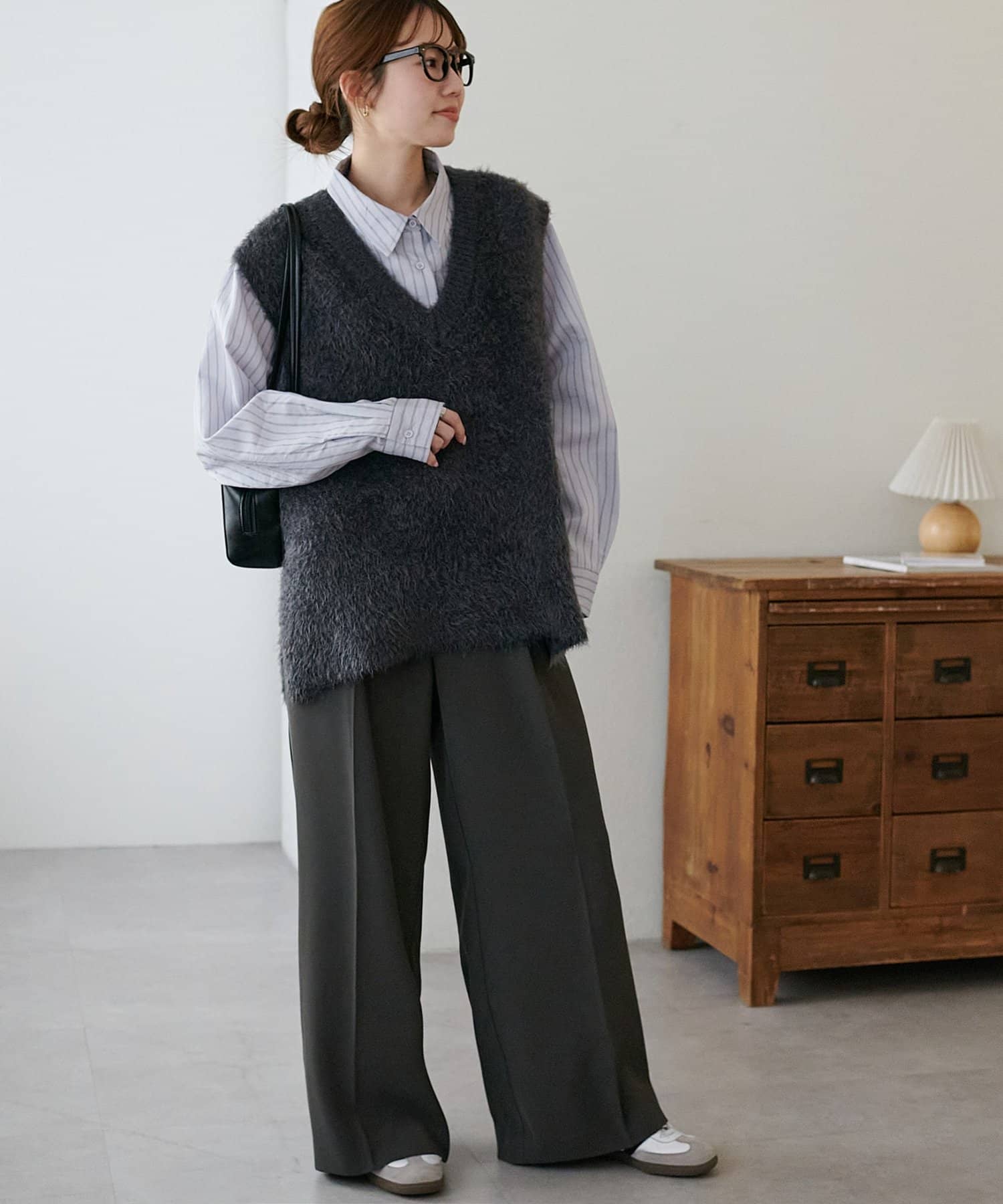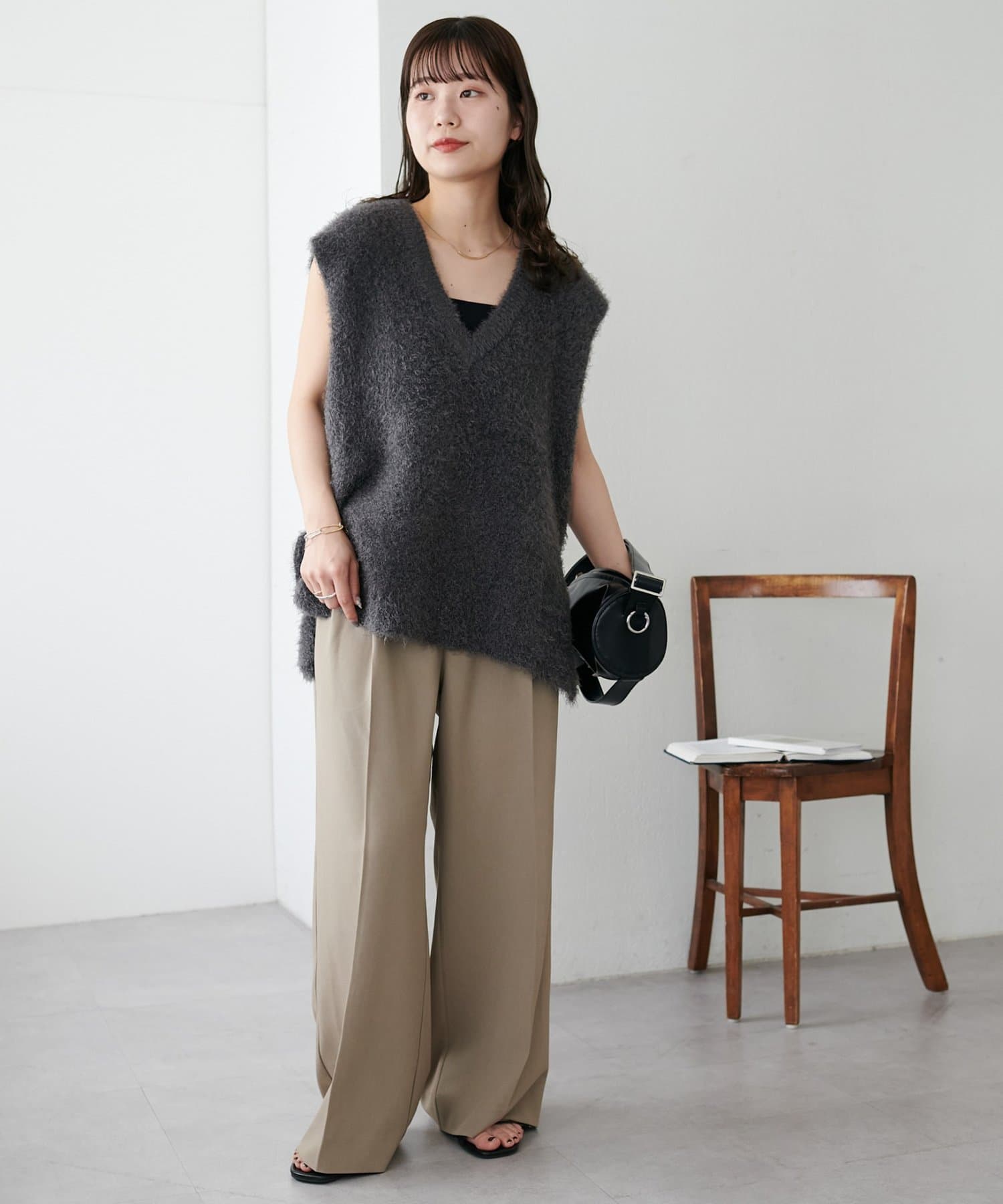 155㎝スタッフ: 着心地も触り心地も抜群なベスト。ゆったりとしたサイズ感がリラクシーな着心地に♡インナーにシャツやブラウス合わせても窮屈感なく着られます♪