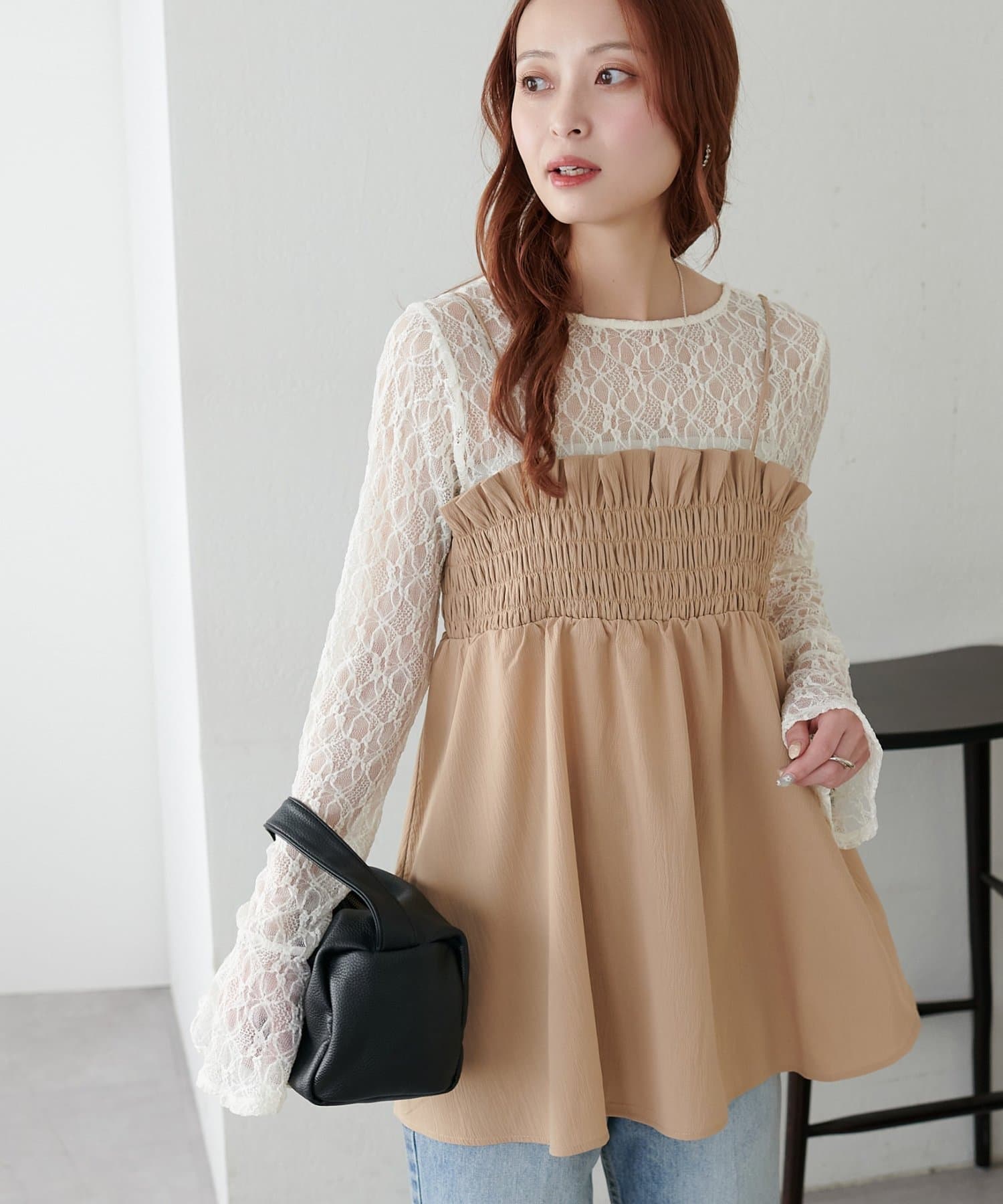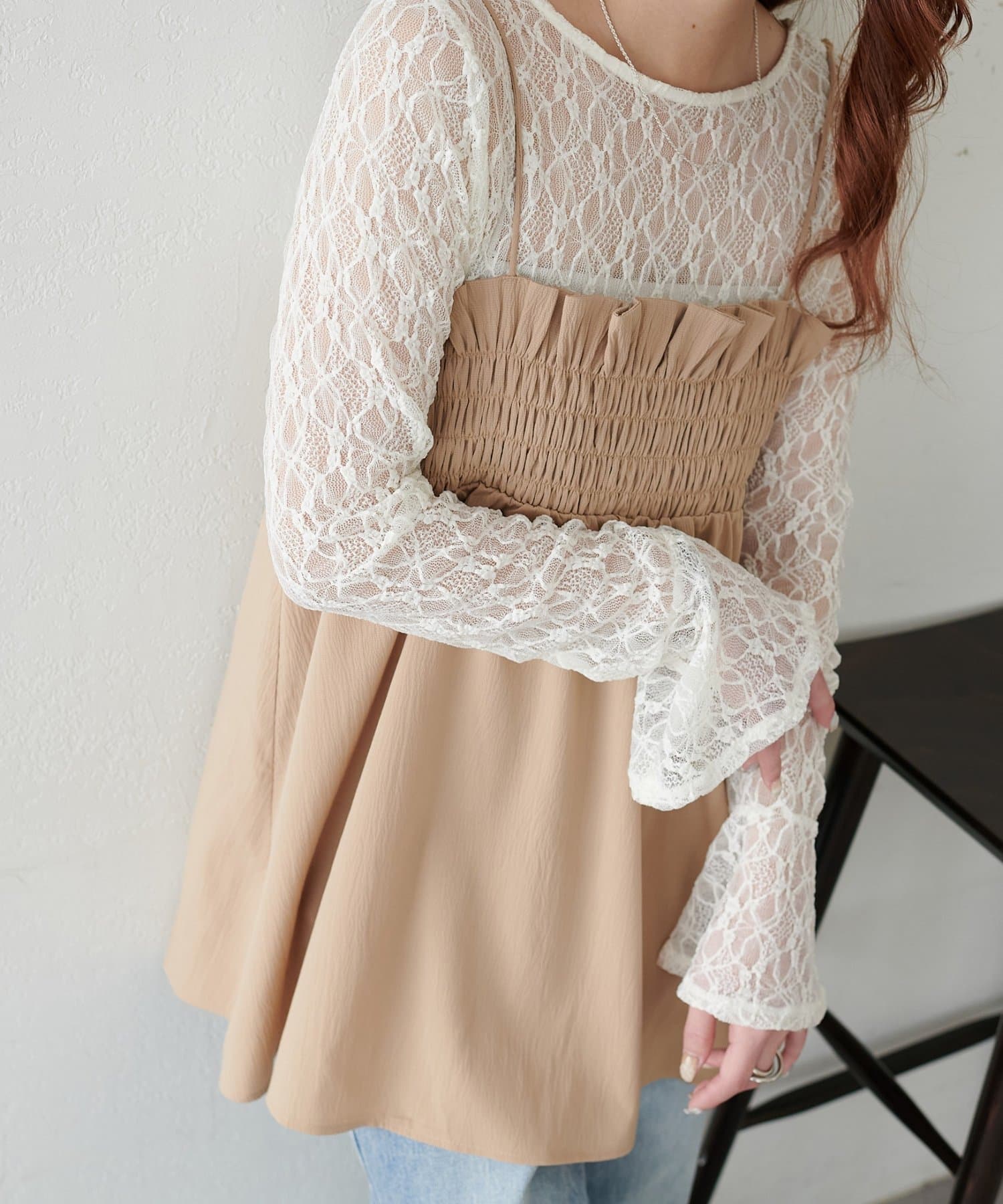 【WEB限定】前後2WAY袖フリルレースプルオーバー