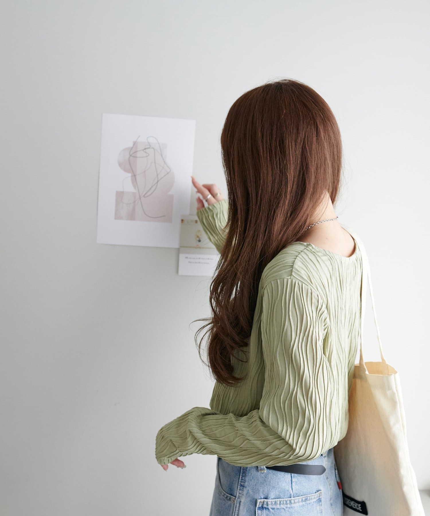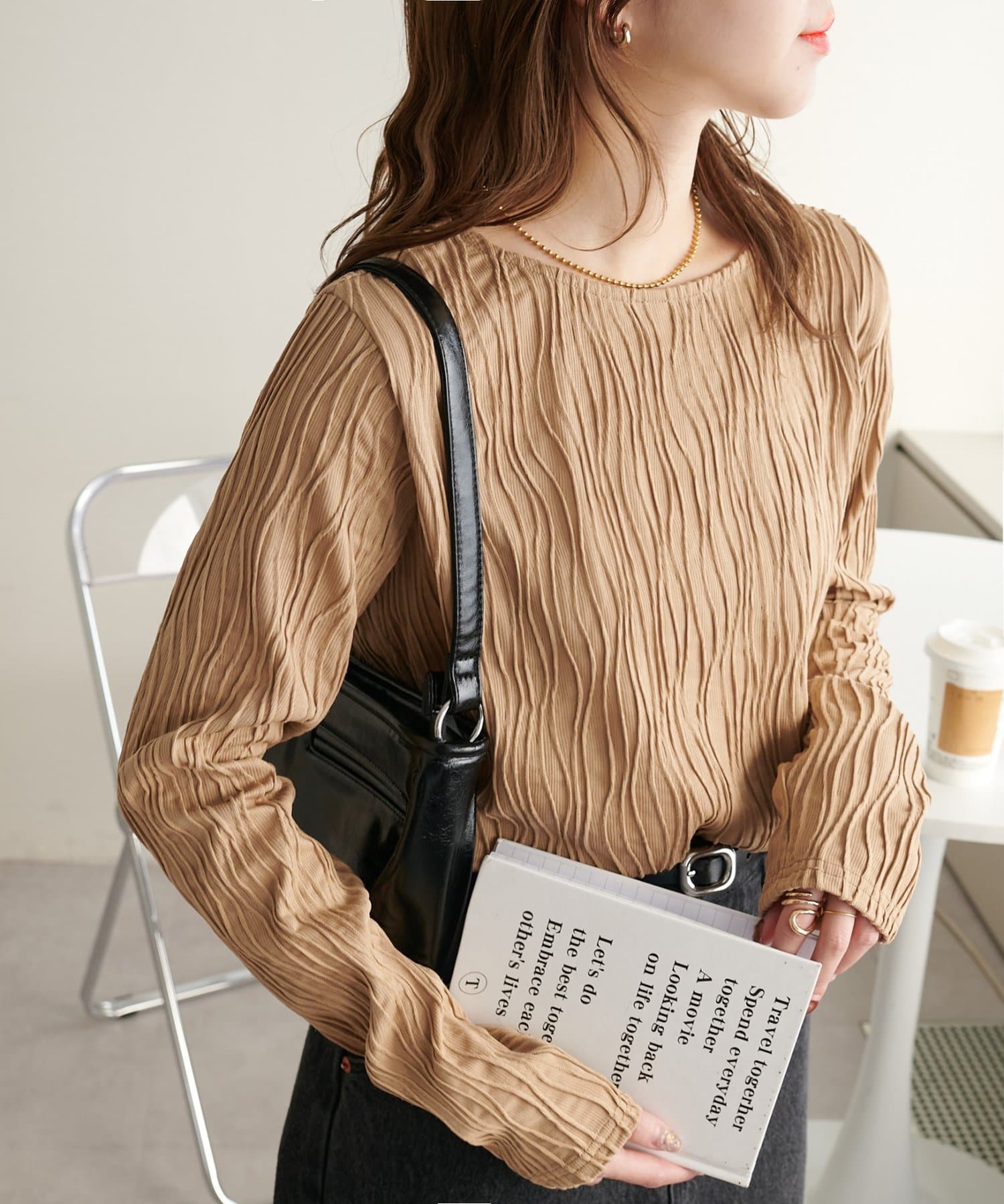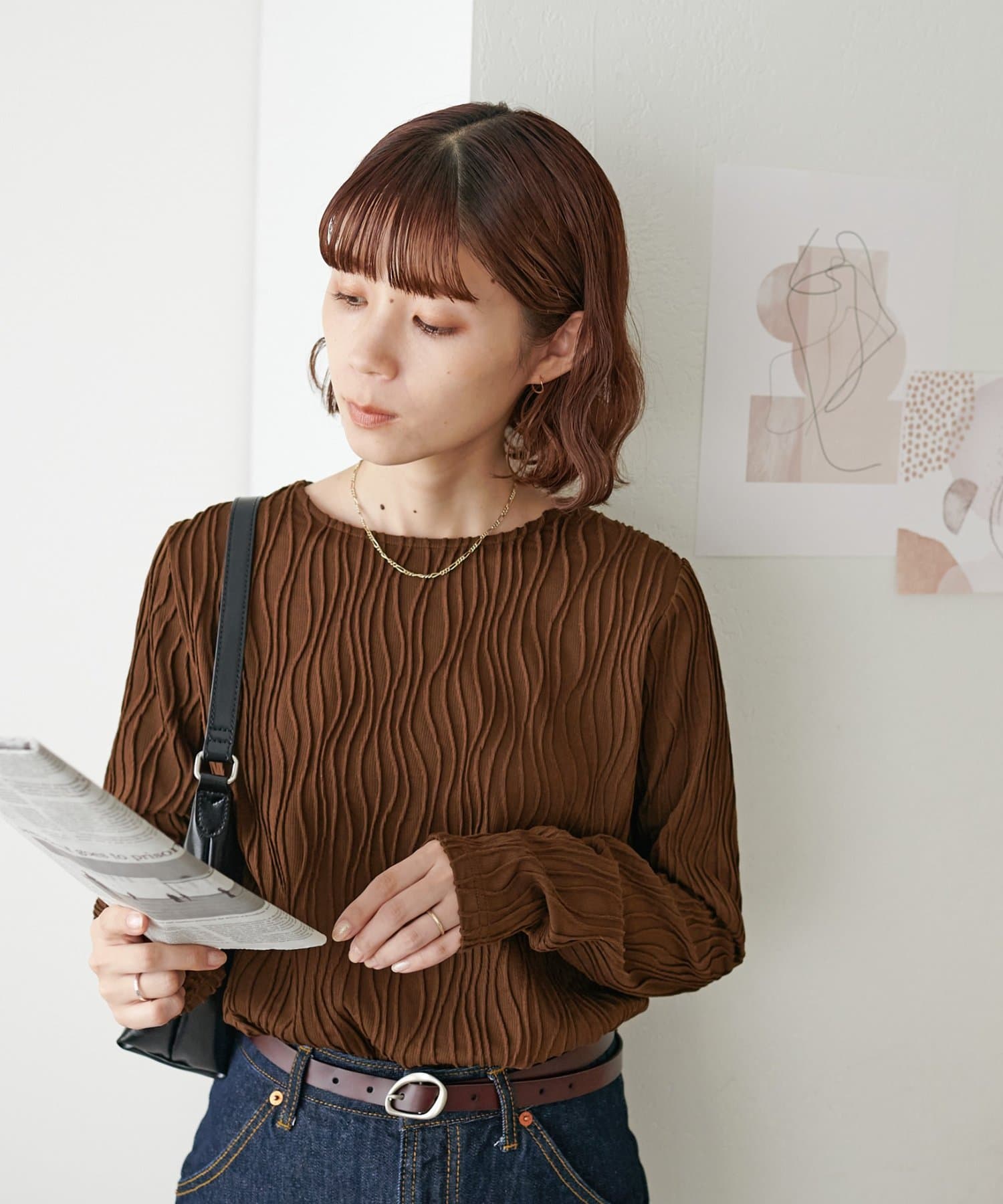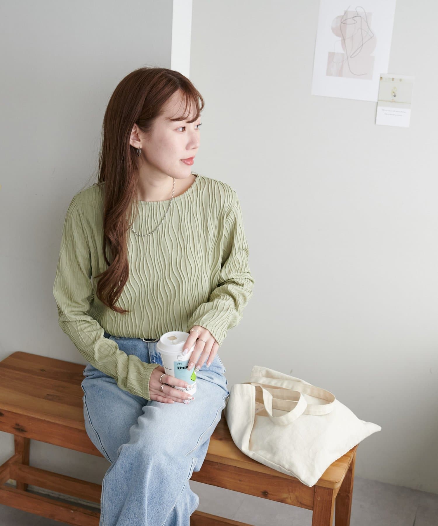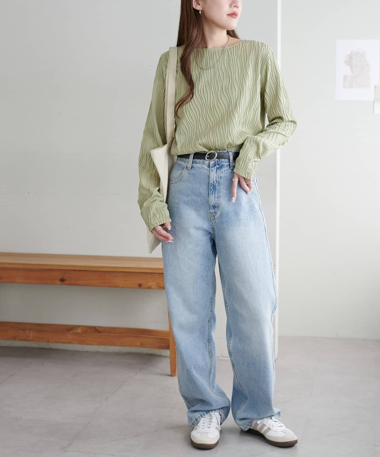 155cmスタッフ:ジャガードのデザインなので、コーデのポイントにおすすめのトップスです!