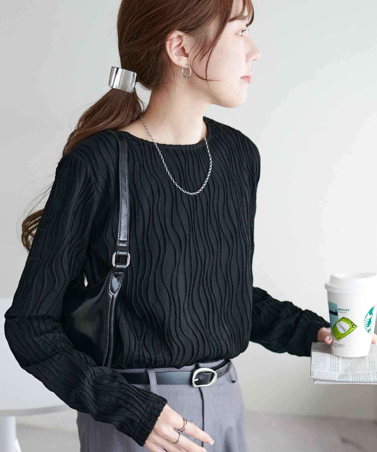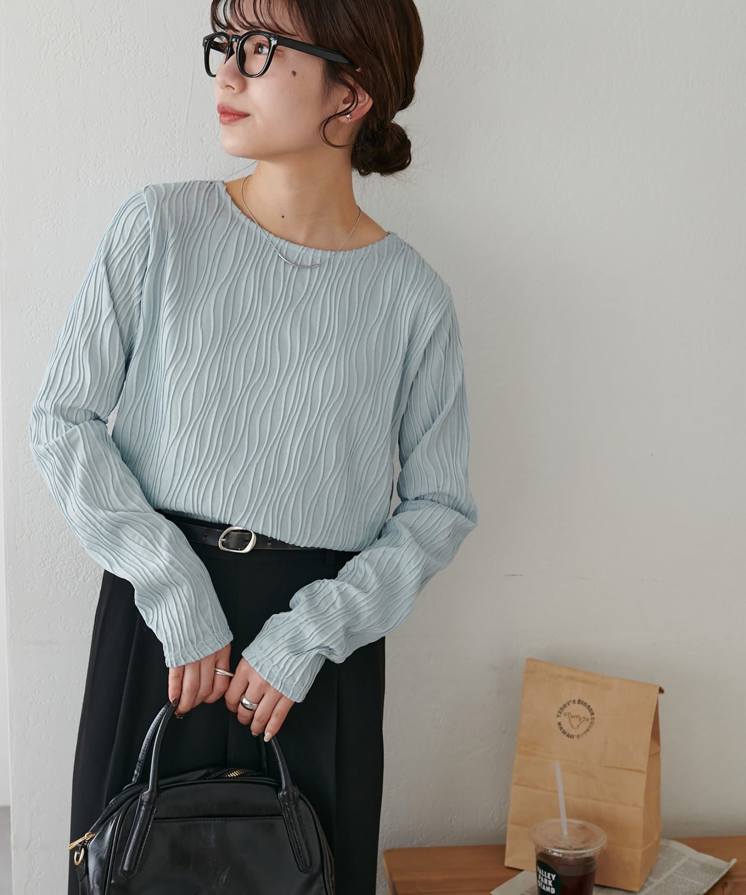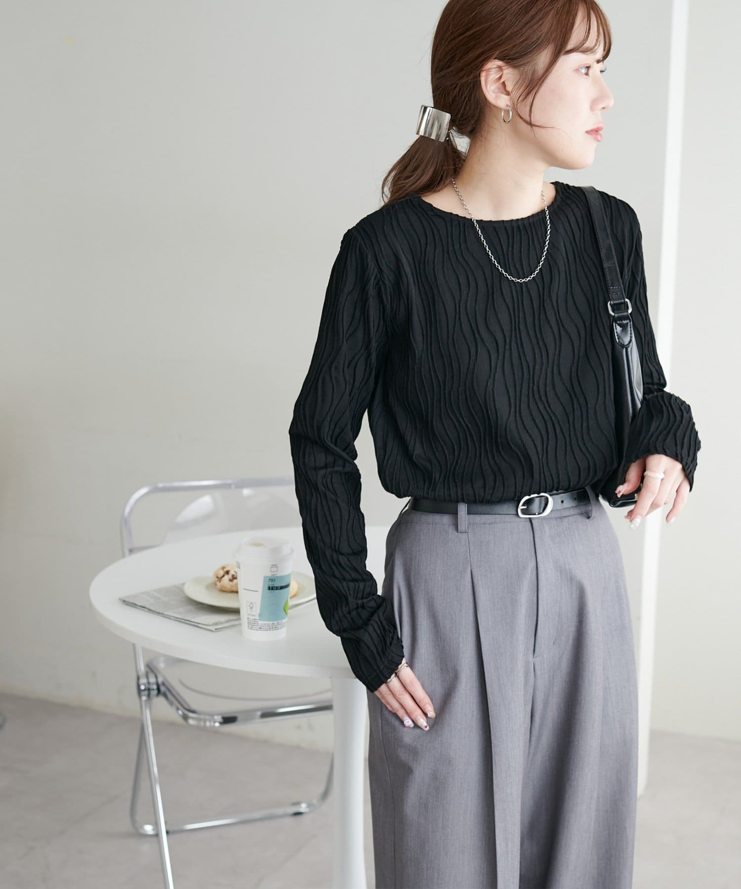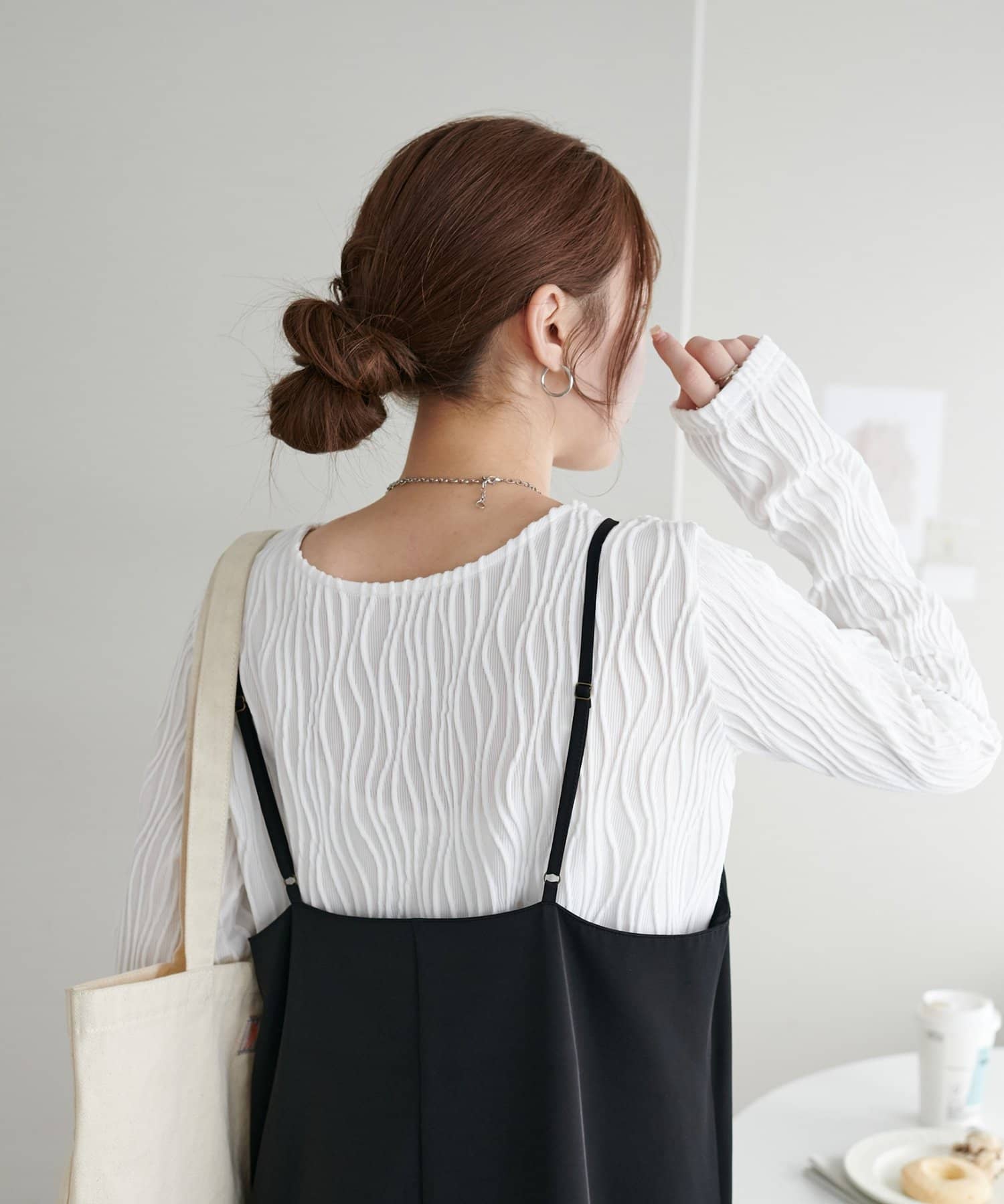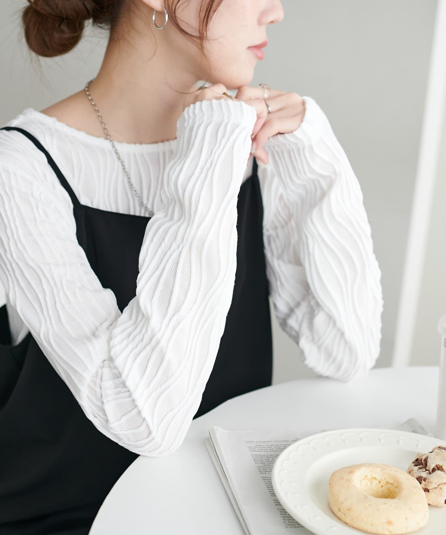 首元は詰まりすぎていないので、お顔回りはすっきりとした印象で着ることができます〇