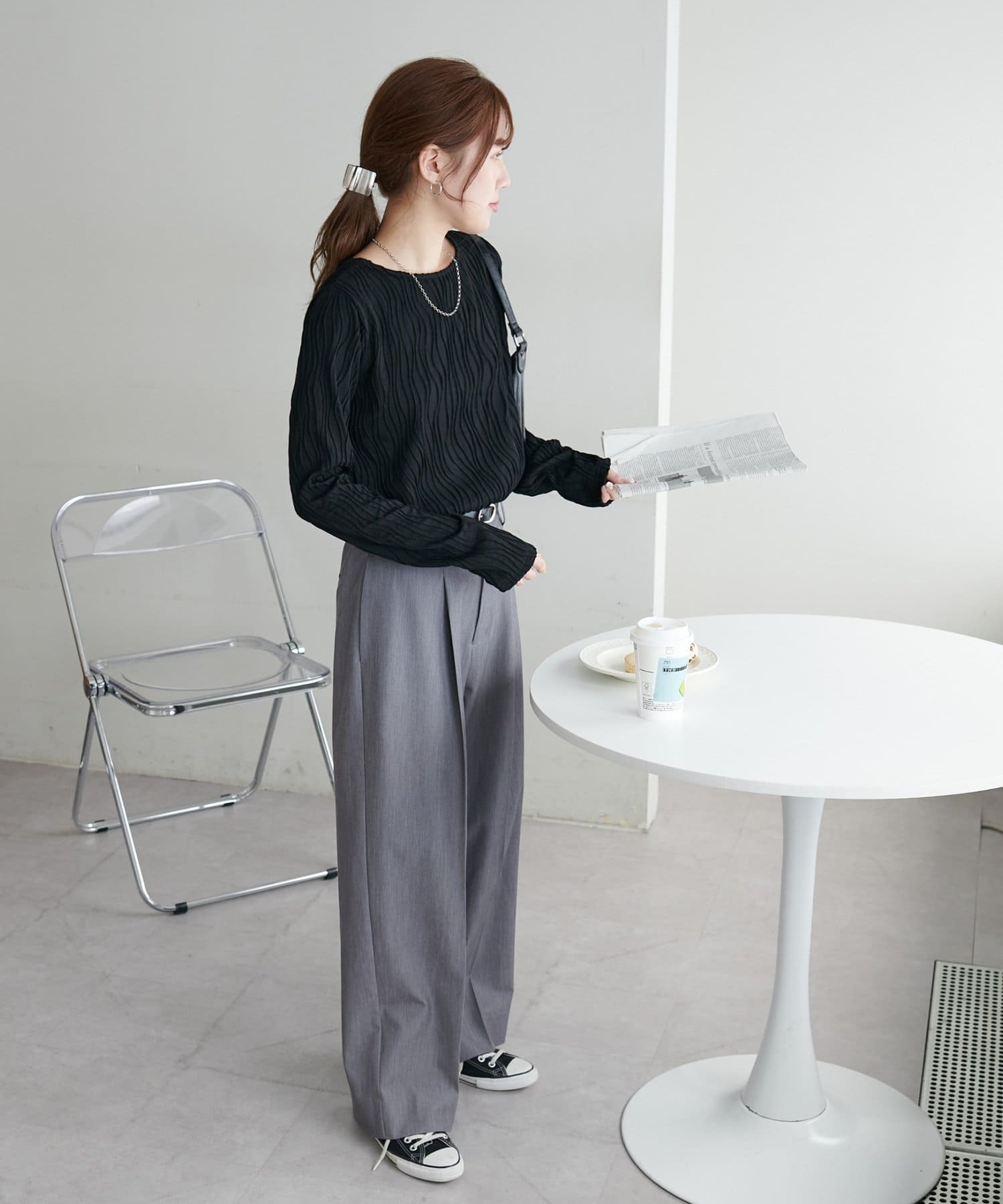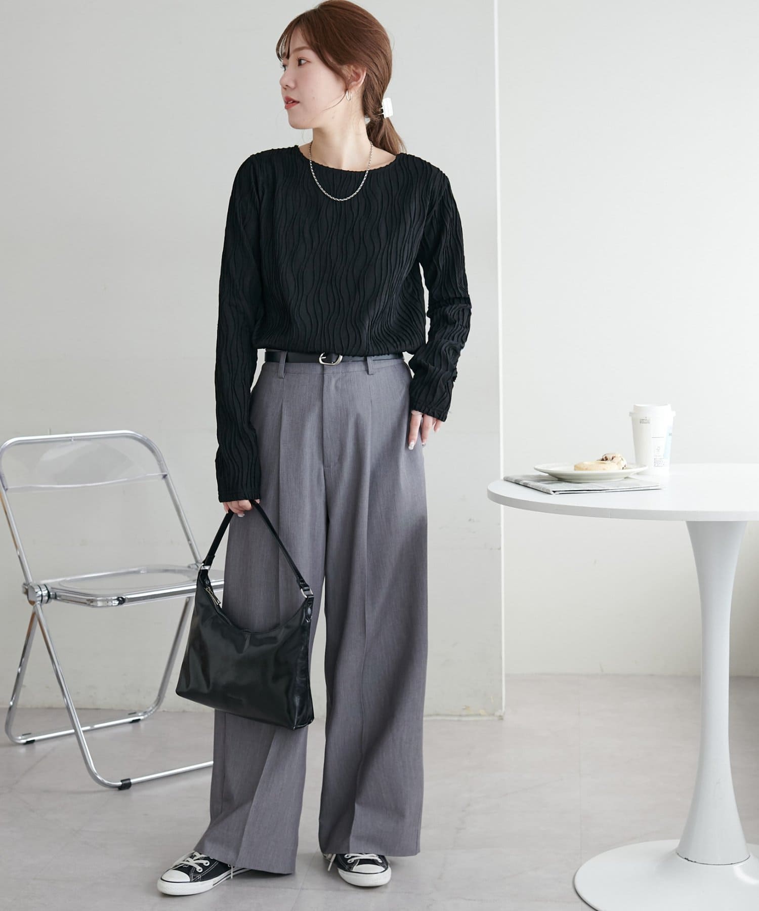 ・やや伸縮性のある素材感なので、ストレスフリーで着用していただけます。