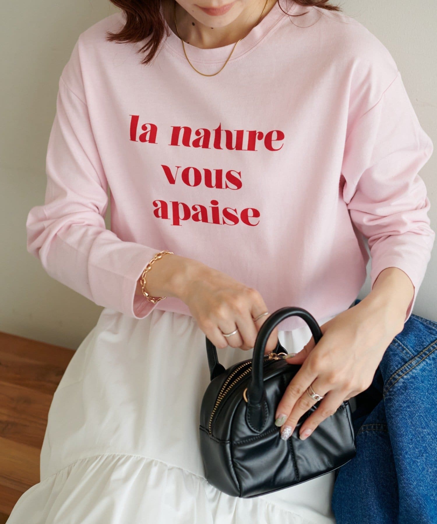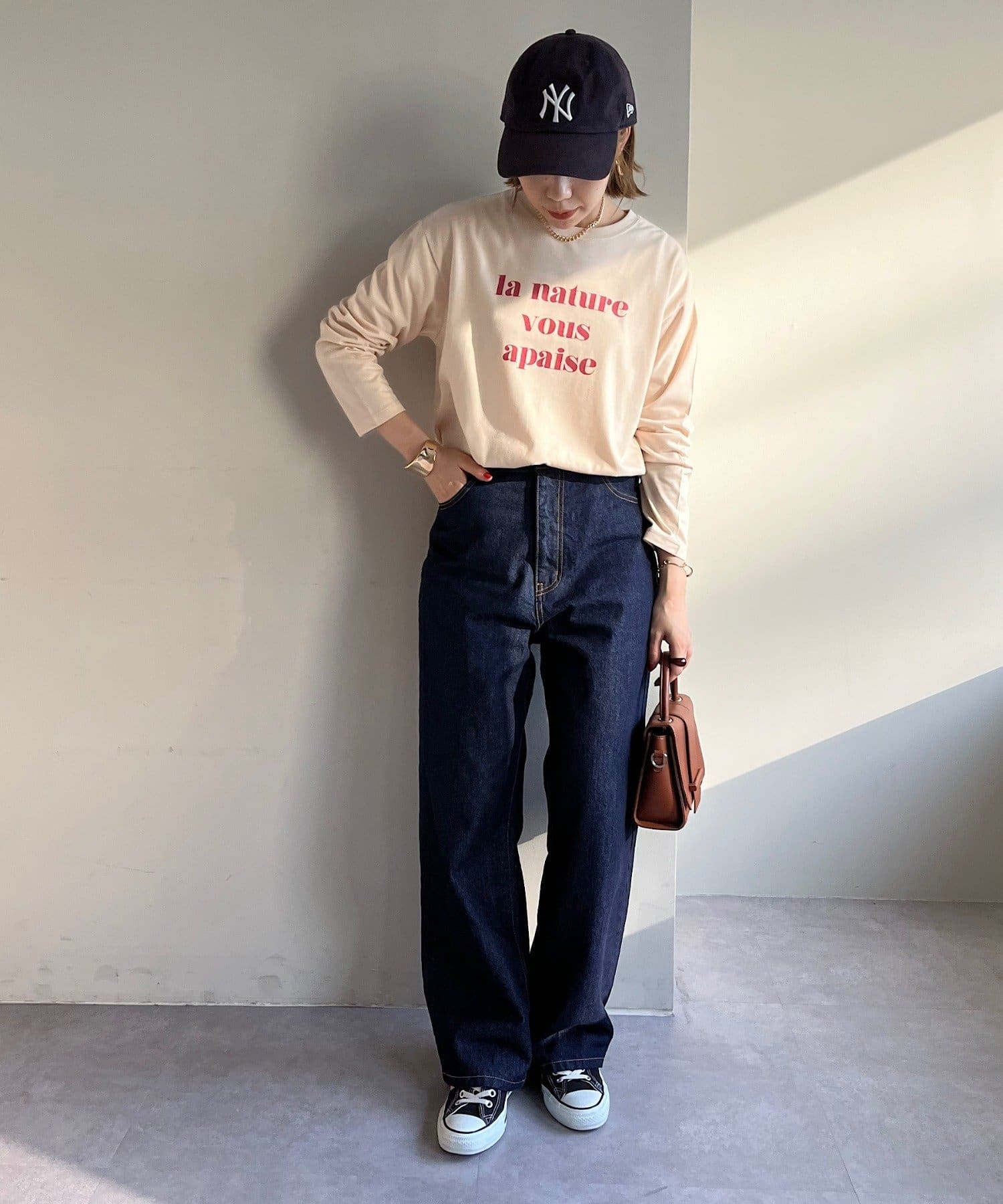 ・コーディネートのアクセントになる配色のカールロゴプリントが女性らしさをプラス