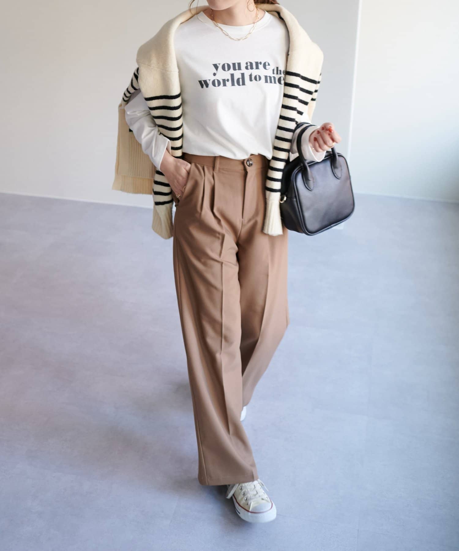 ・どんなコーディネートにも合わせやすい、ロゴプリントデザイン