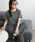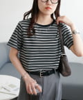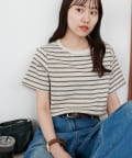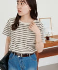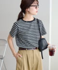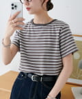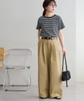 158cmスタッフ:身体に程よくフィットするサイズ感で、すっきりと着こなせました。シンプルなボトムと合わせるだけでこなれ見えするボーダーTシャツは、この夏も大活躍の予感♪ワイドパンツ合わせにすれば、大人カジュアルスタイルの完成。