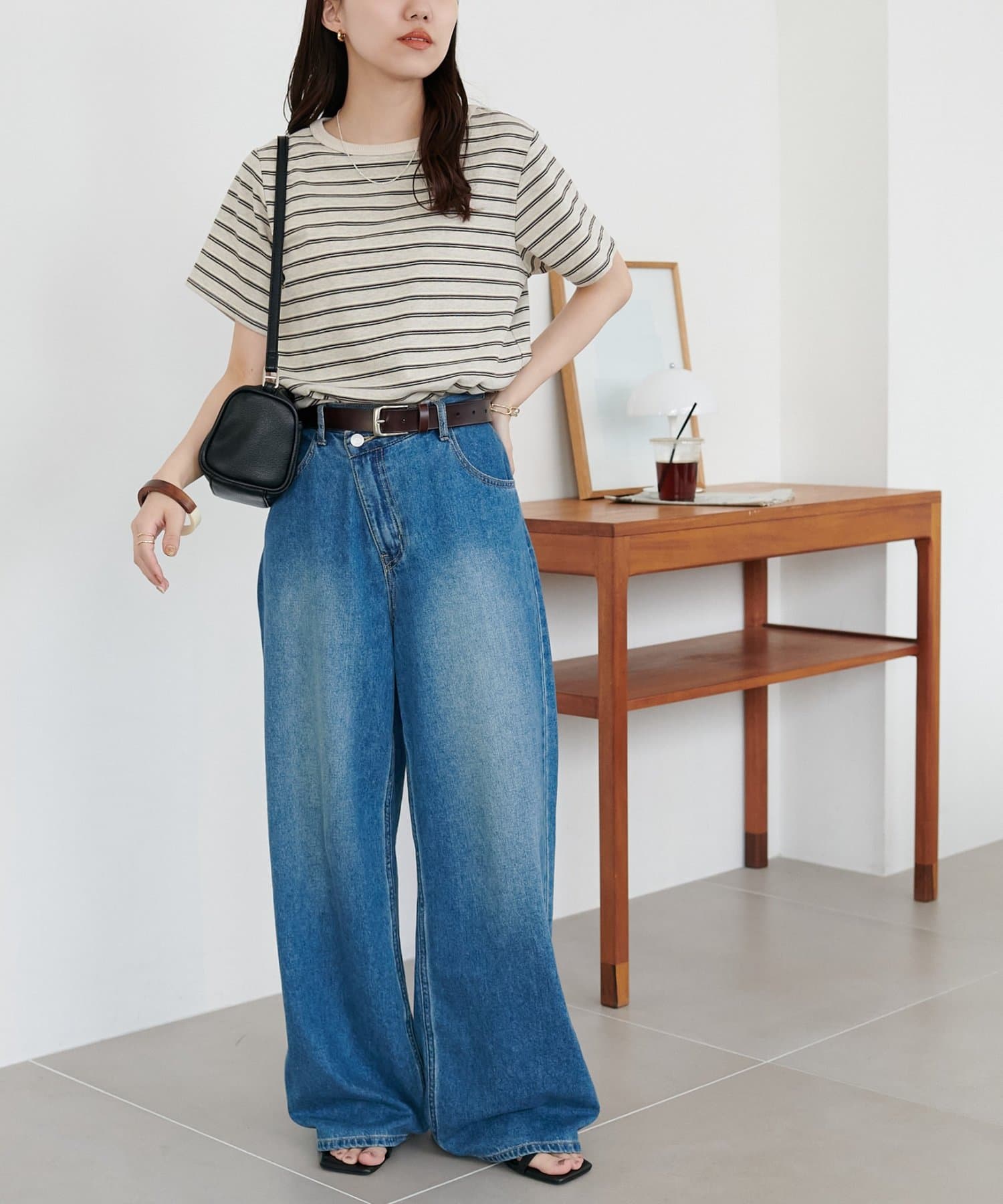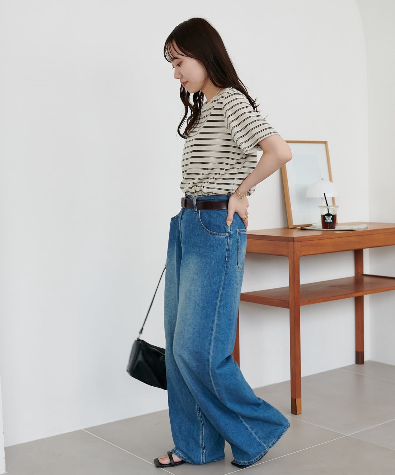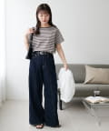 ▶ハイウエストステッチ使いデニムワイドパンツ